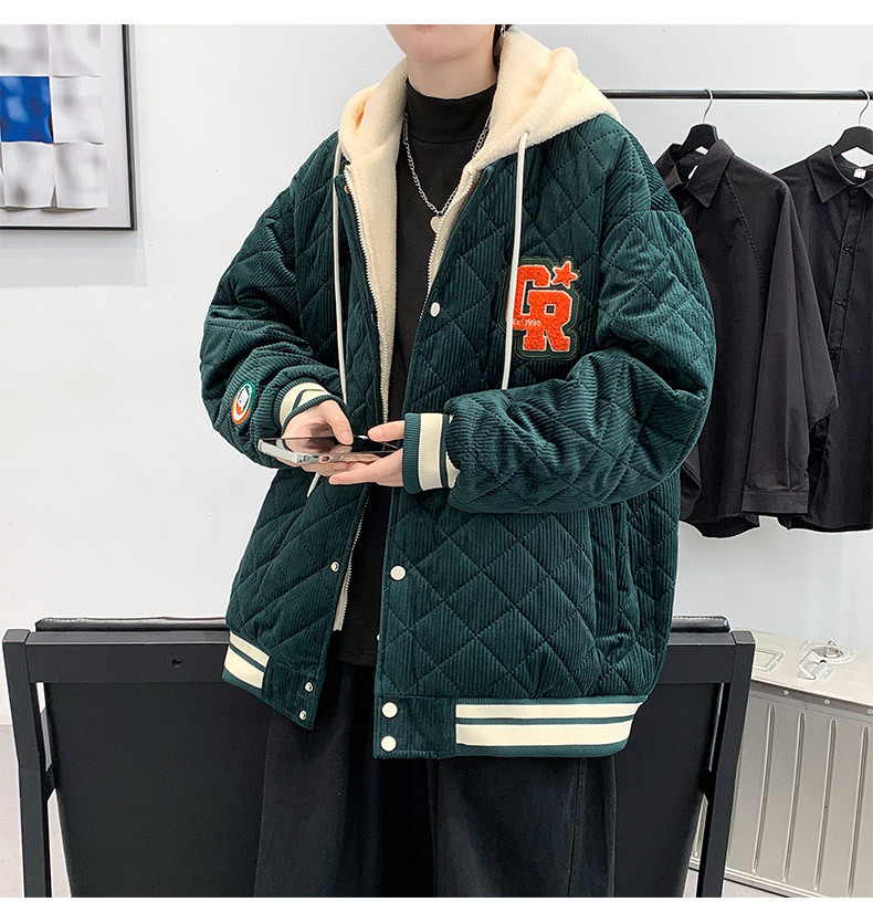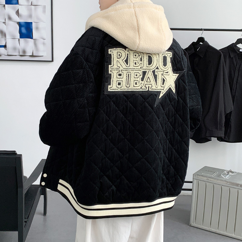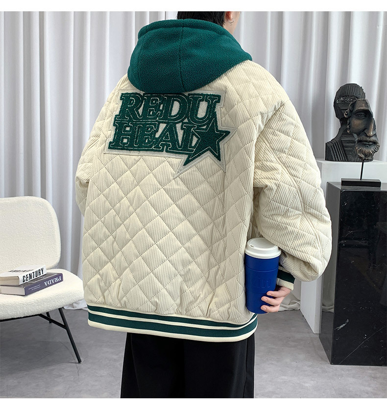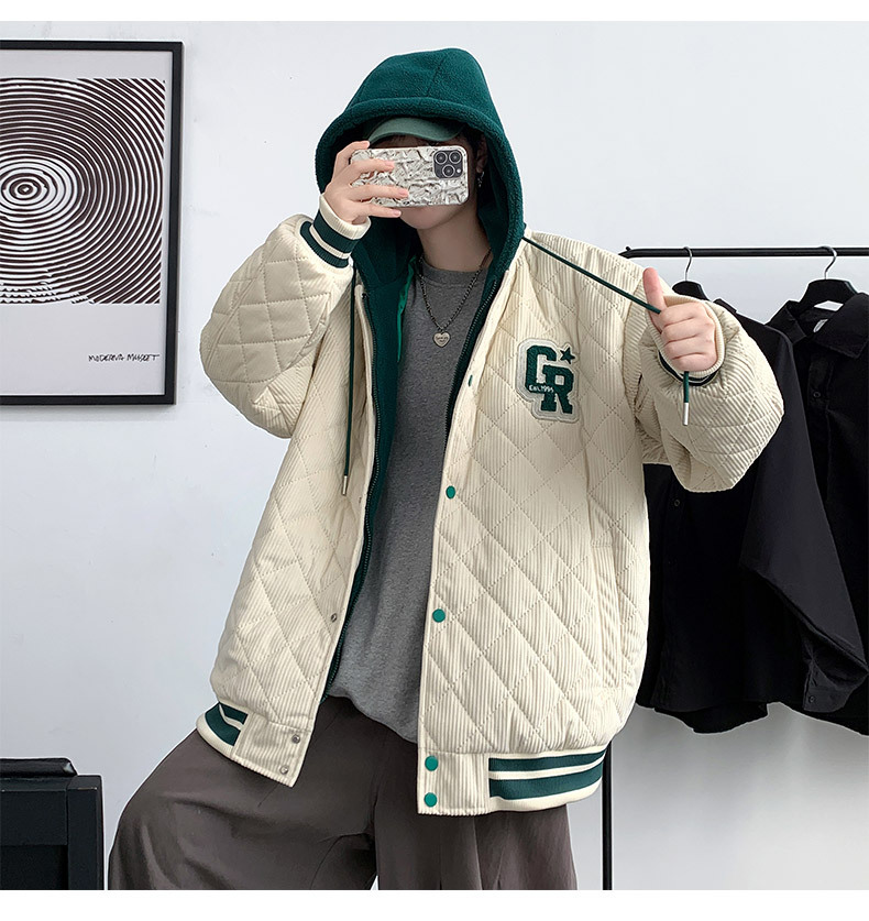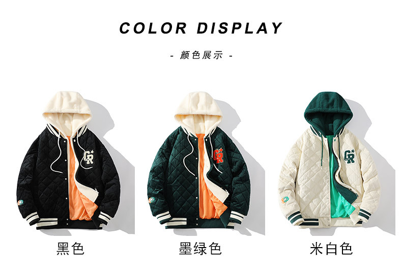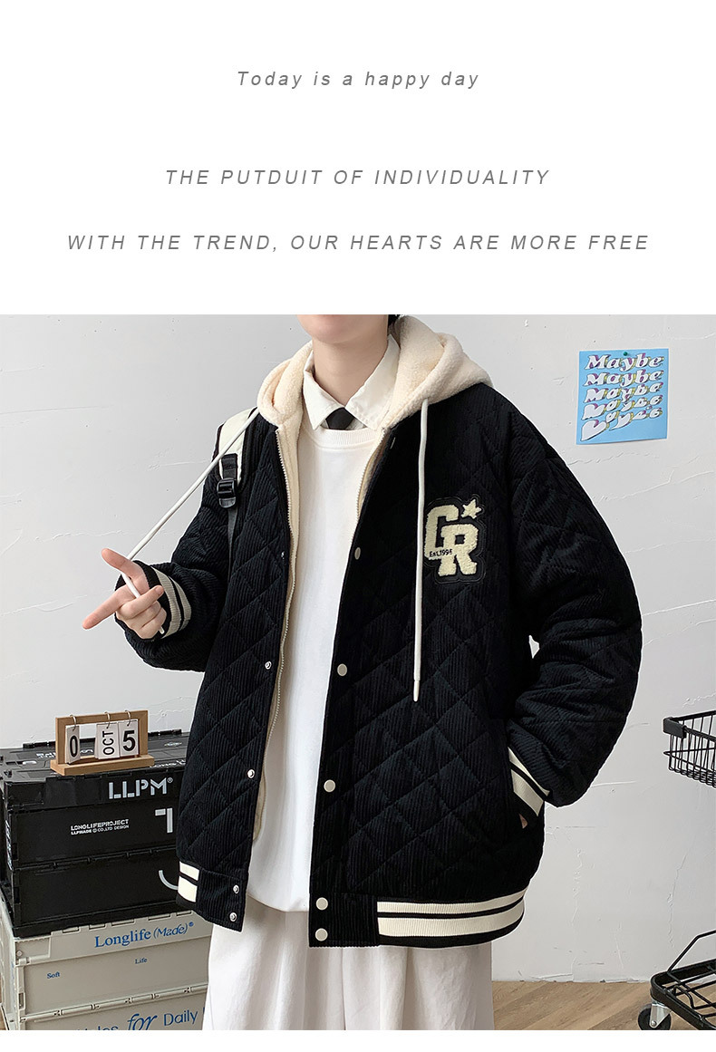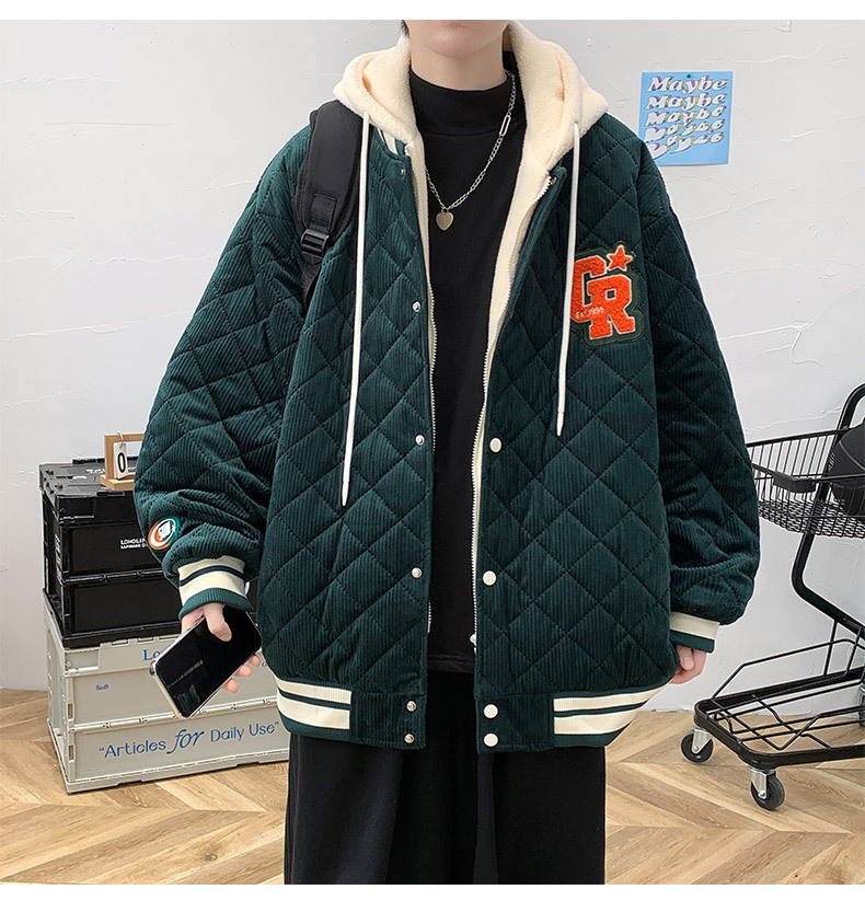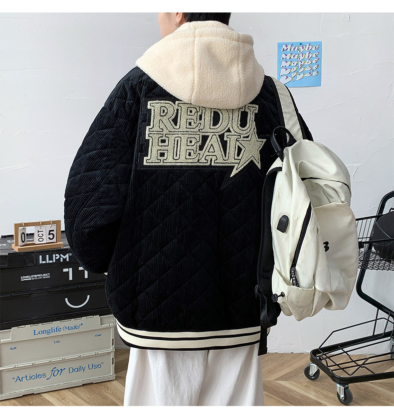 2023新款冬季假两件连帽棉服夹克外套男加厚保暖宽松学生情侣棉衣