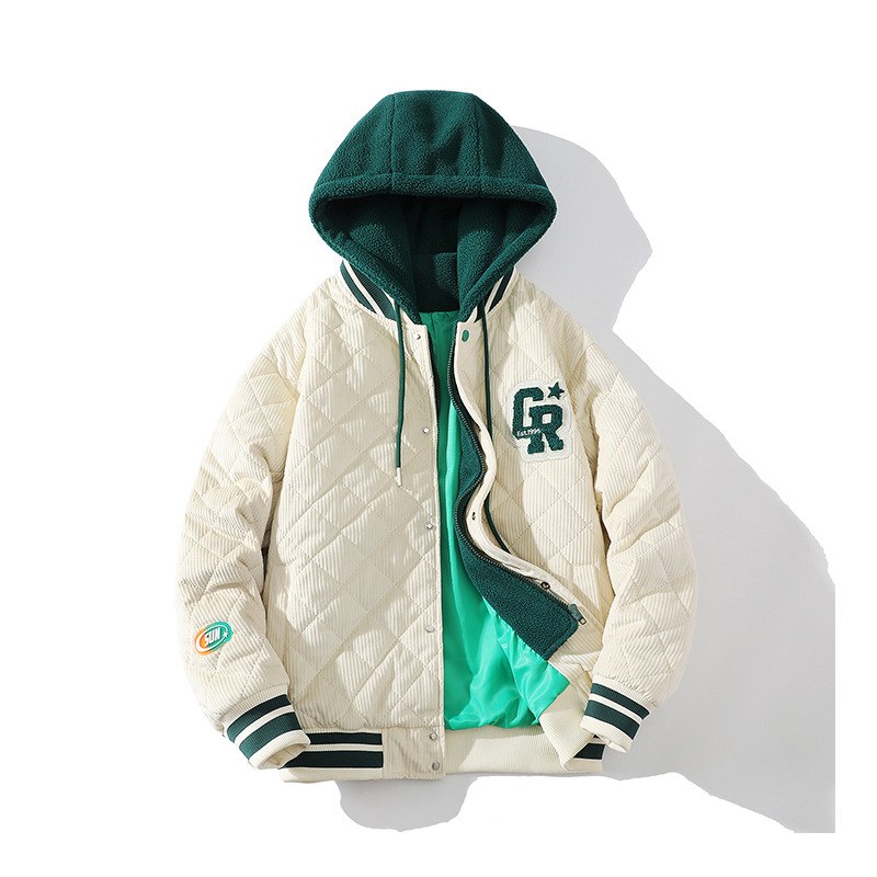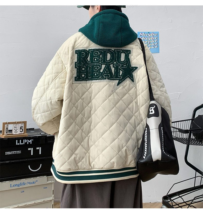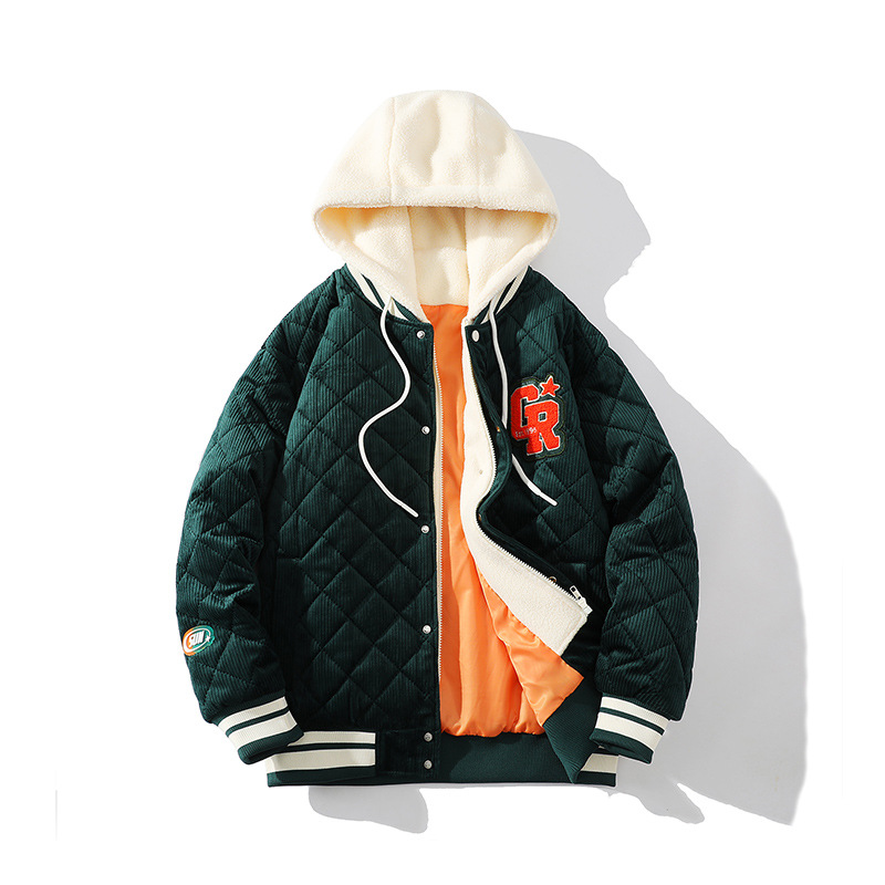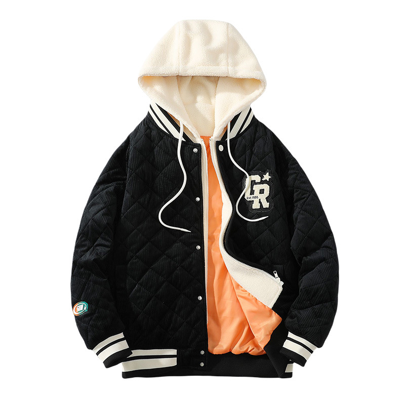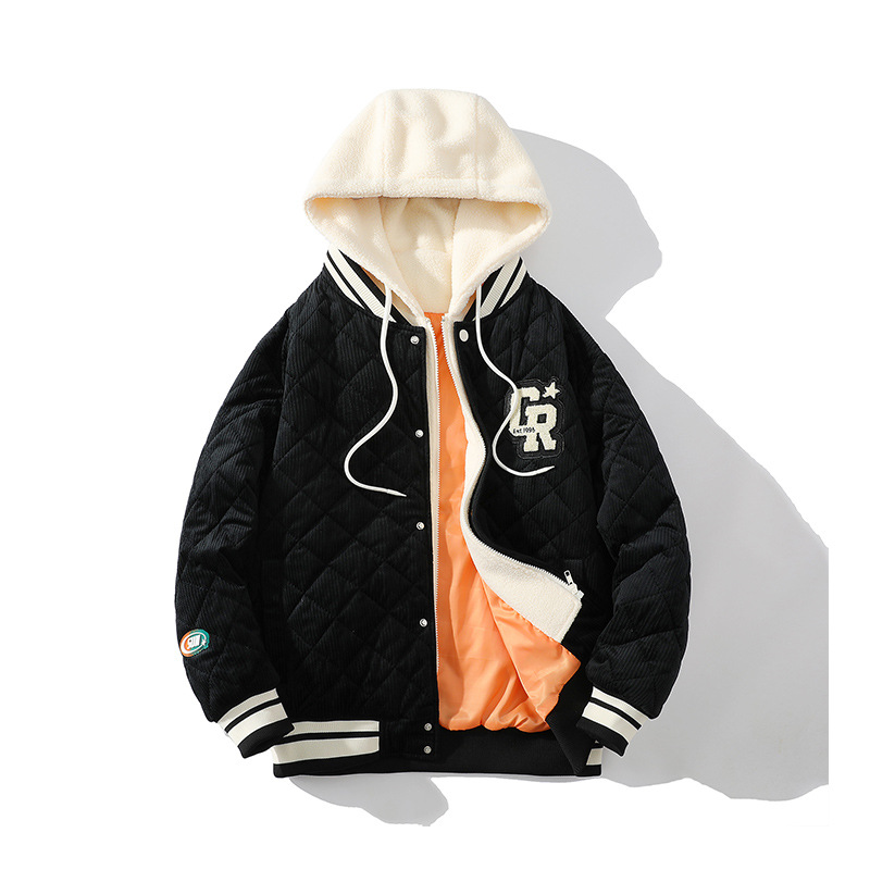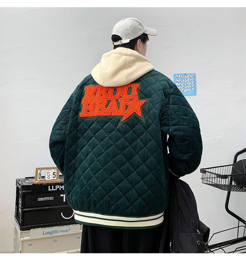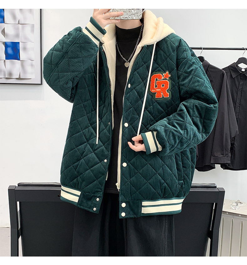 2023新款冬季假两件连帽棉服夹克外套男加厚保暖宽松学生情侣棉衣