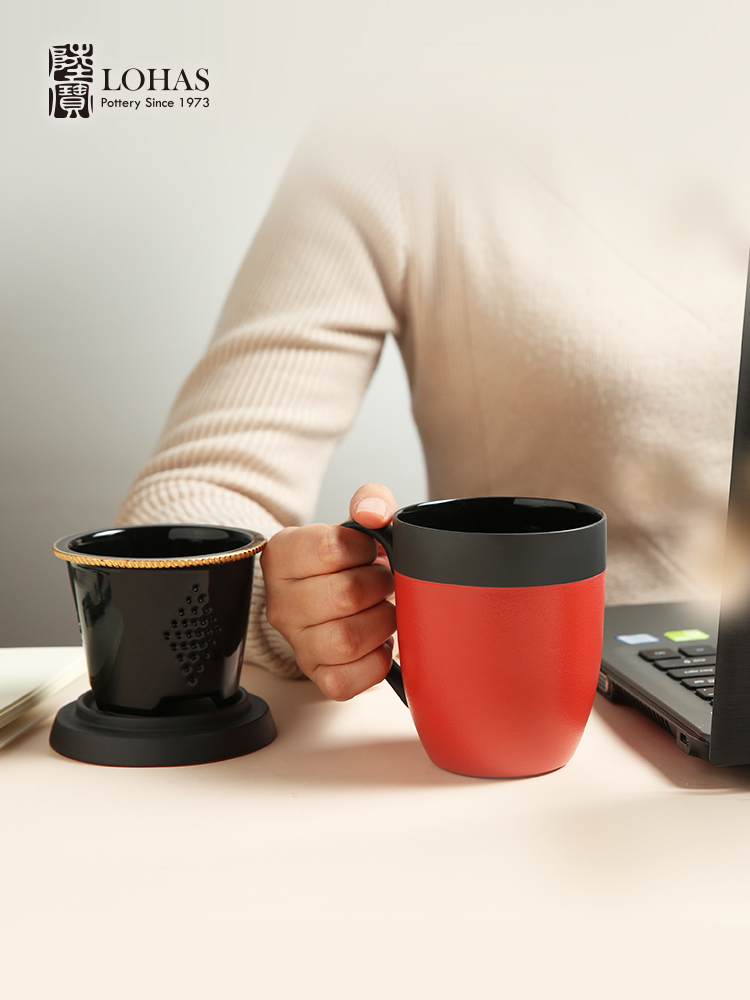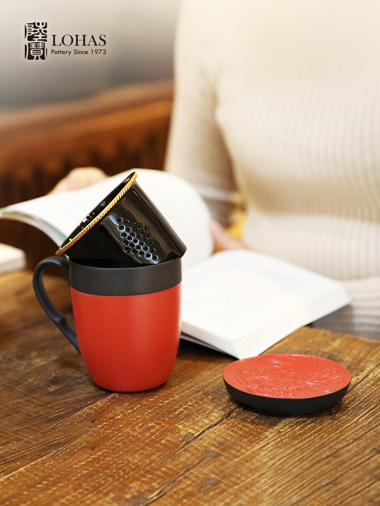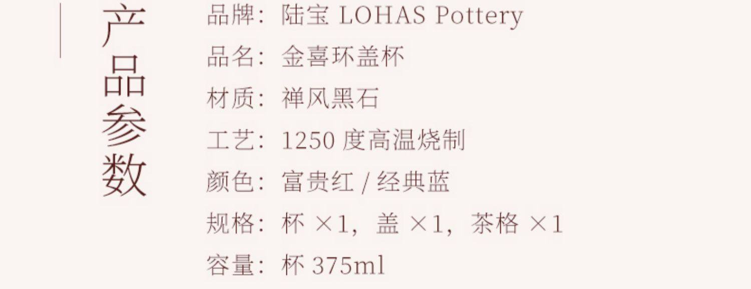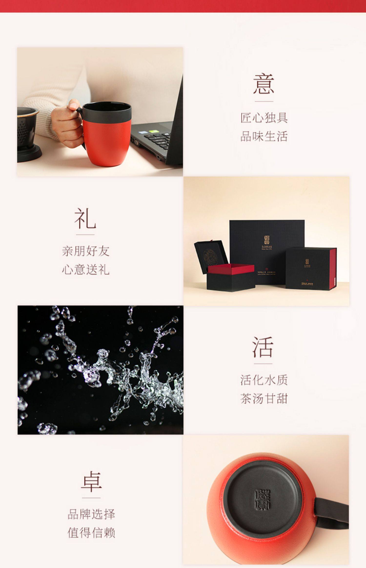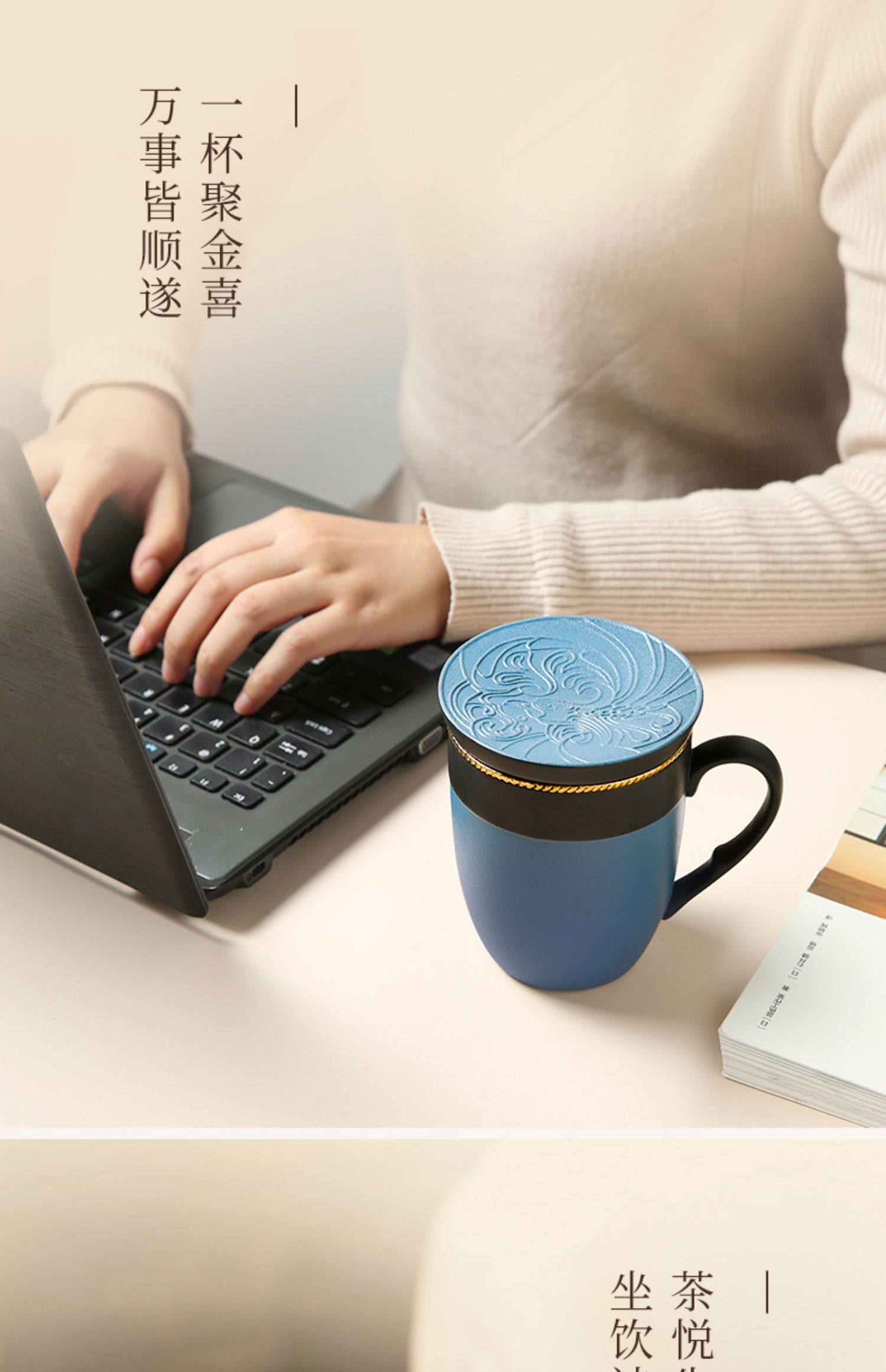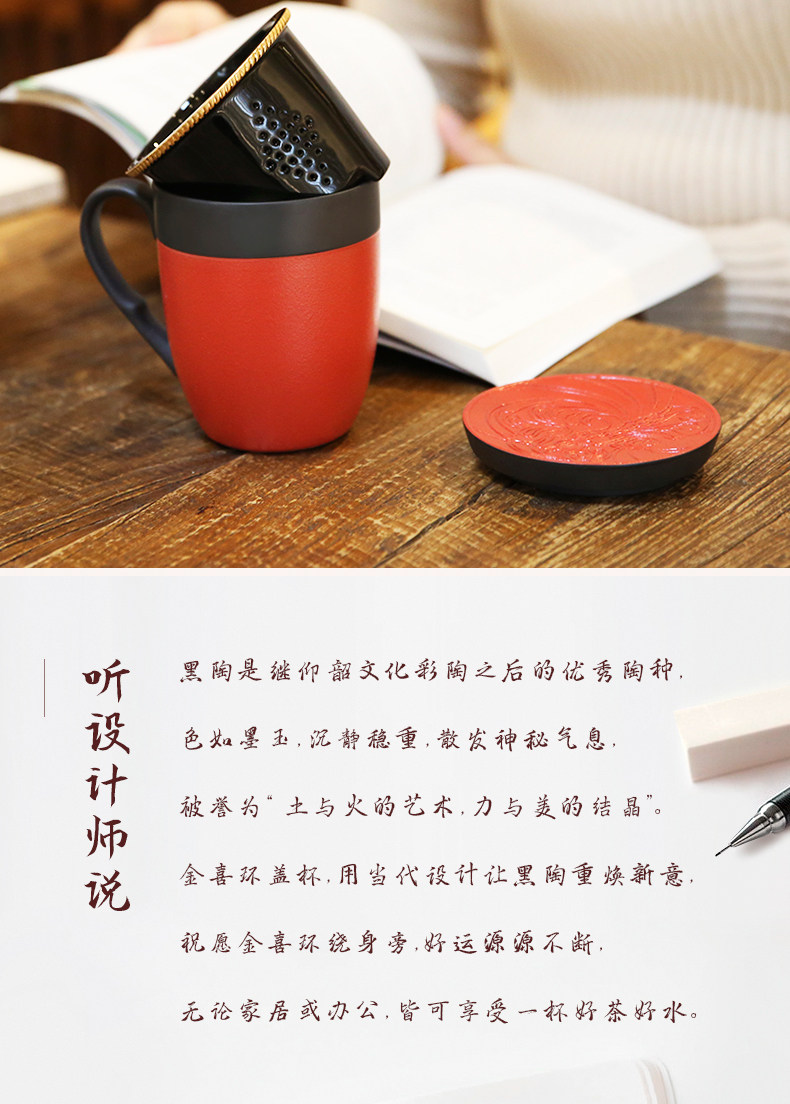 陆宝陶瓷泡茶饮水杯带茶滤茶水分离喝茶杯金喜环盖杯茶具礼盒装