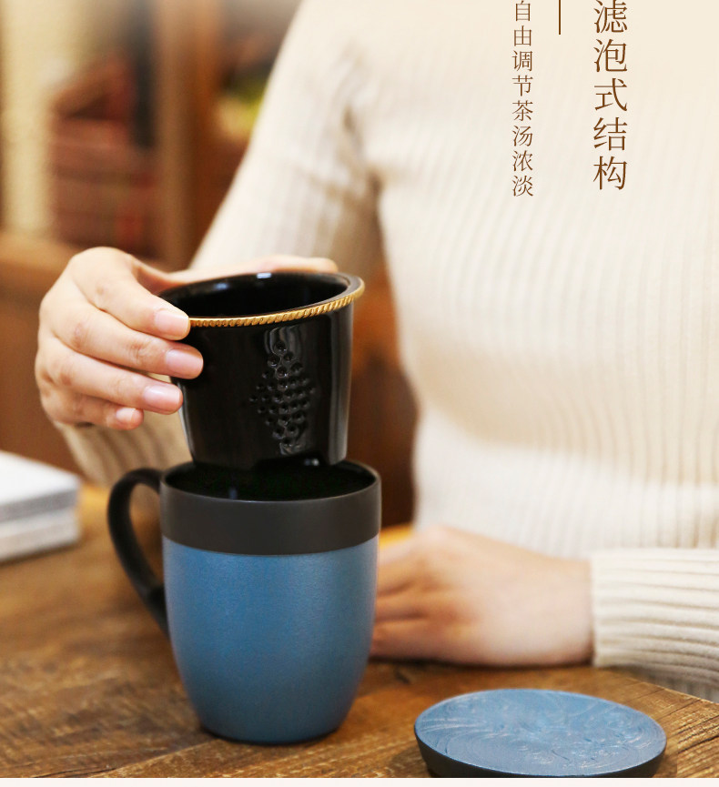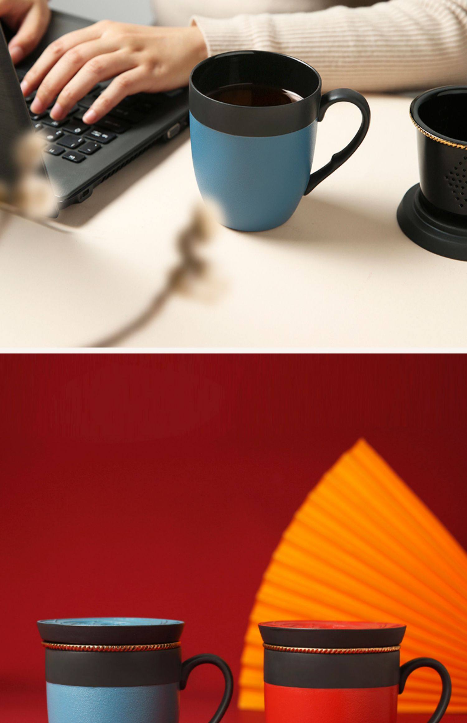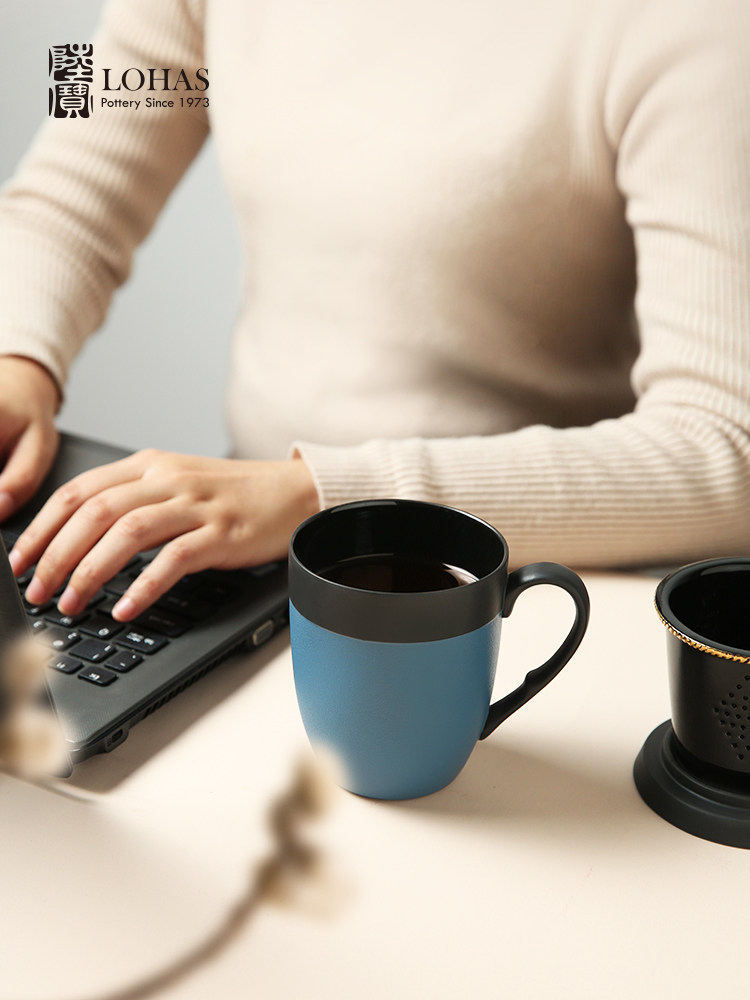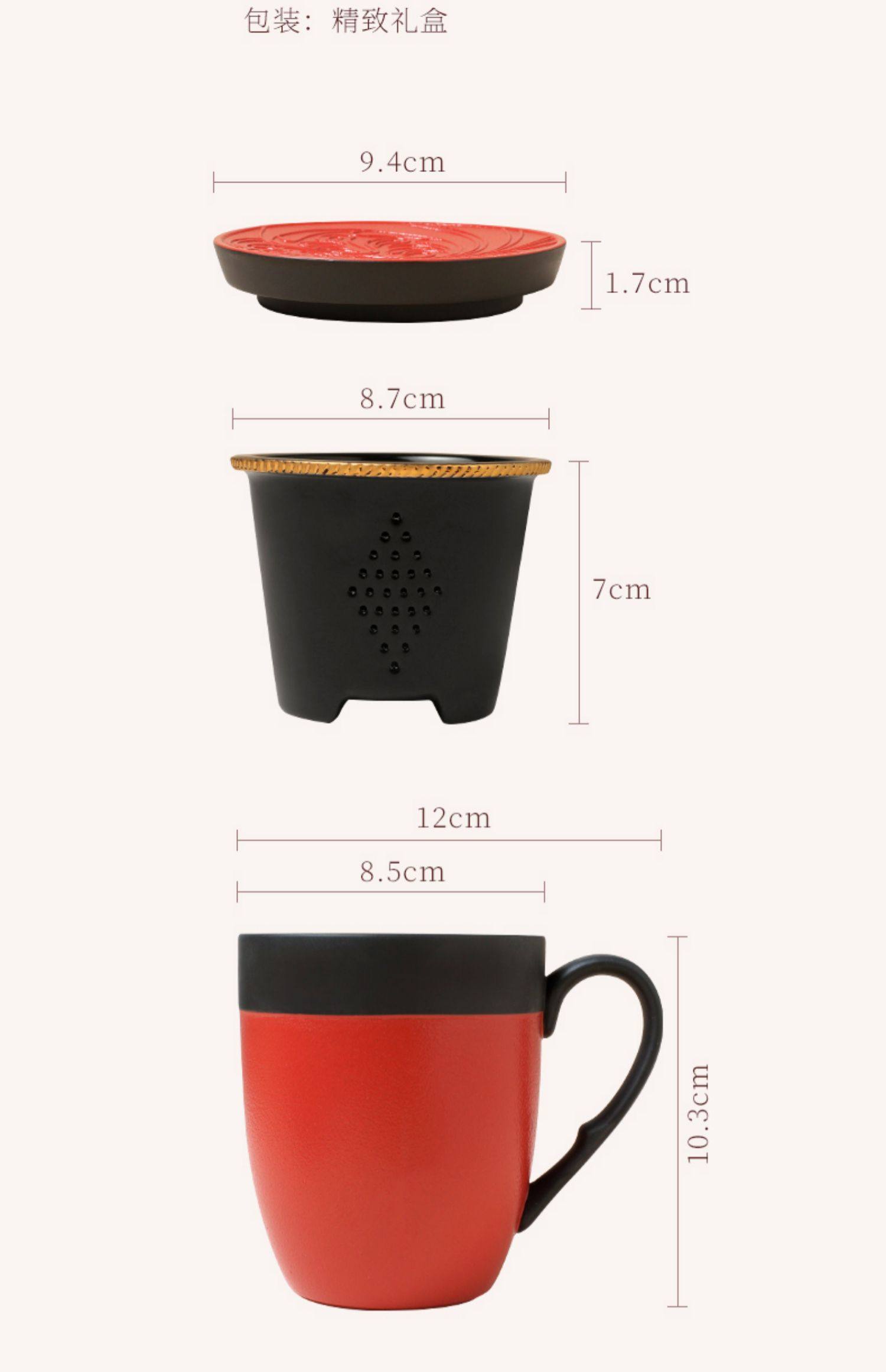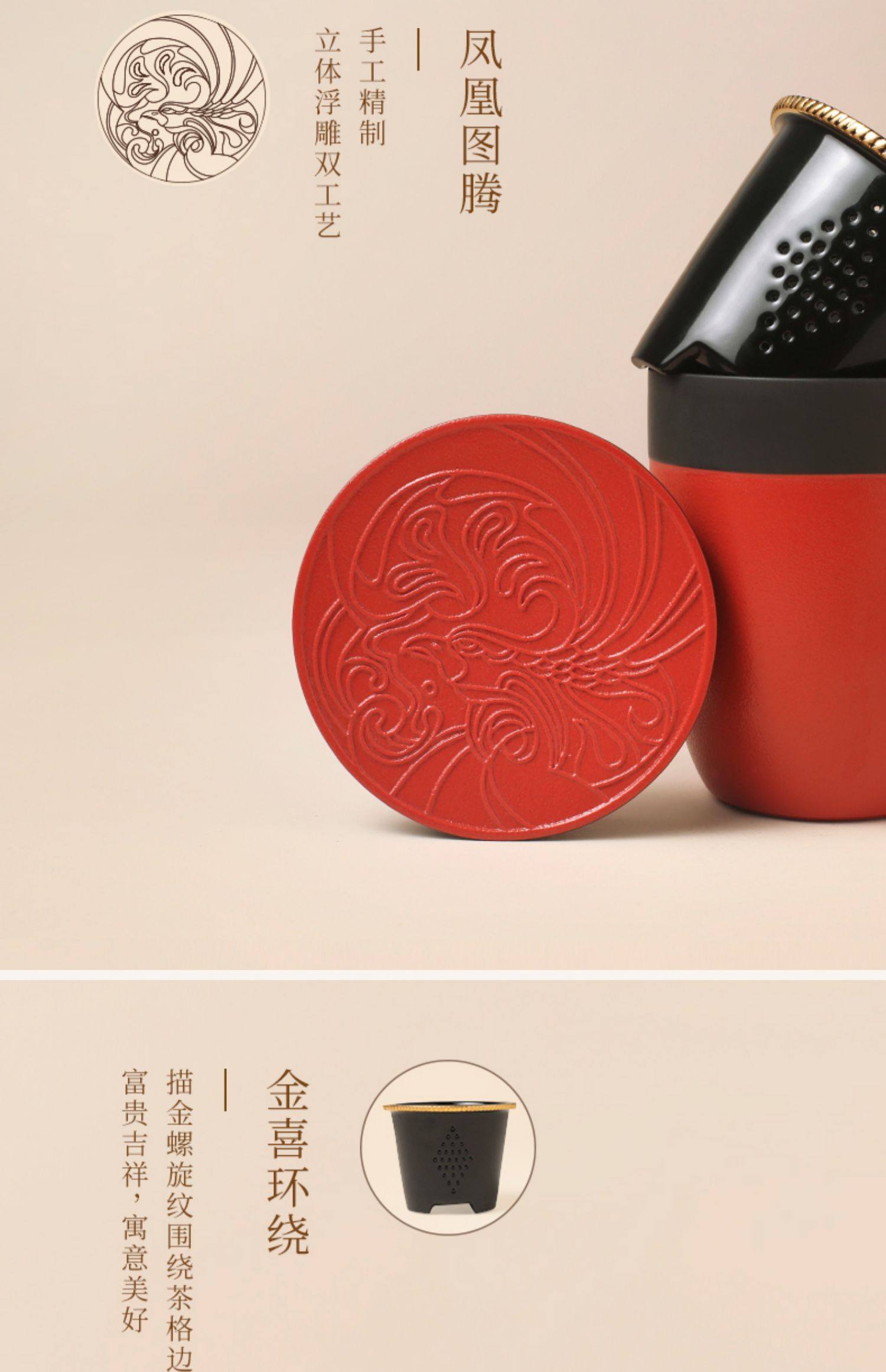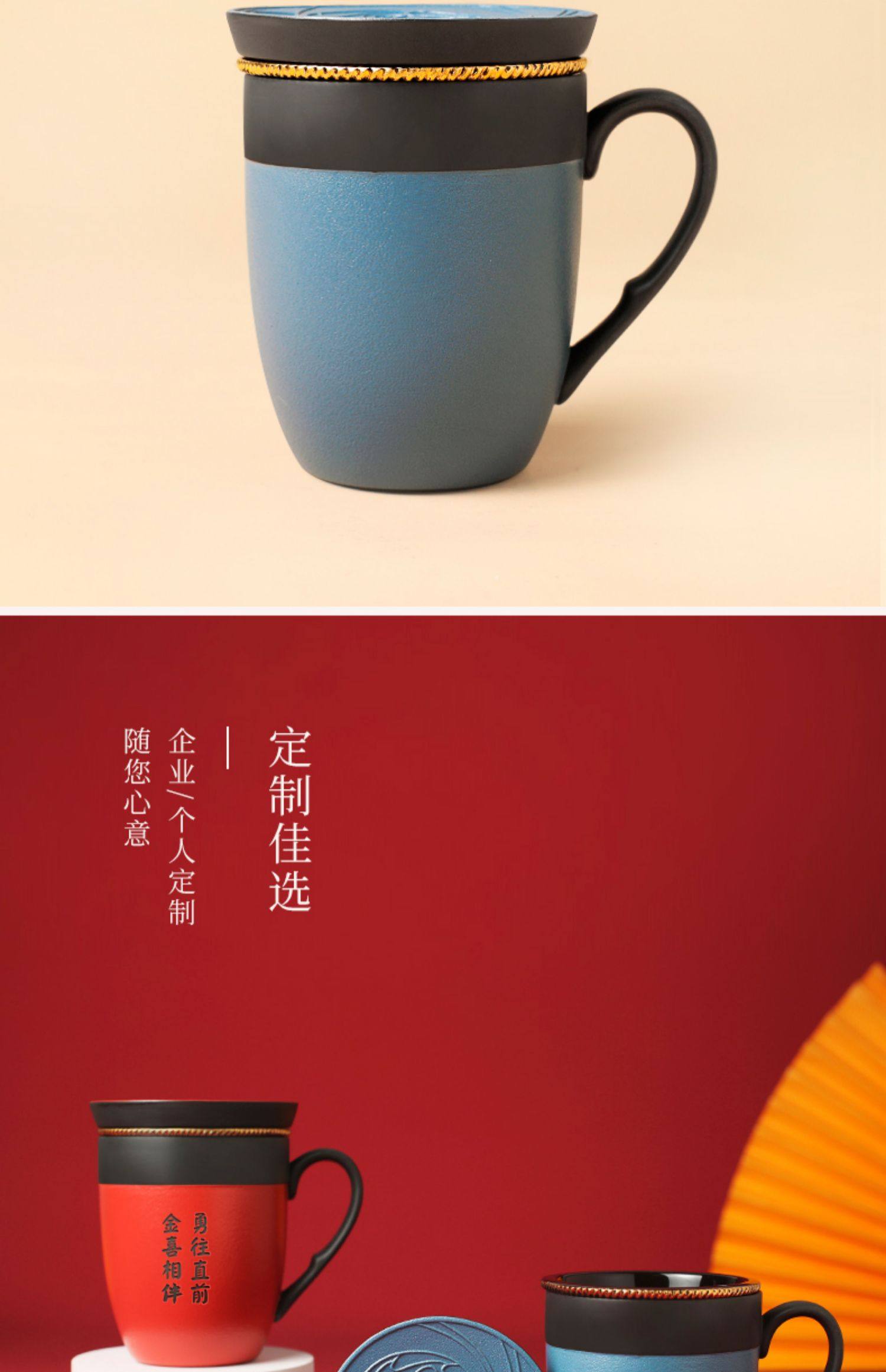 陆宝陶瓷泡茶饮水杯带茶滤茶水分离喝茶杯金喜环盖杯茶具礼盒装