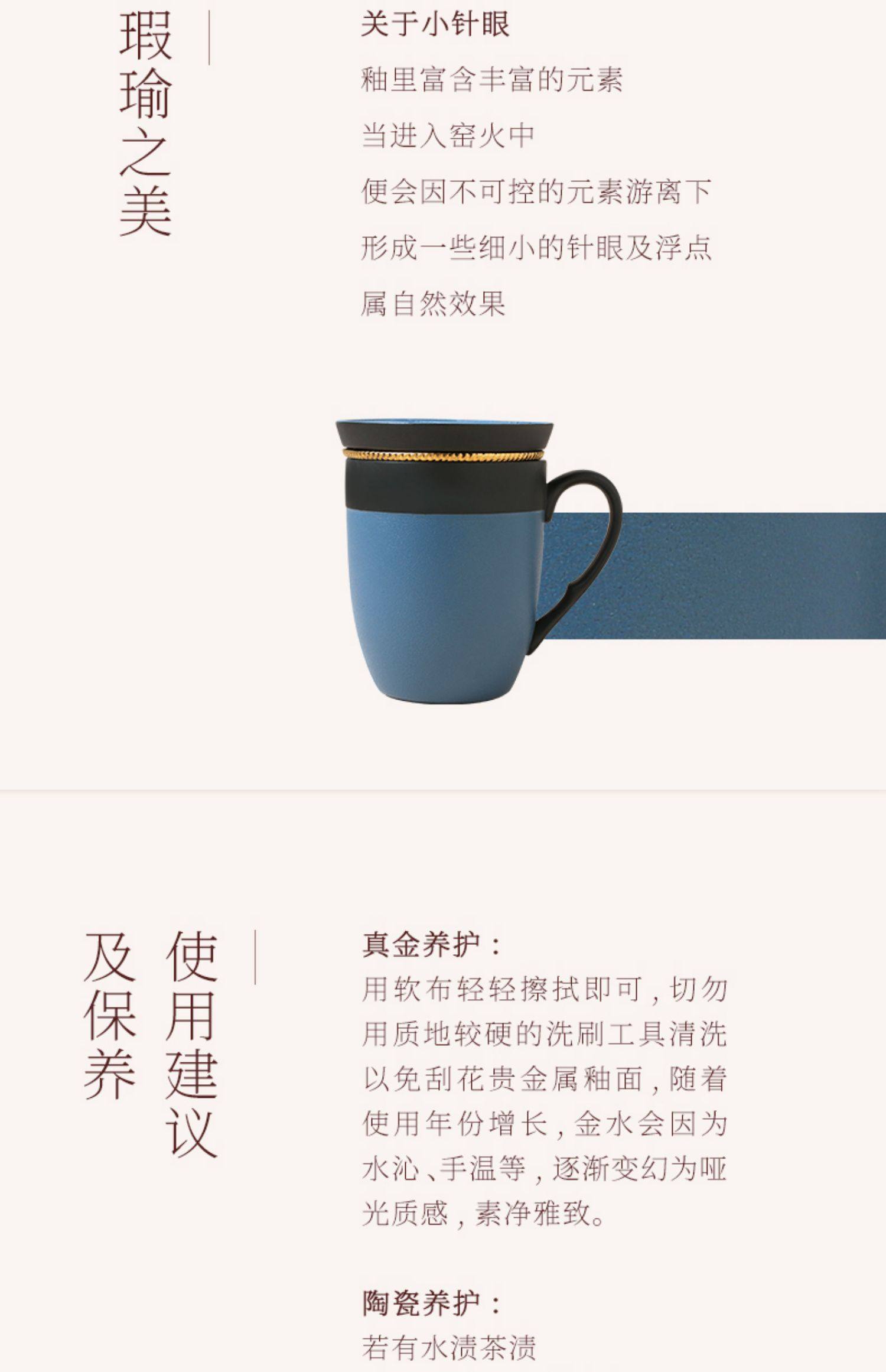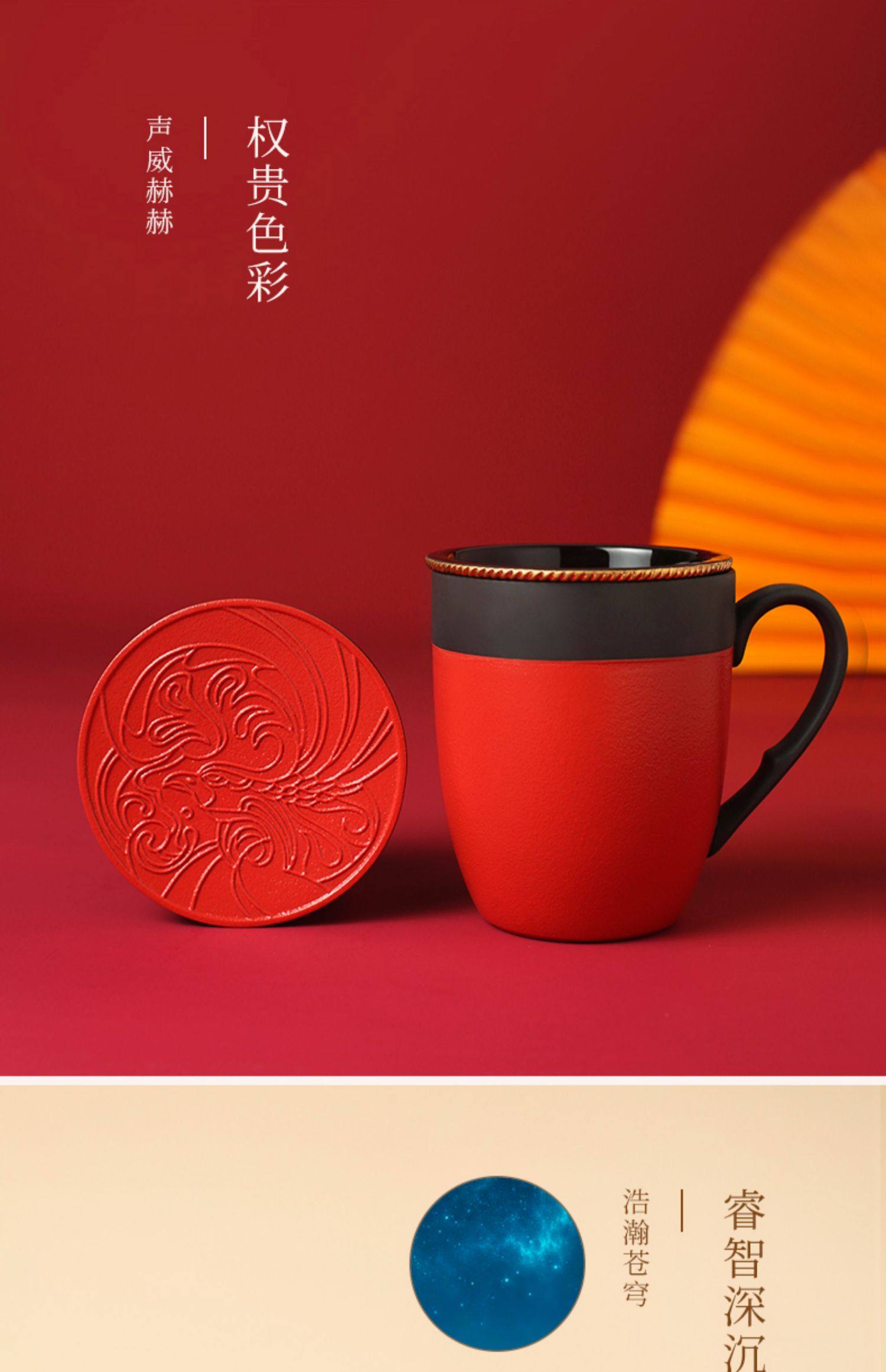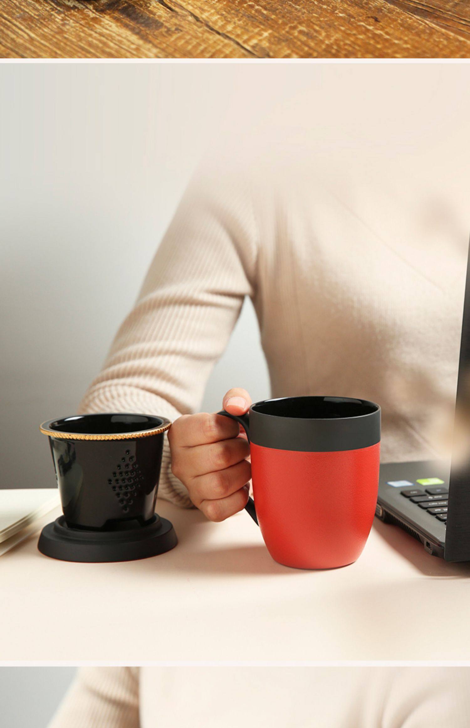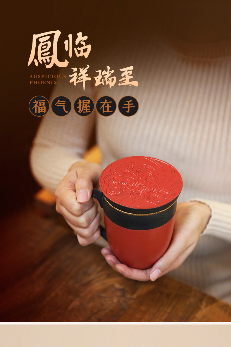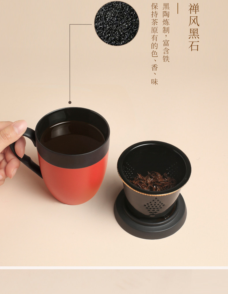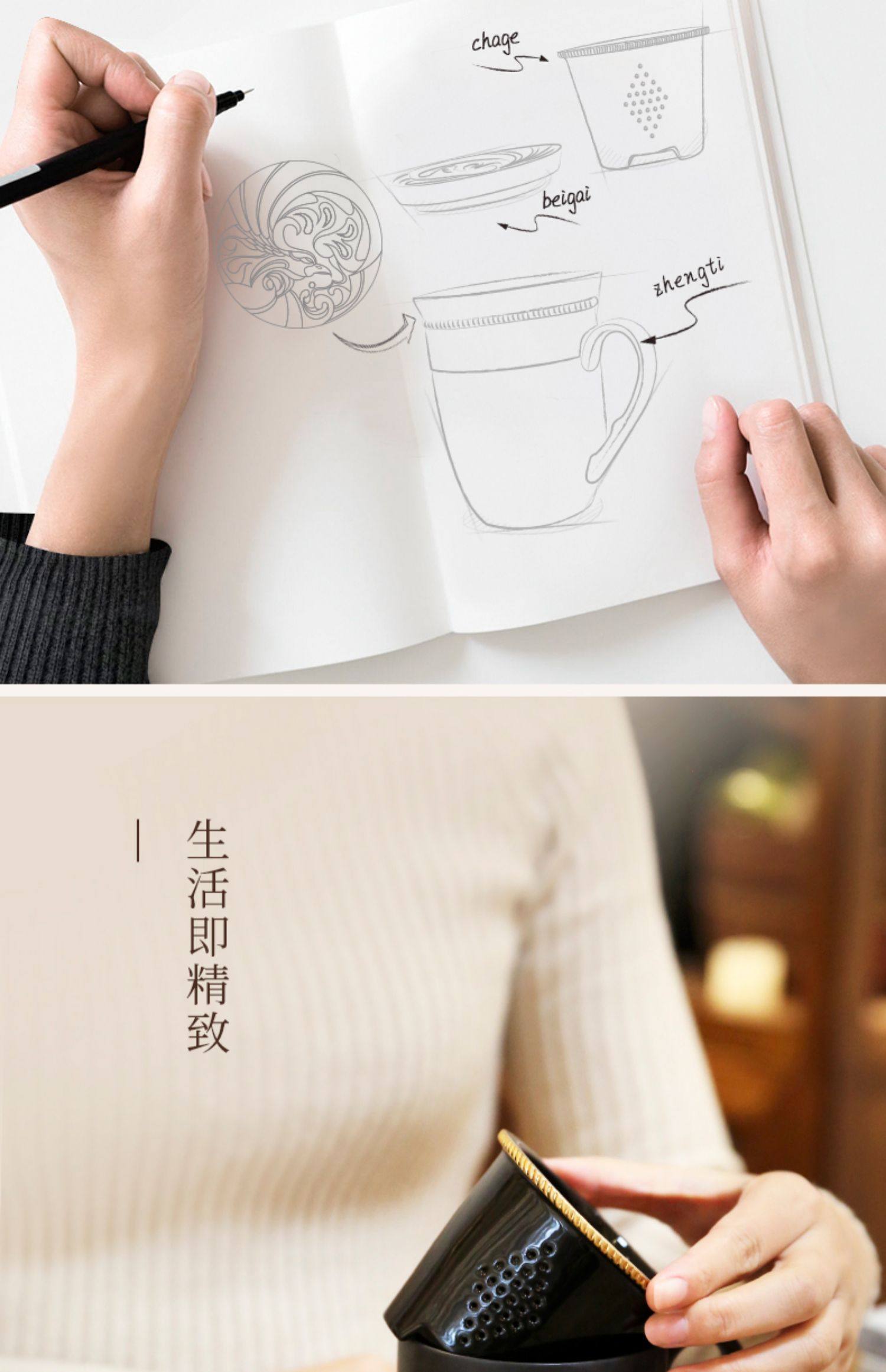 陆宝陶瓷泡茶饮水杯带茶滤茶水分离喝茶杯金喜环盖杯茶具礼盒装