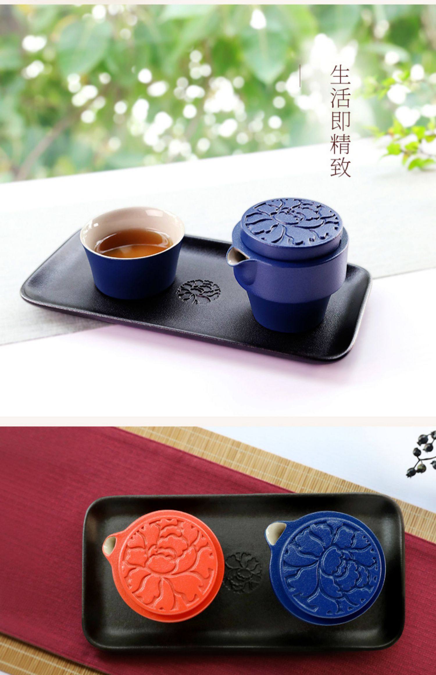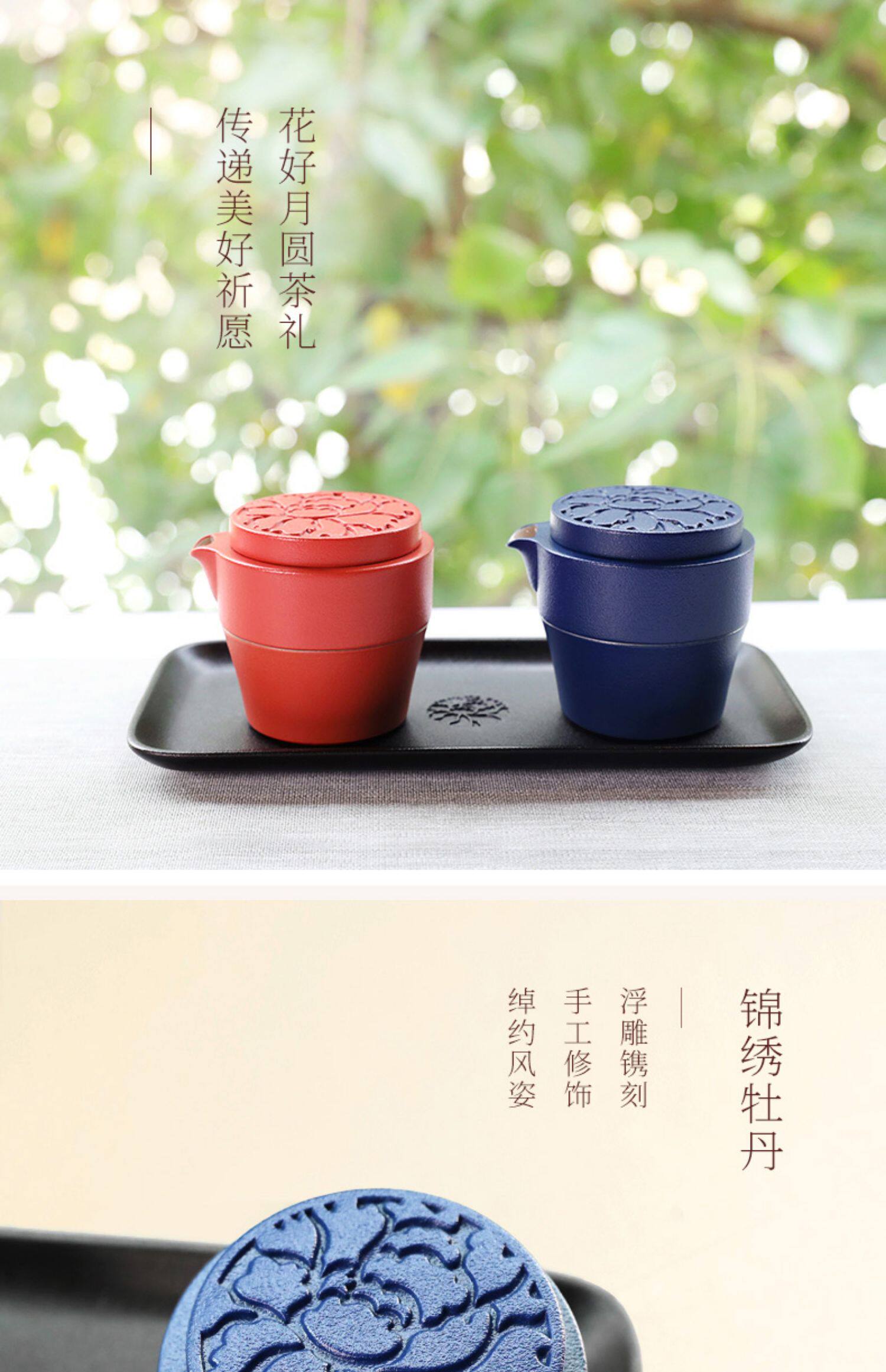 陆宝陶瓷茶具花好月圆茶礼一壶一杯带茶盘托盘礼盒装收纳便携茶组