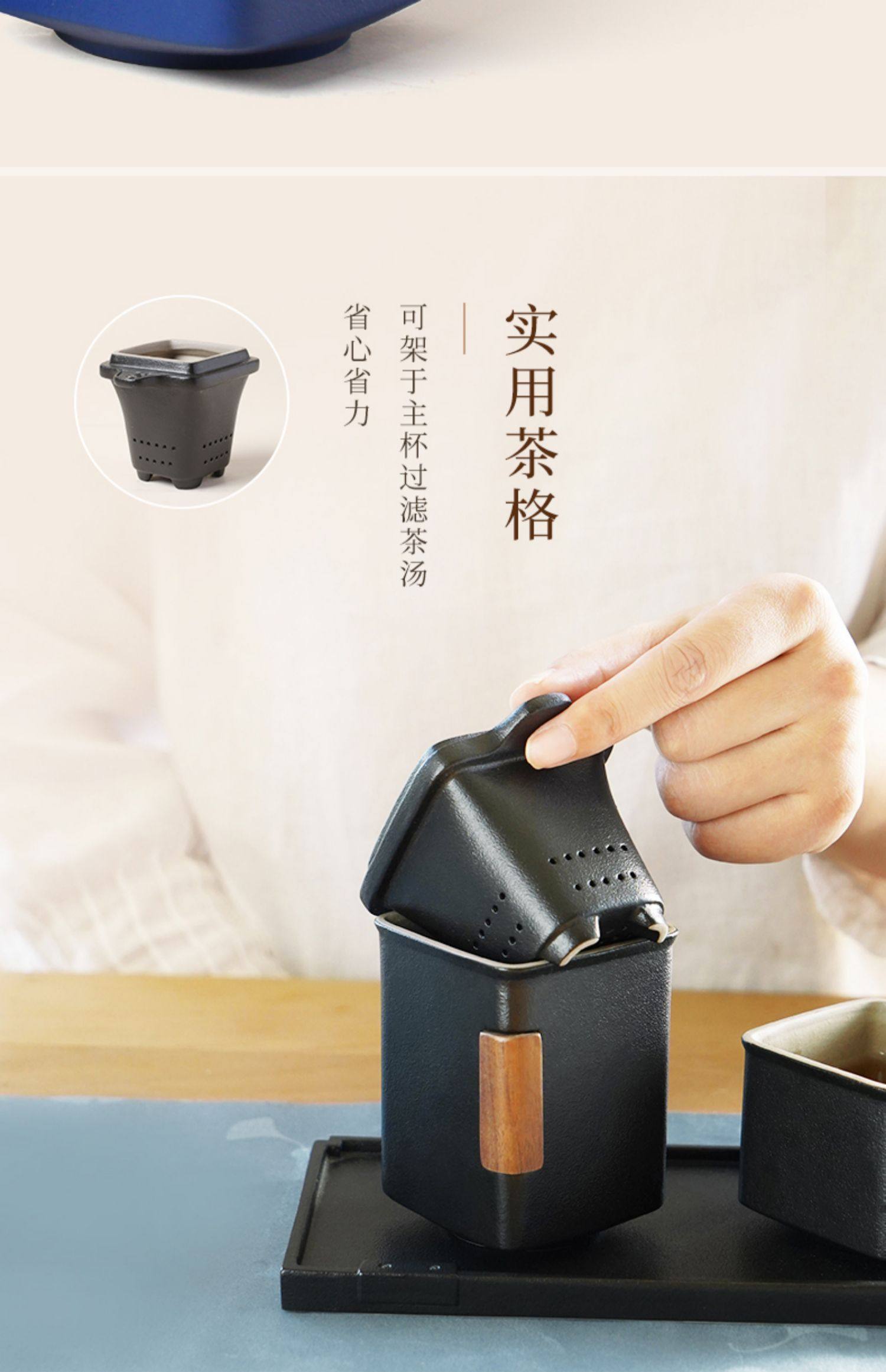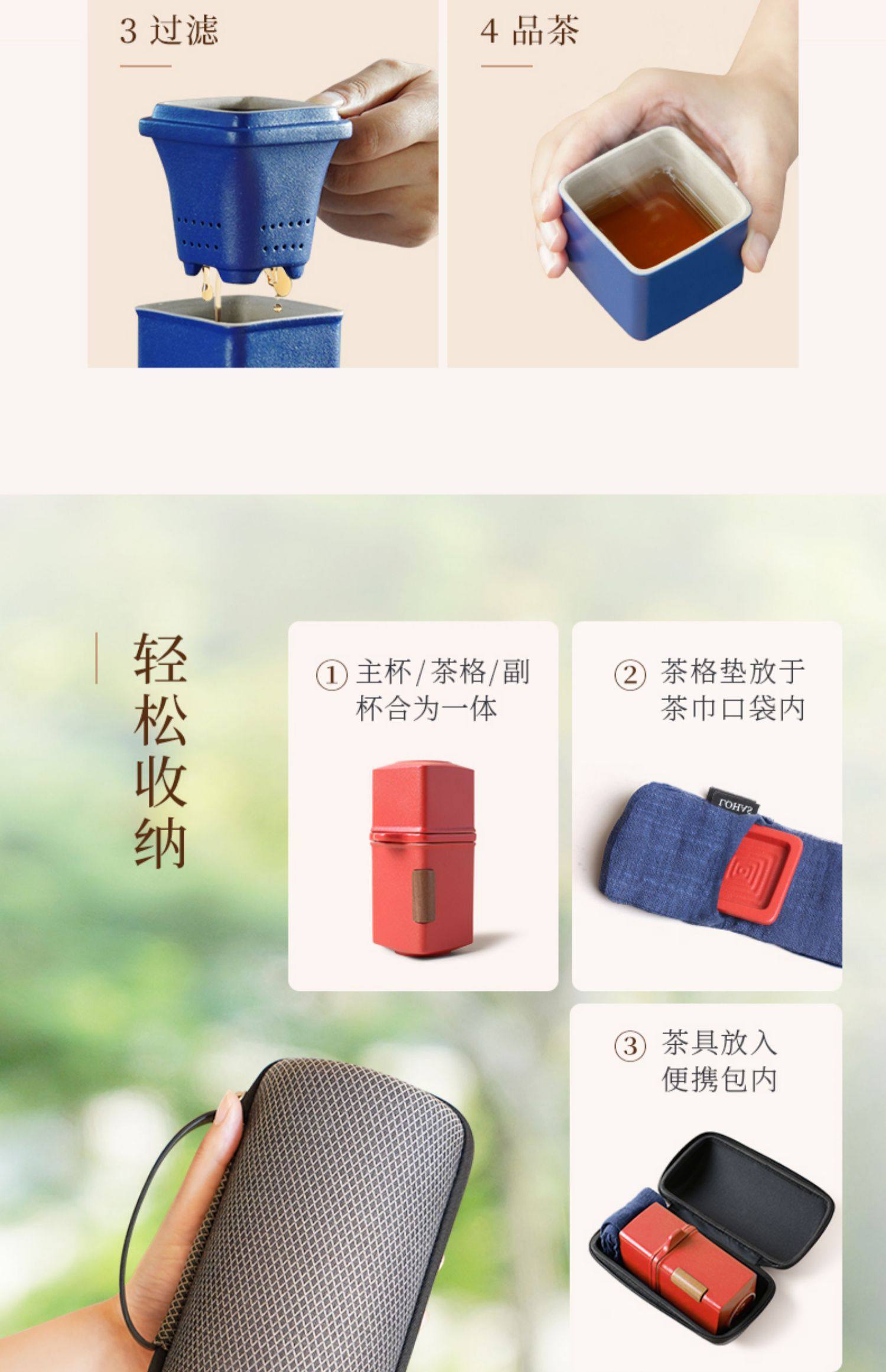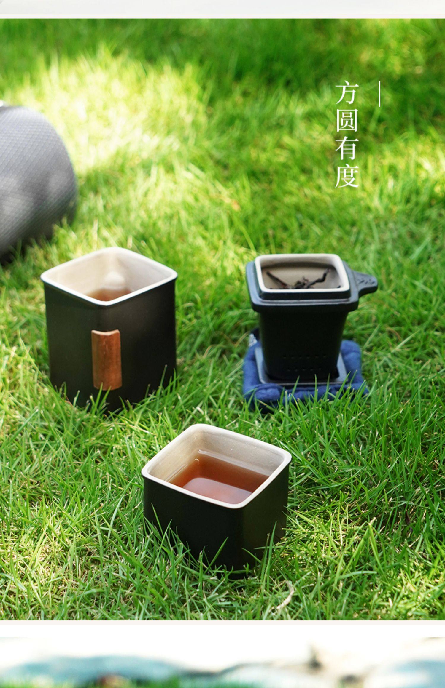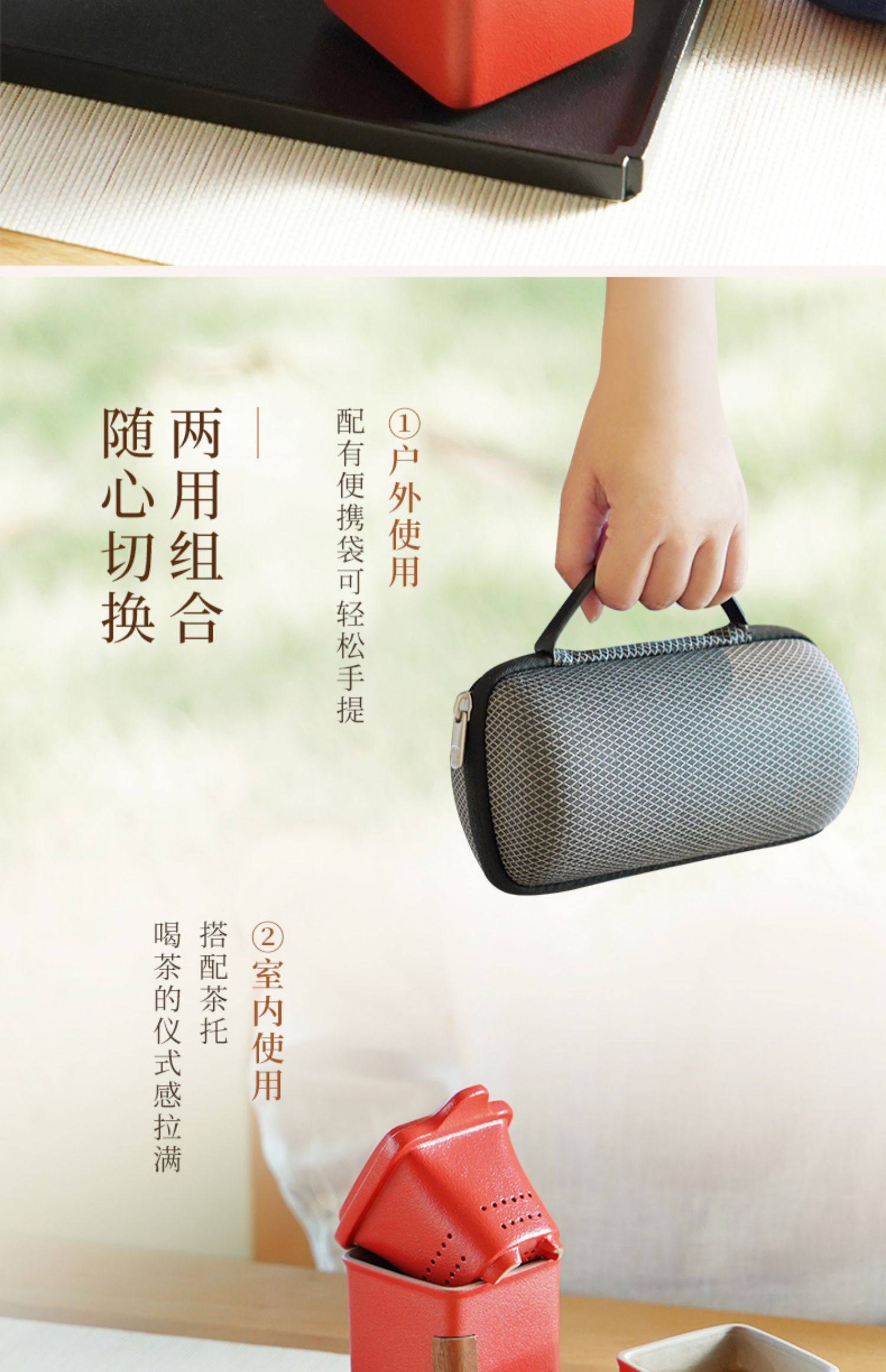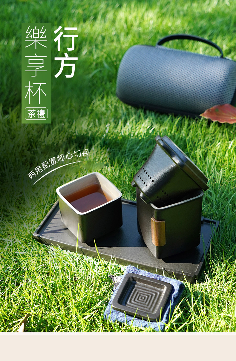 陆宝陶瓷行方快客杯一壶一杯旅行茶具套装单人便携泡茶杯带茶盘