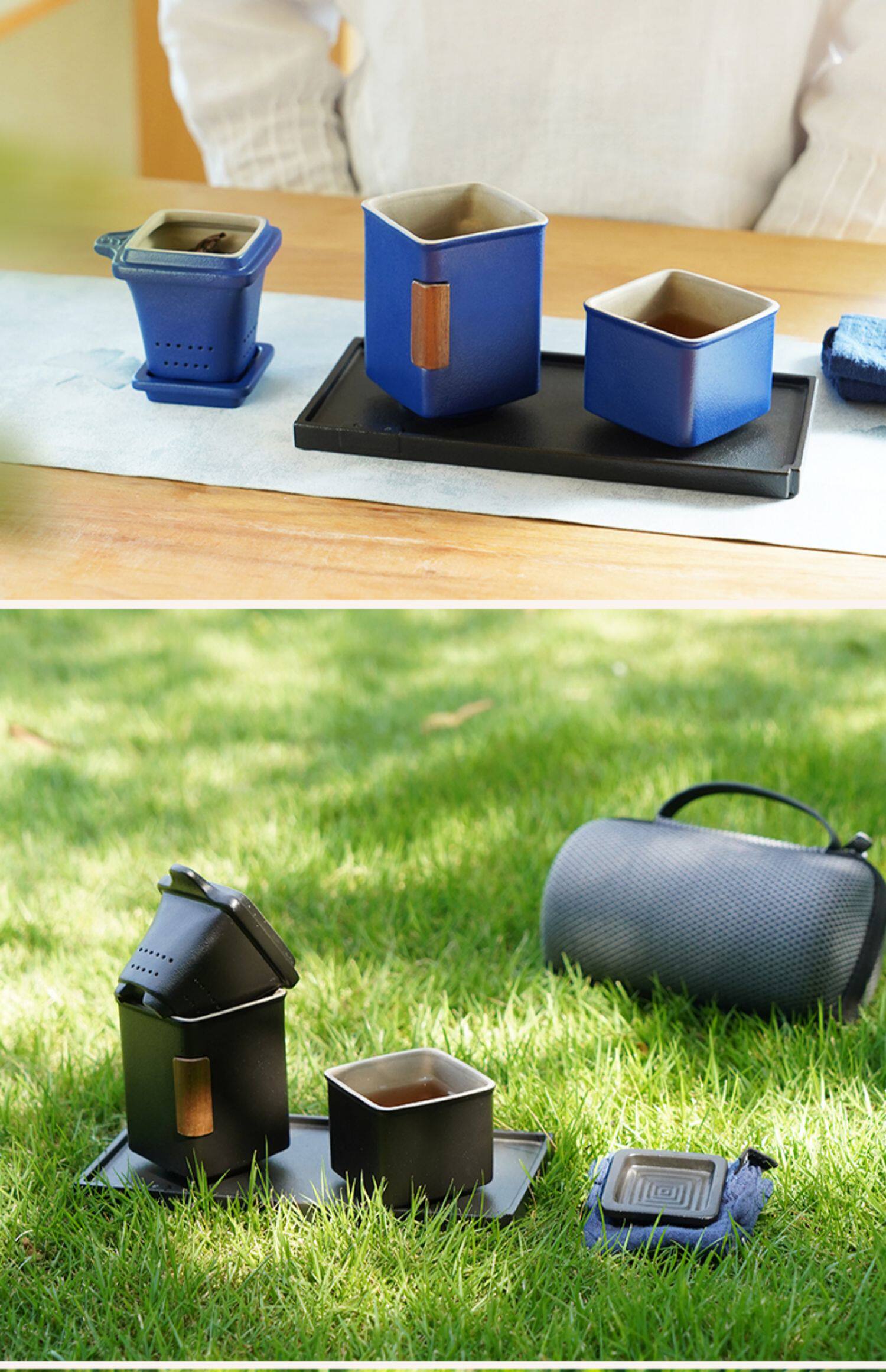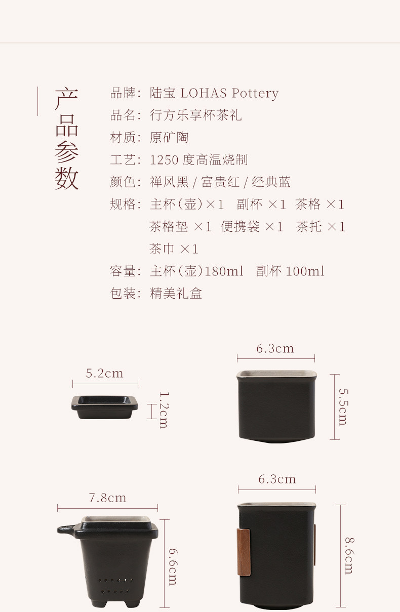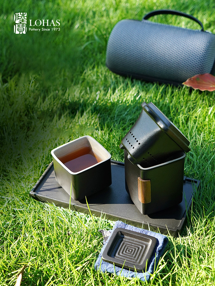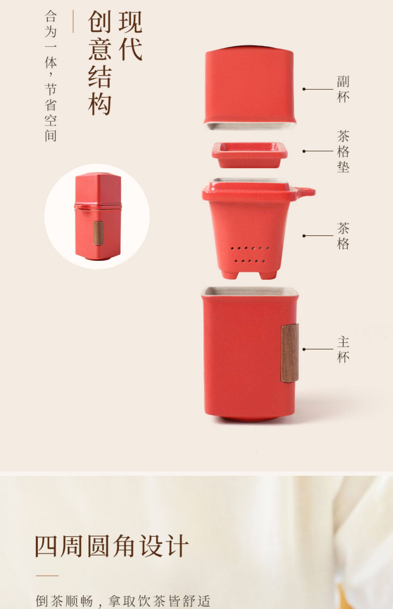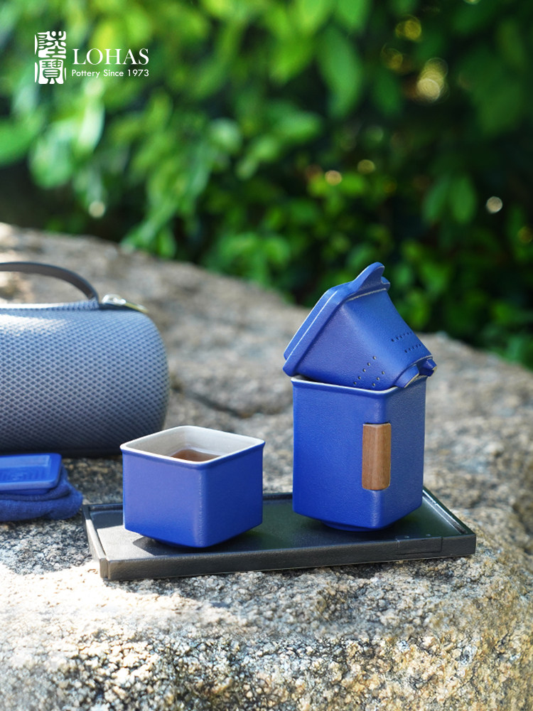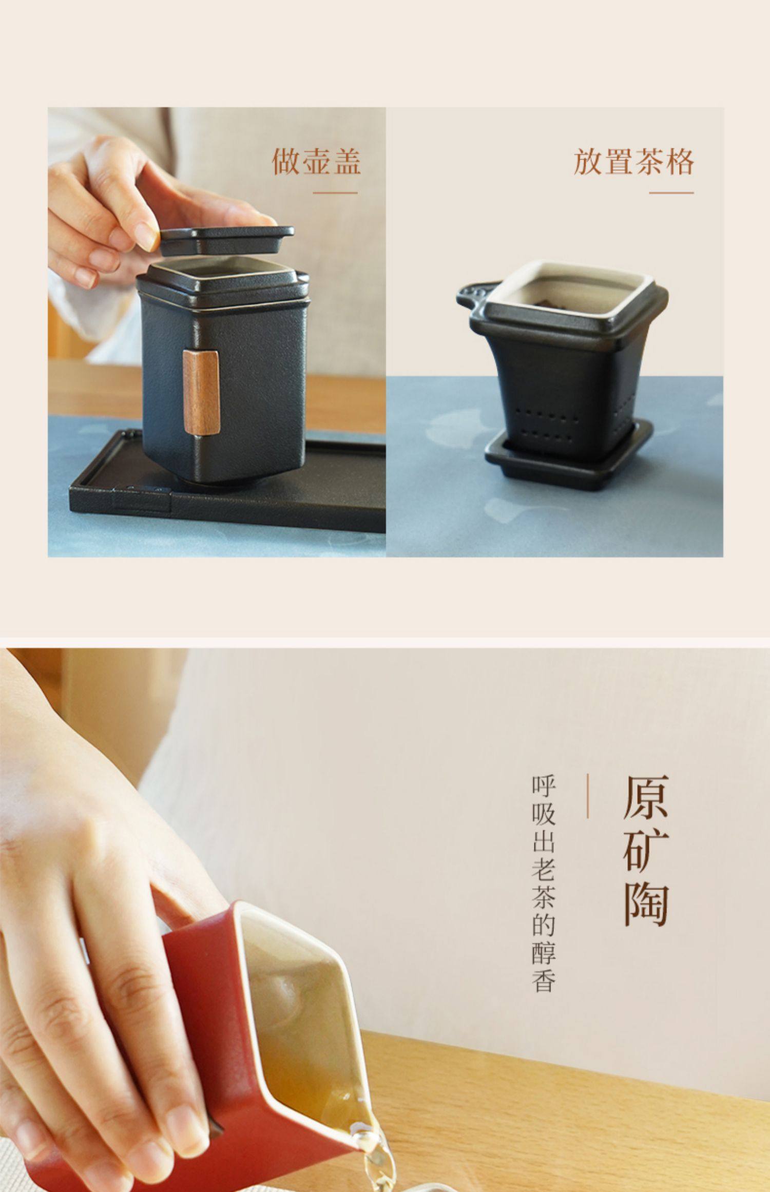 陆宝陶瓷行方快客杯一壶一杯旅行茶具套装单人便携泡茶杯带茶盘