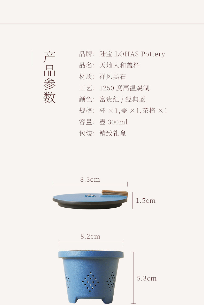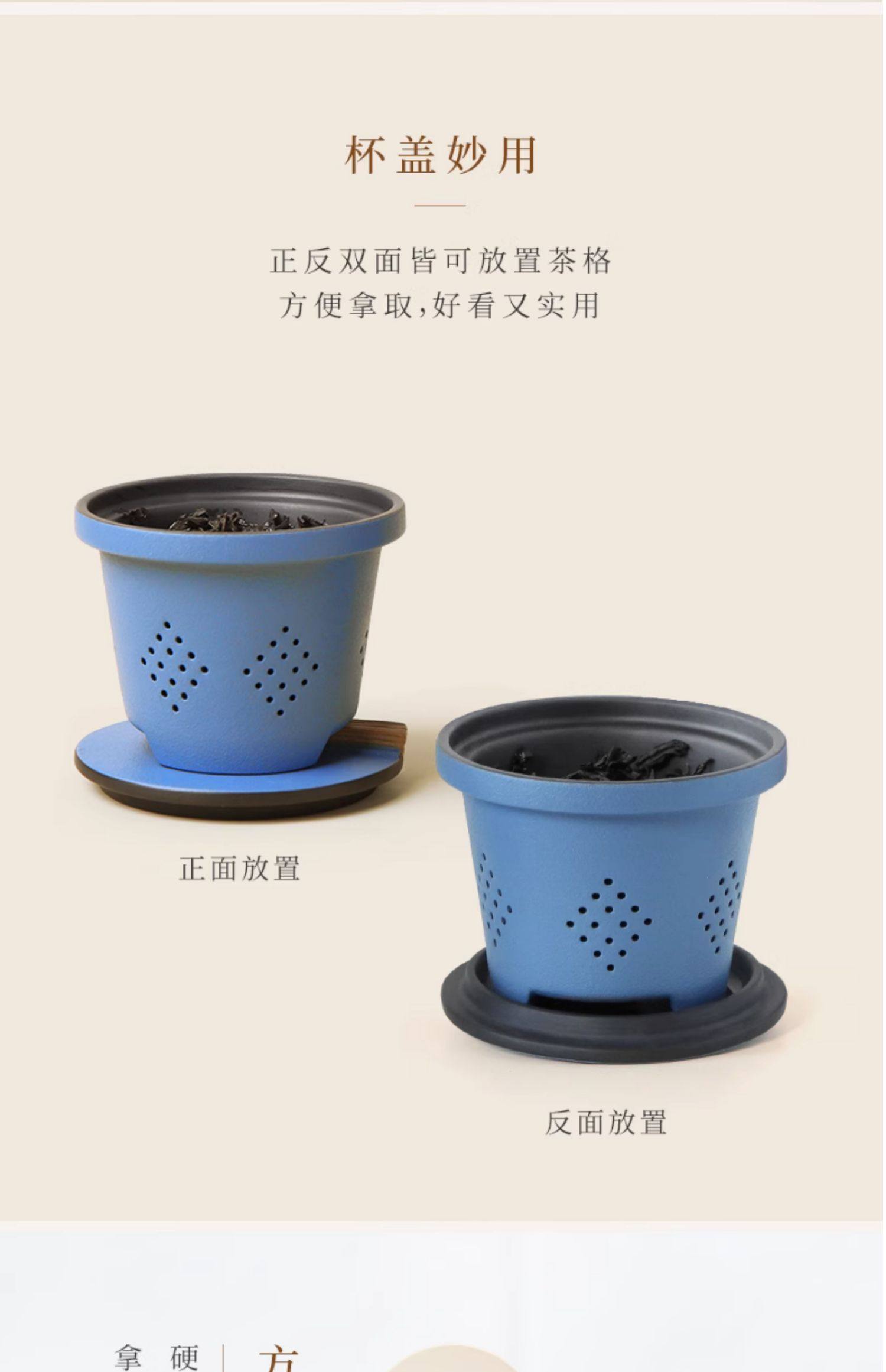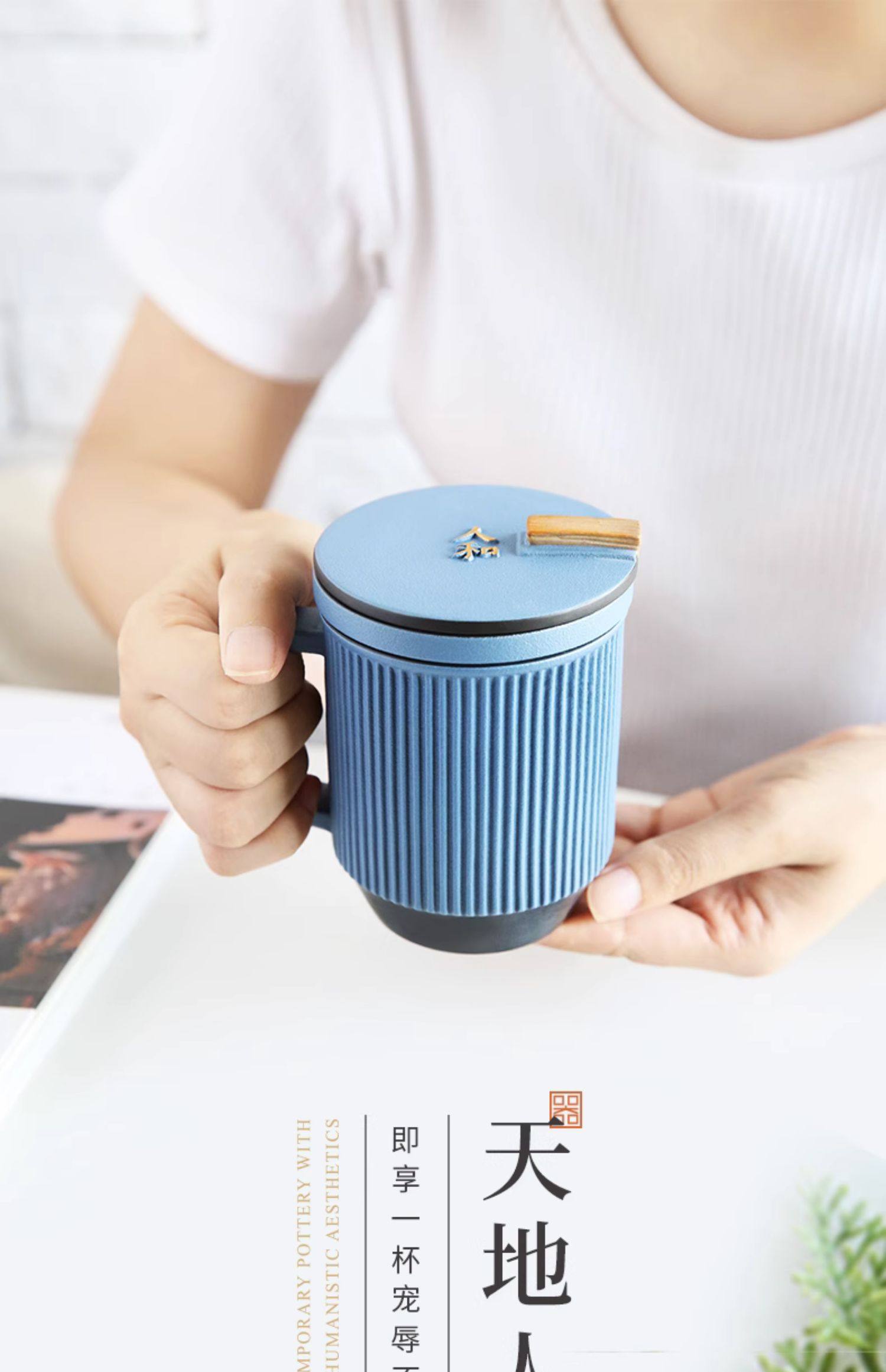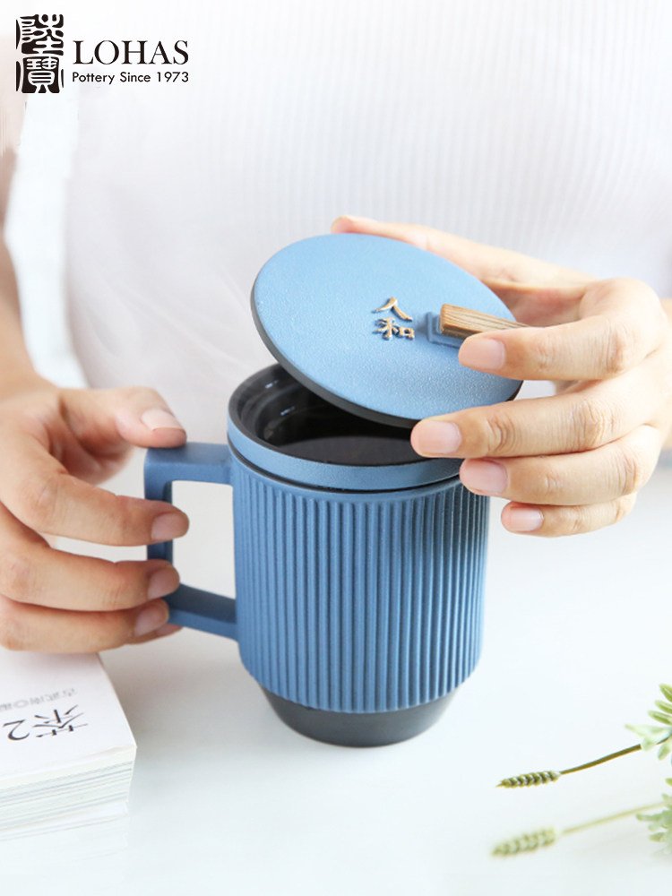 陆宝陶瓷杯天地人和盖杯办公室水杯茶水分离泡茶杯马克杯中式陶杯