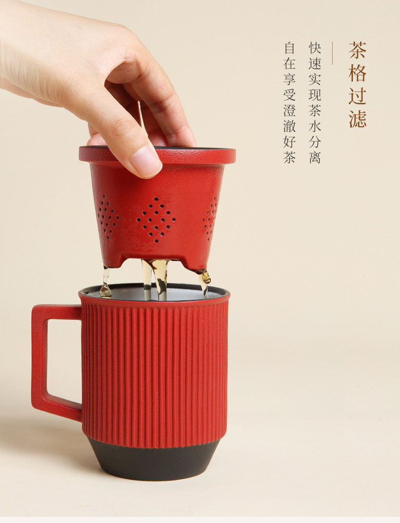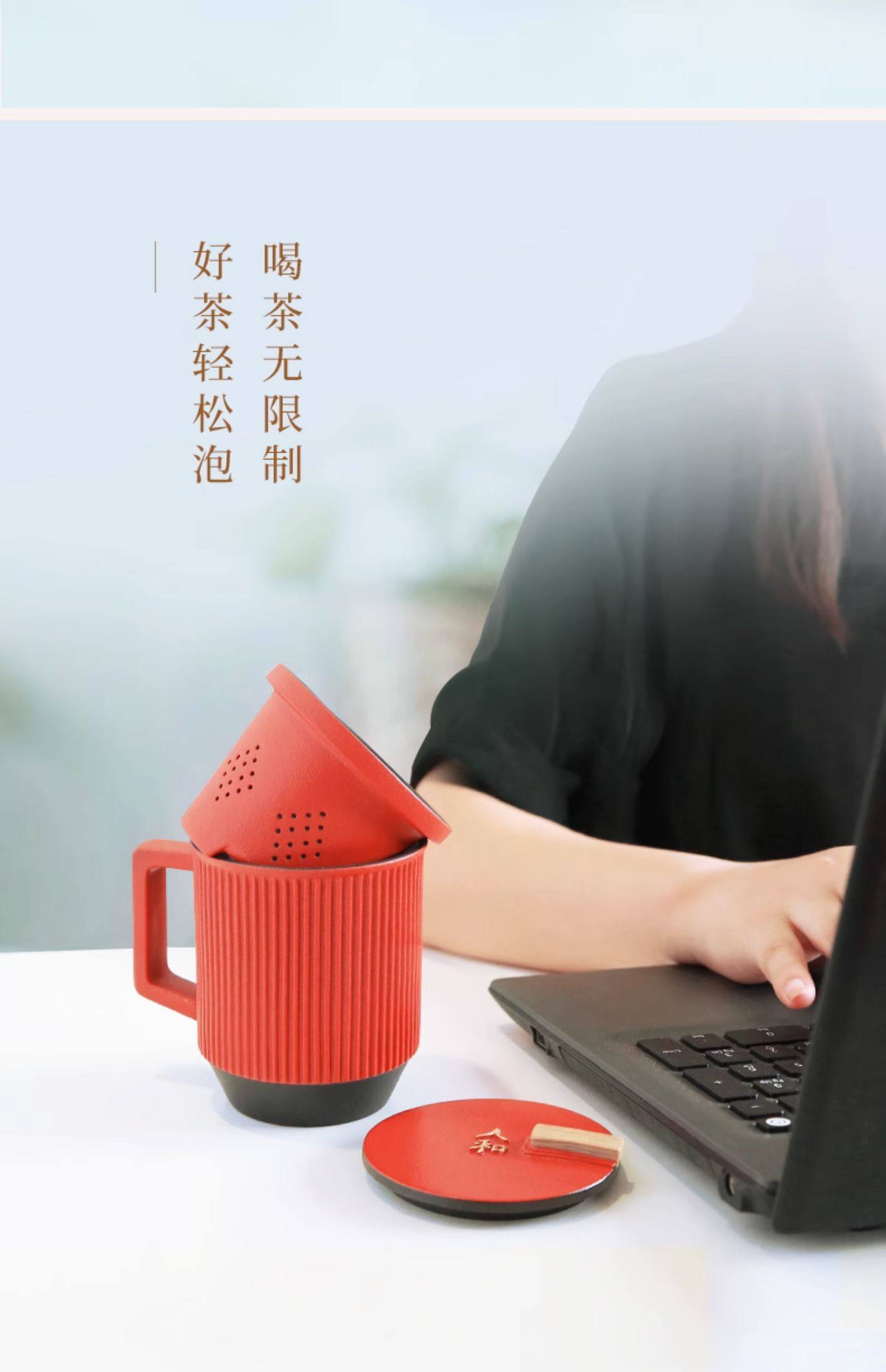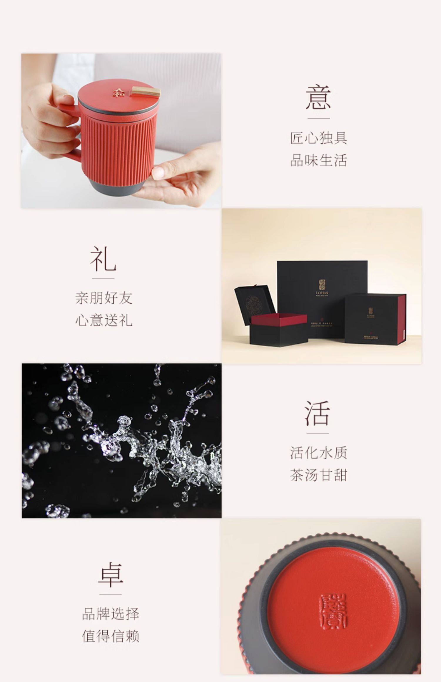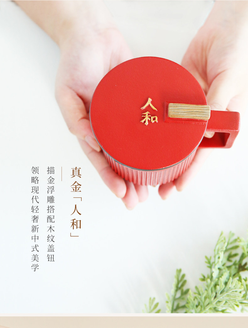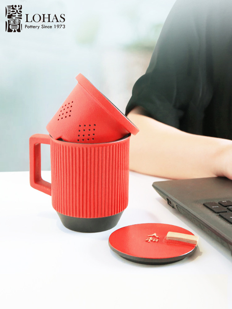 陆宝陶瓷杯天地人和盖杯办公室水杯茶水分离泡茶杯马克杯中式陶杯