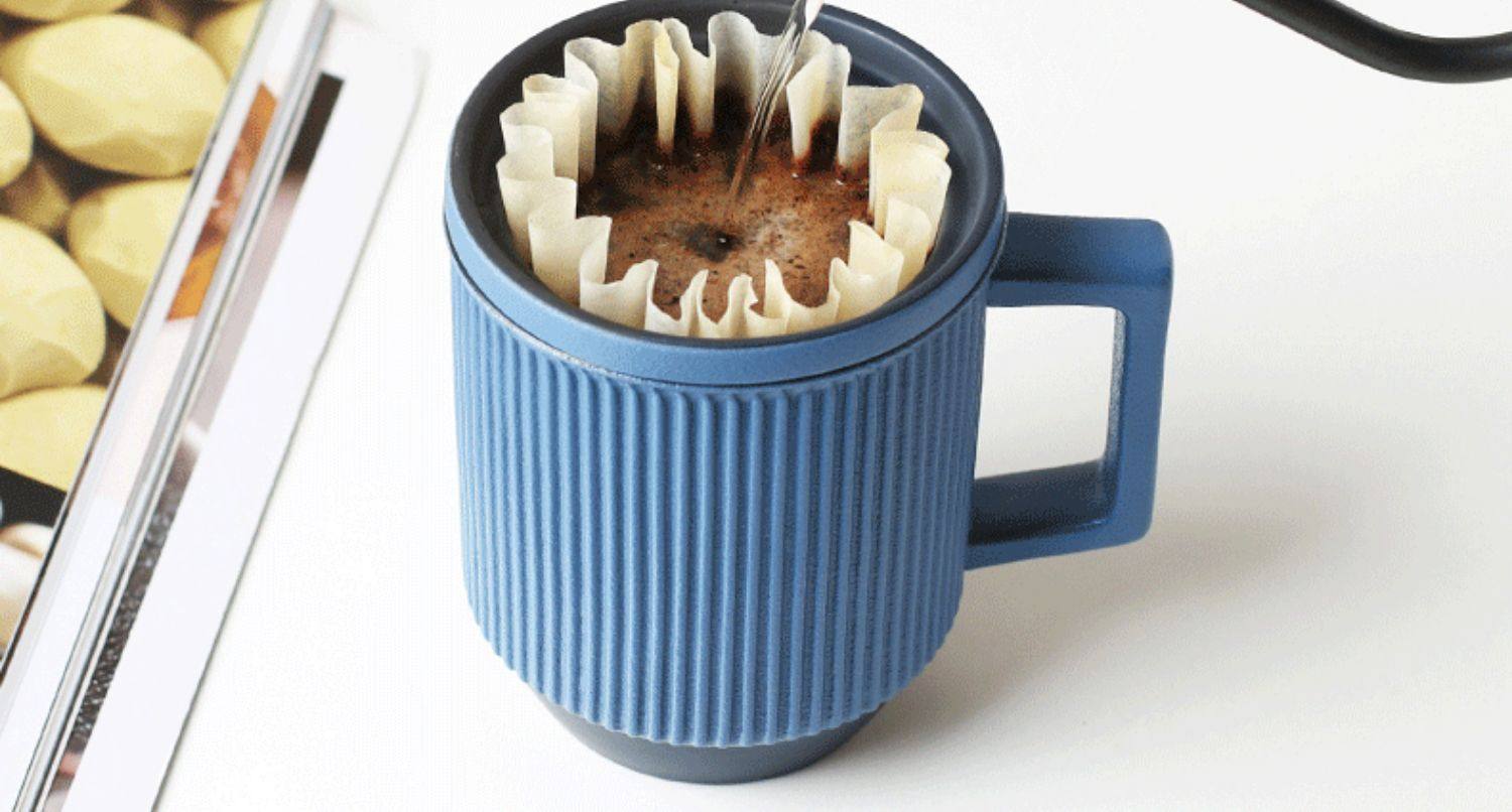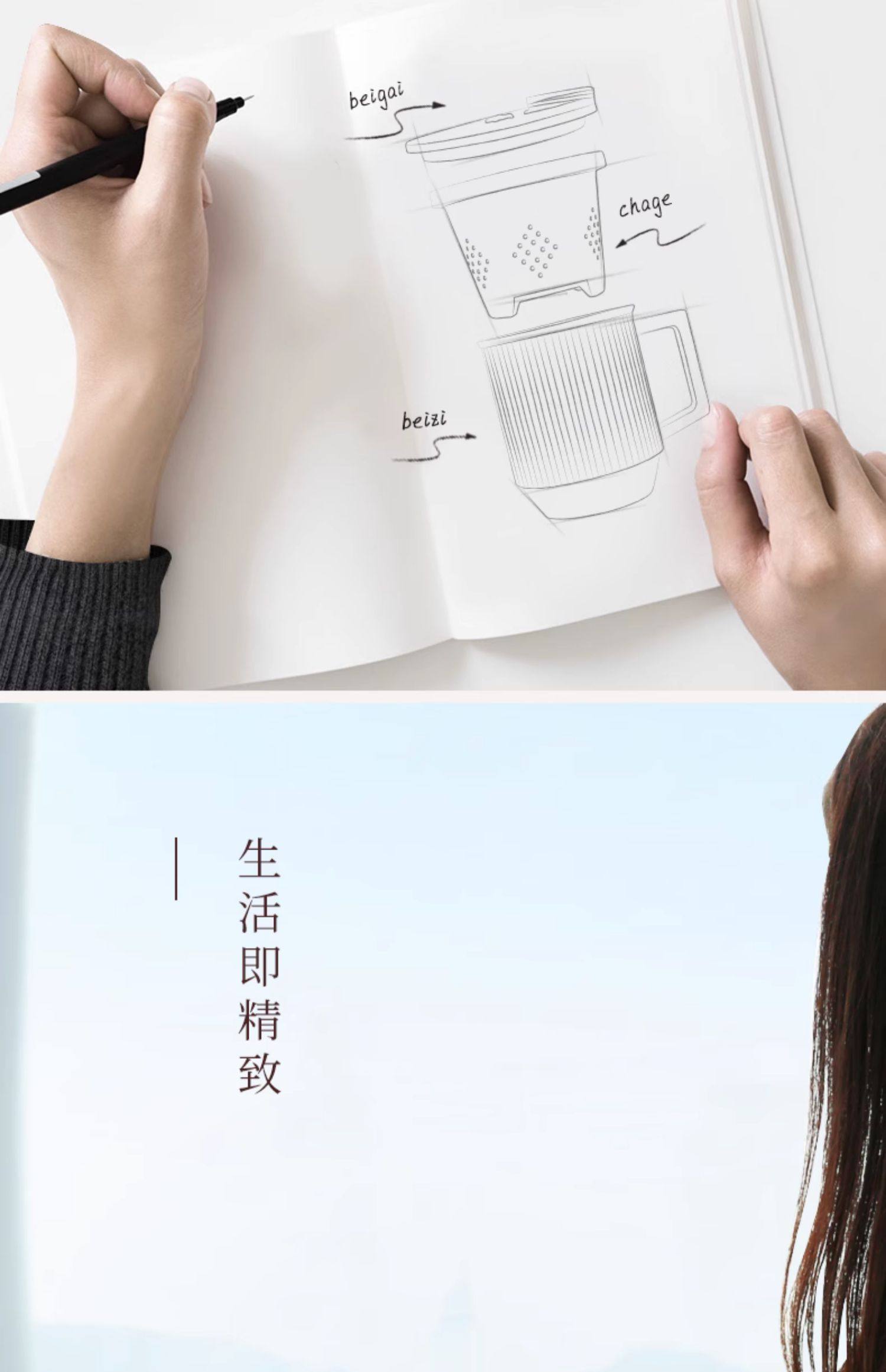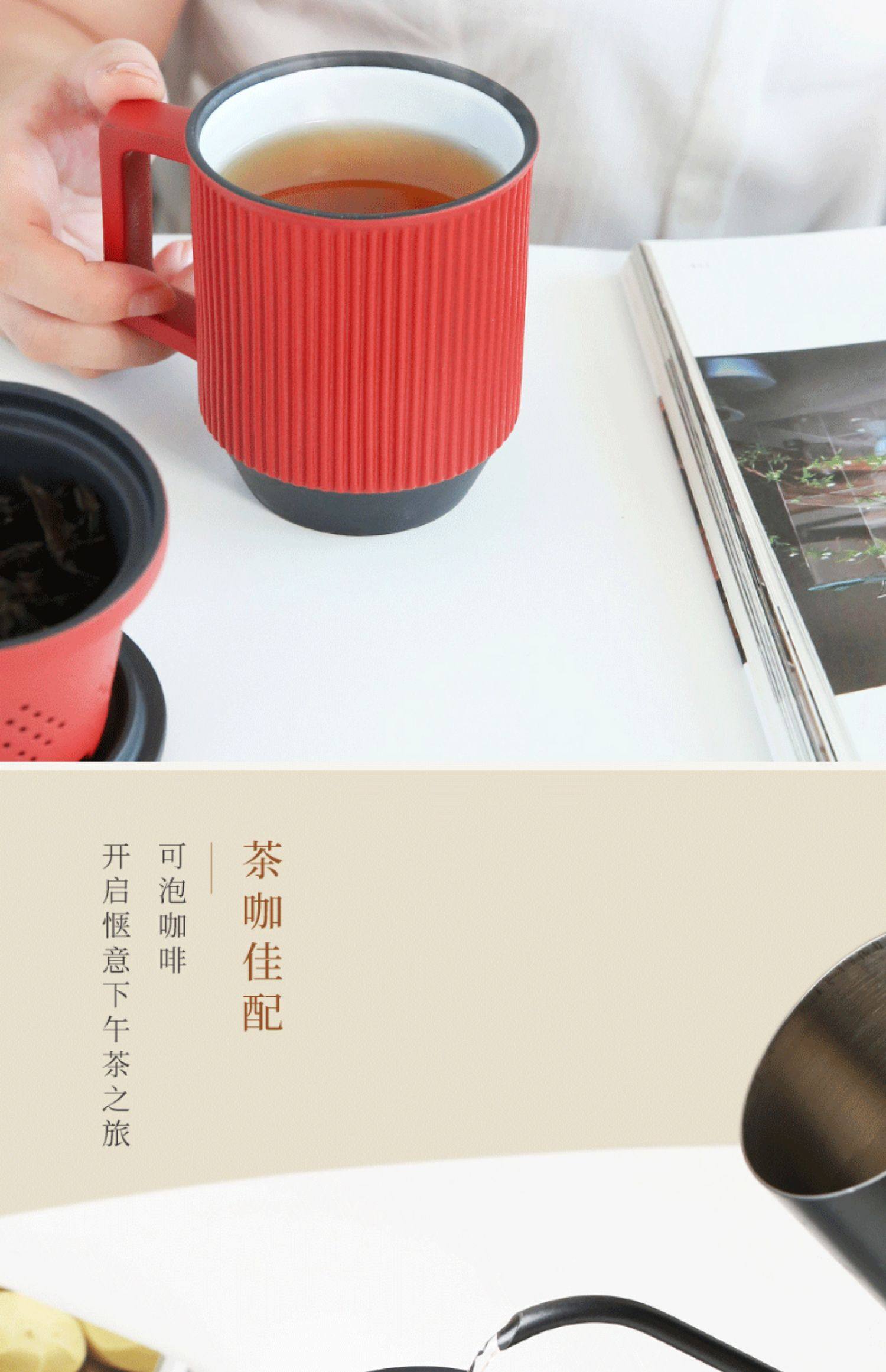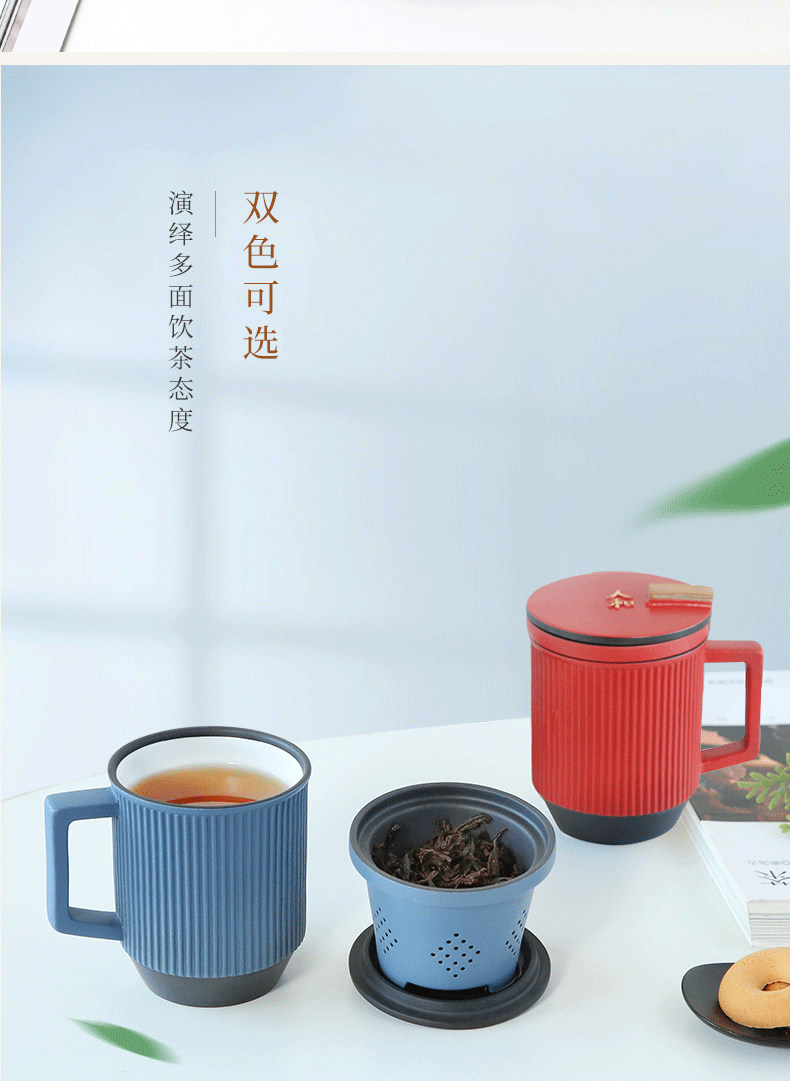 陆宝陶瓷杯天地人和盖杯办公室水杯茶水分离泡茶杯马克杯中式陶杯