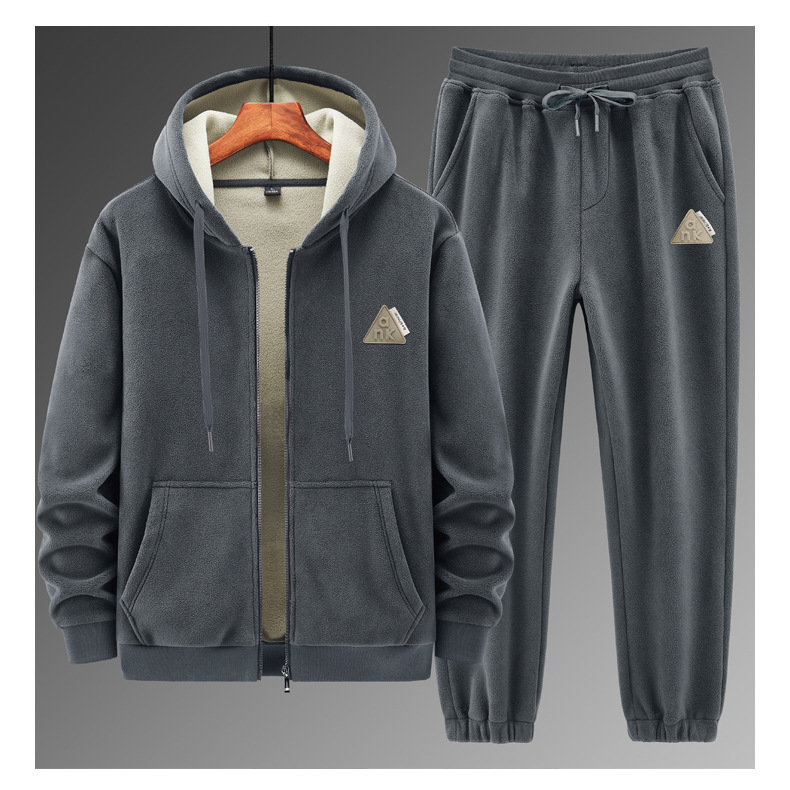 冬季加绒加厚连帽开衫卫衣套装男外套德绒抗寒保暖休闲运动两件套