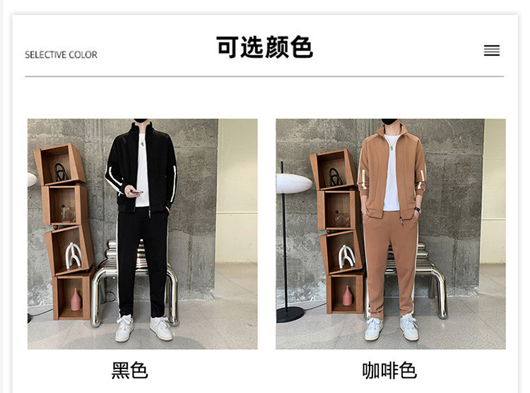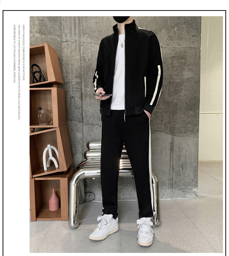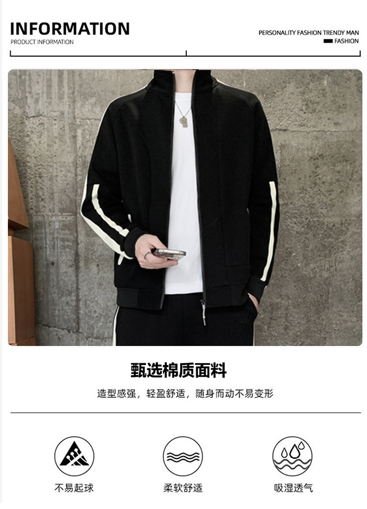 棉质套装男2023秋季新款宽松休闲两件套运动男士套装青少年套装潮