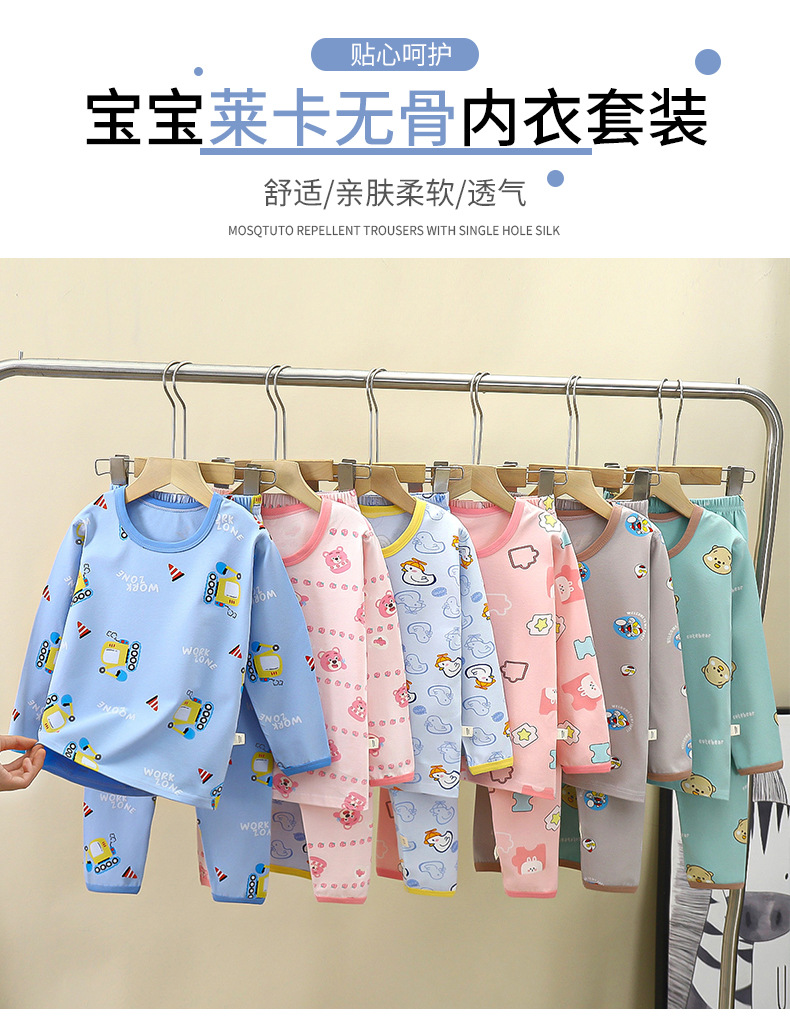 2023年新款莱卡棉儿童秋衣秋裤套装中小童两件套小孩长袖家居服
