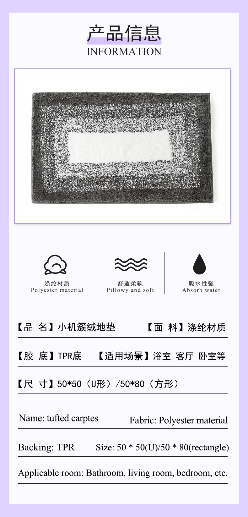 跨境超纤吸水浴室防滑垫子灰色条纹入户地垫进门家用义乌地毯定制