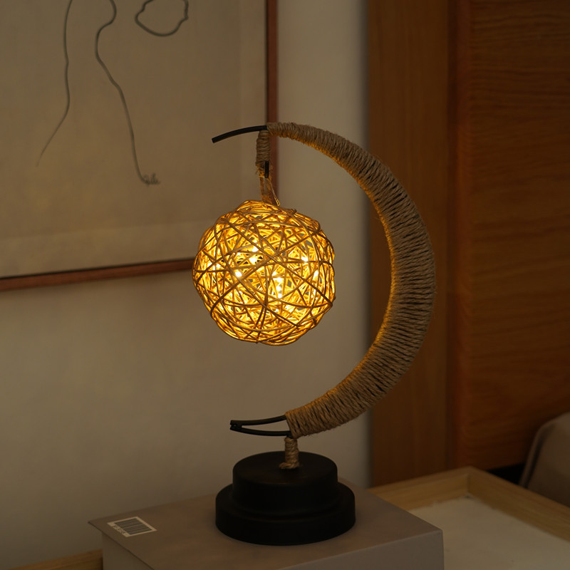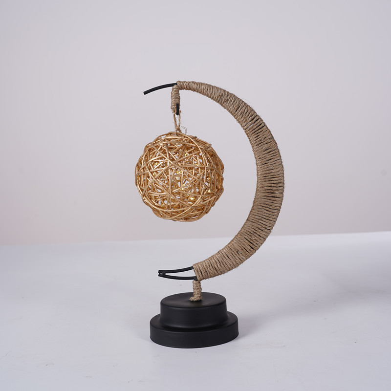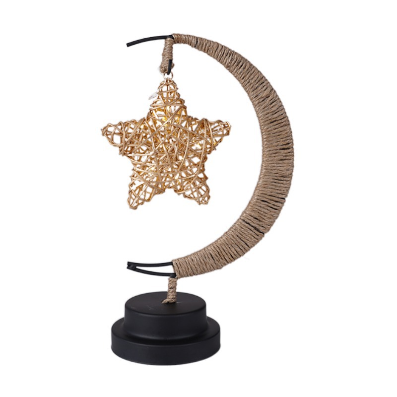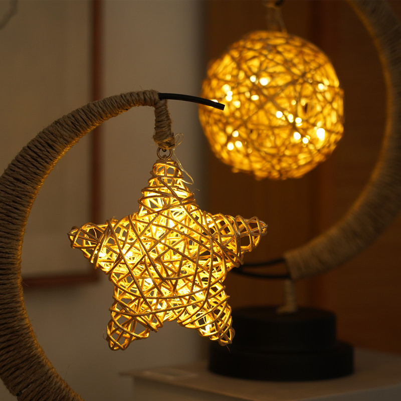 新款 led金属编藤五角星圆球月亮圣诞灯 生日礼物 手工麻绳小夜灯