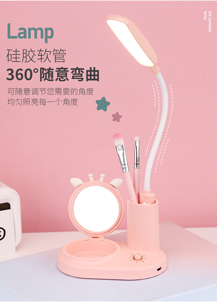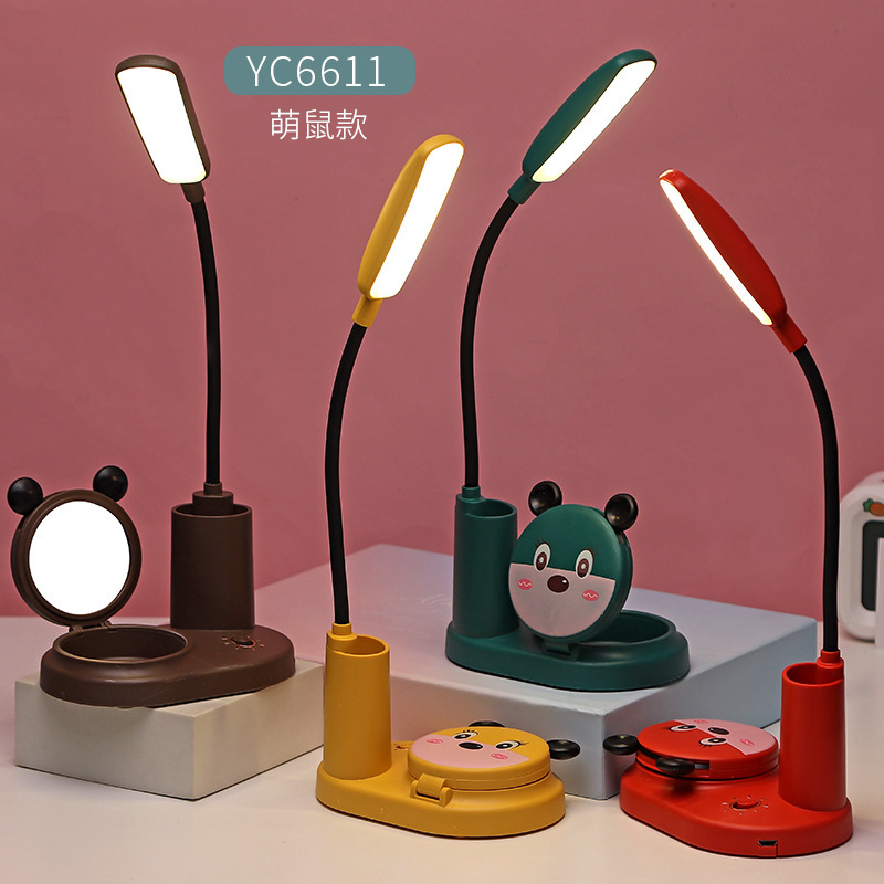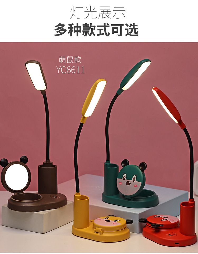 创意多款式卡通小动物笔插多功能镜子小夜灯学生用品节日礼品批发