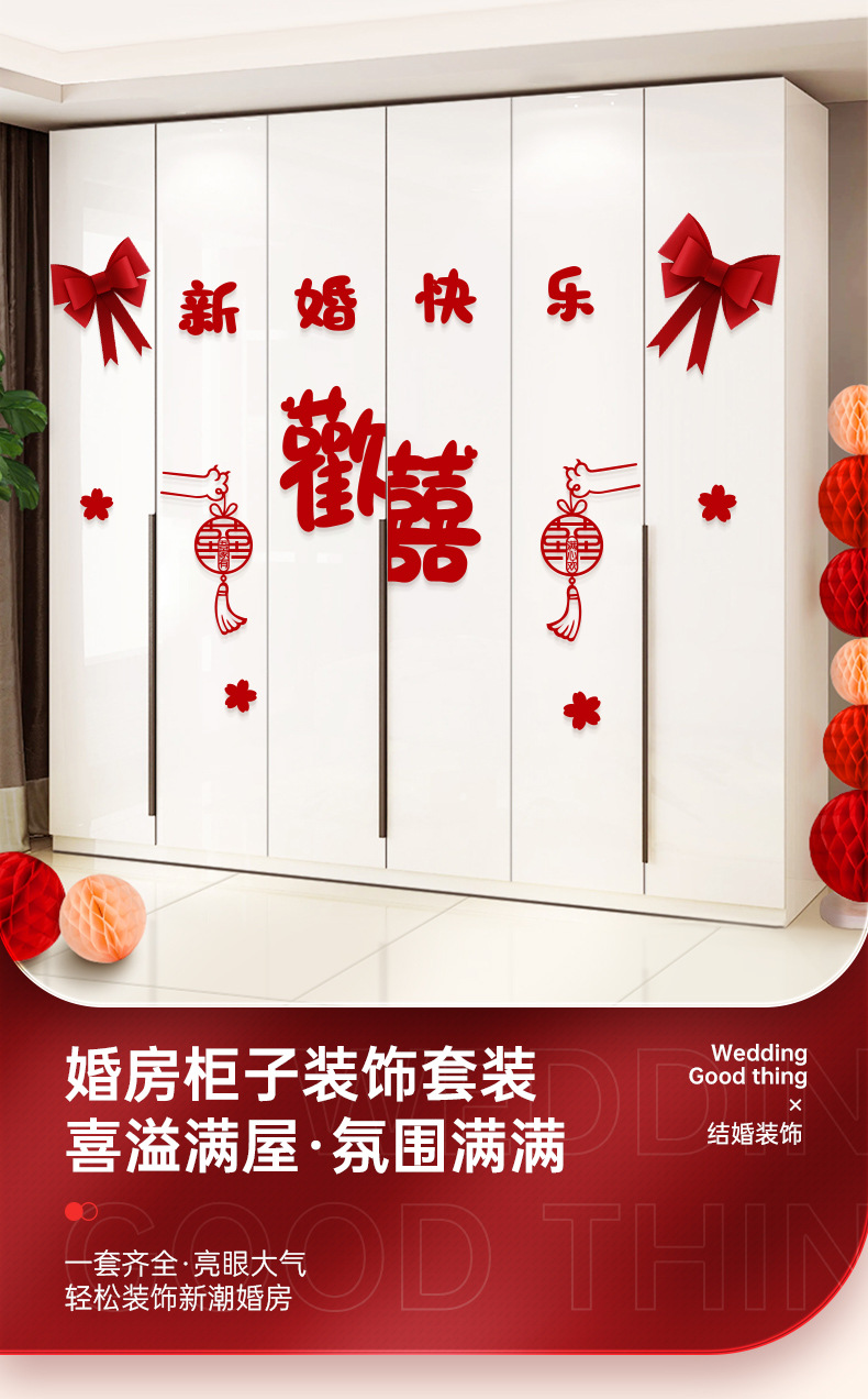 婚房布置套装男方新房客厅卧室衣柜装饰婚礼喜字贴纸结婚用品大全