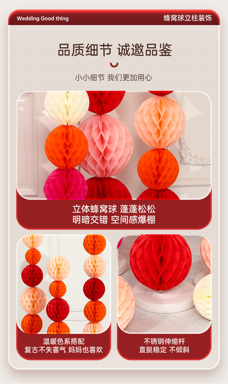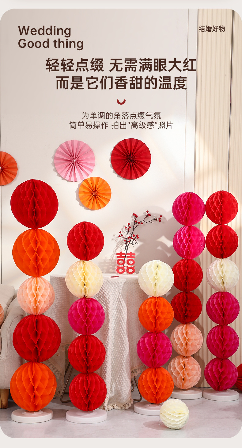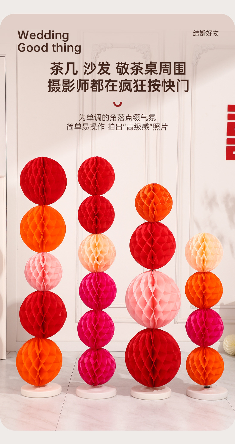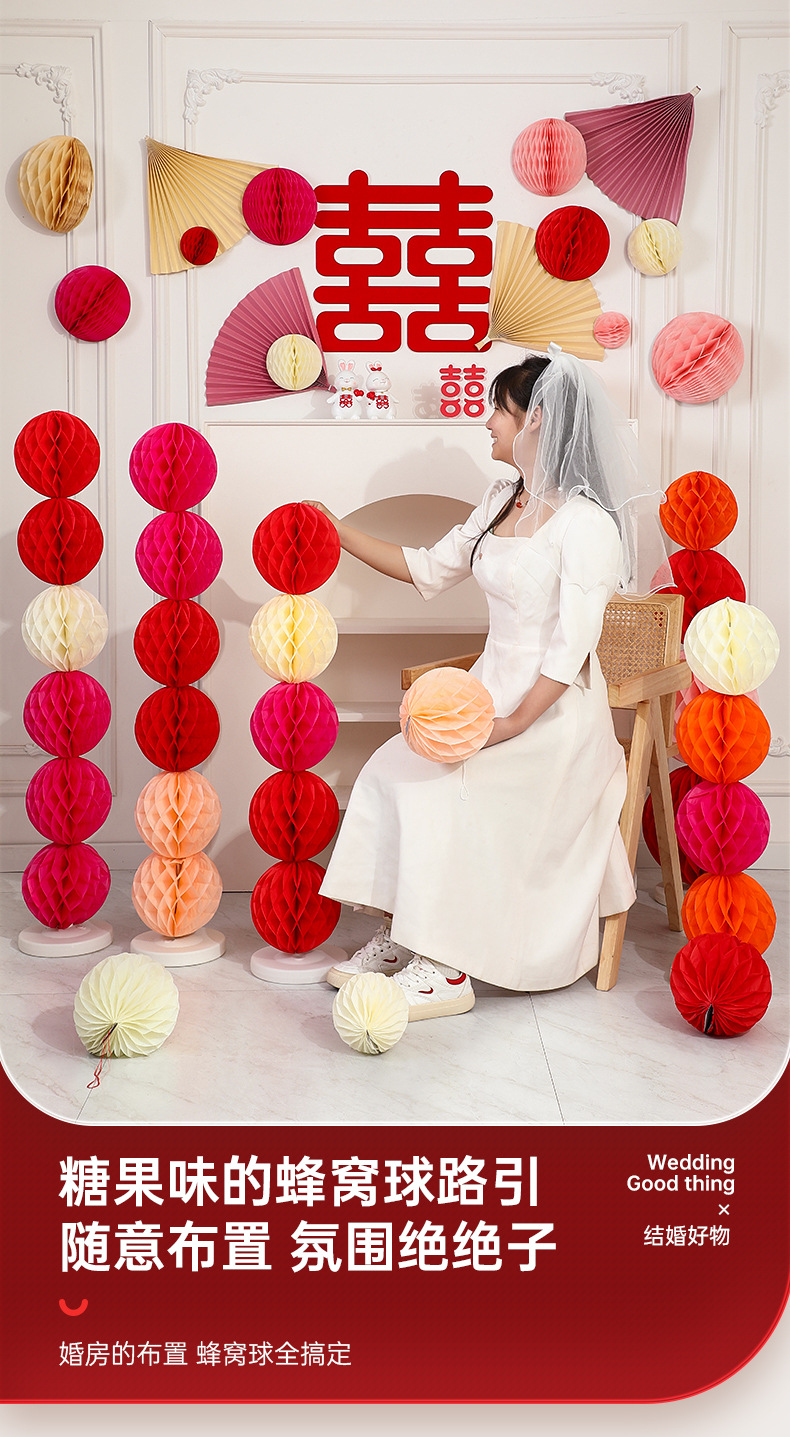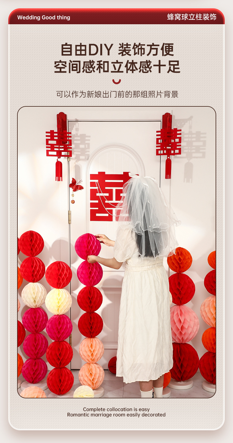 结婚蜂窝球立柱地飘装饰男女方婚礼房间卧室灯笼拉花婚房布置套装
