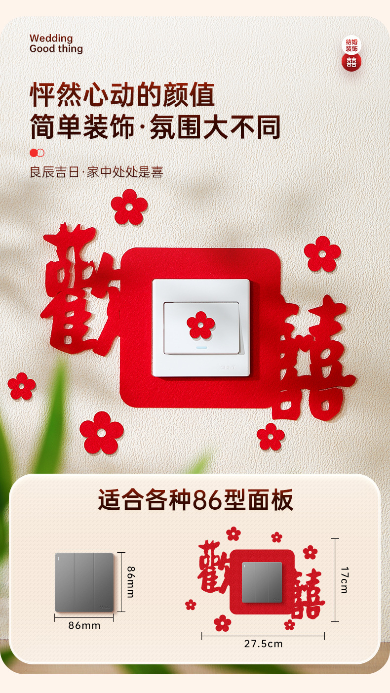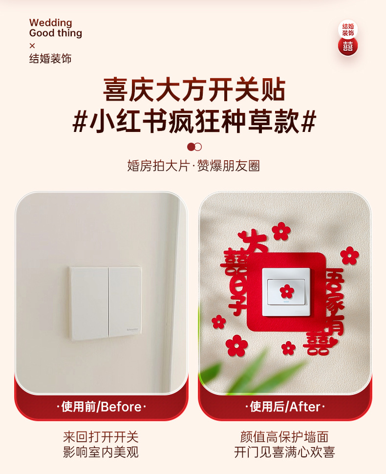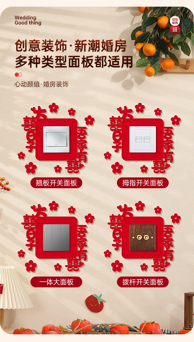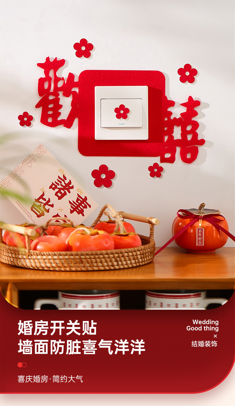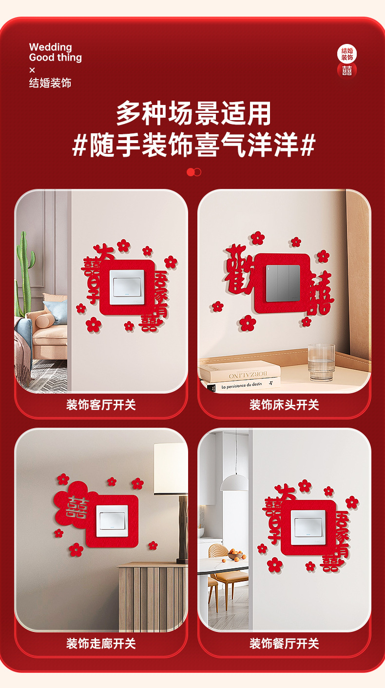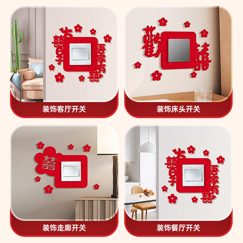 结婚开关贴批发插座装饰喜字贴客厅卧室婚礼婚房布置套装婚庆用品