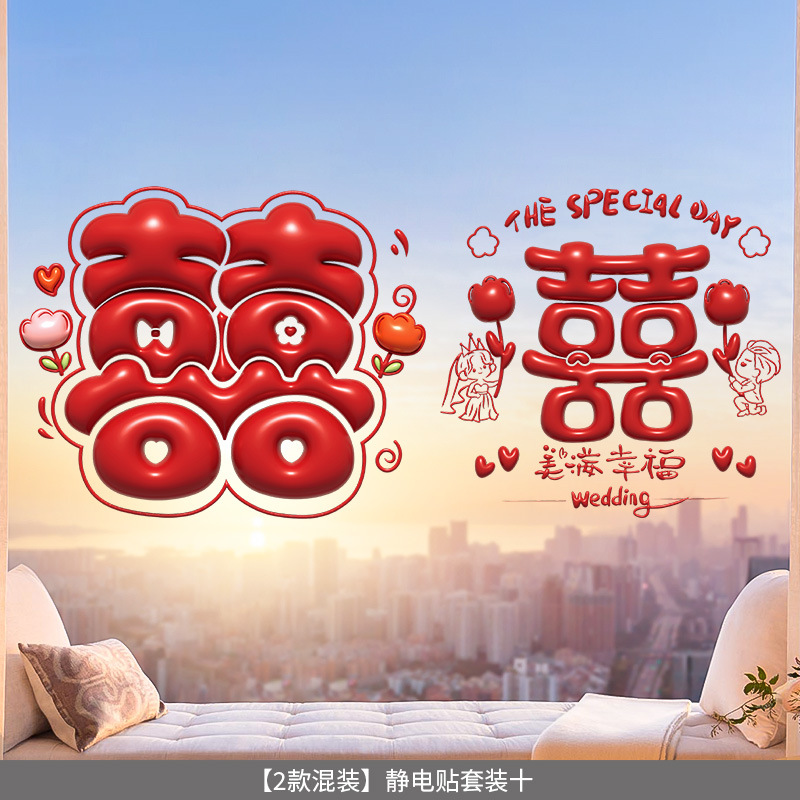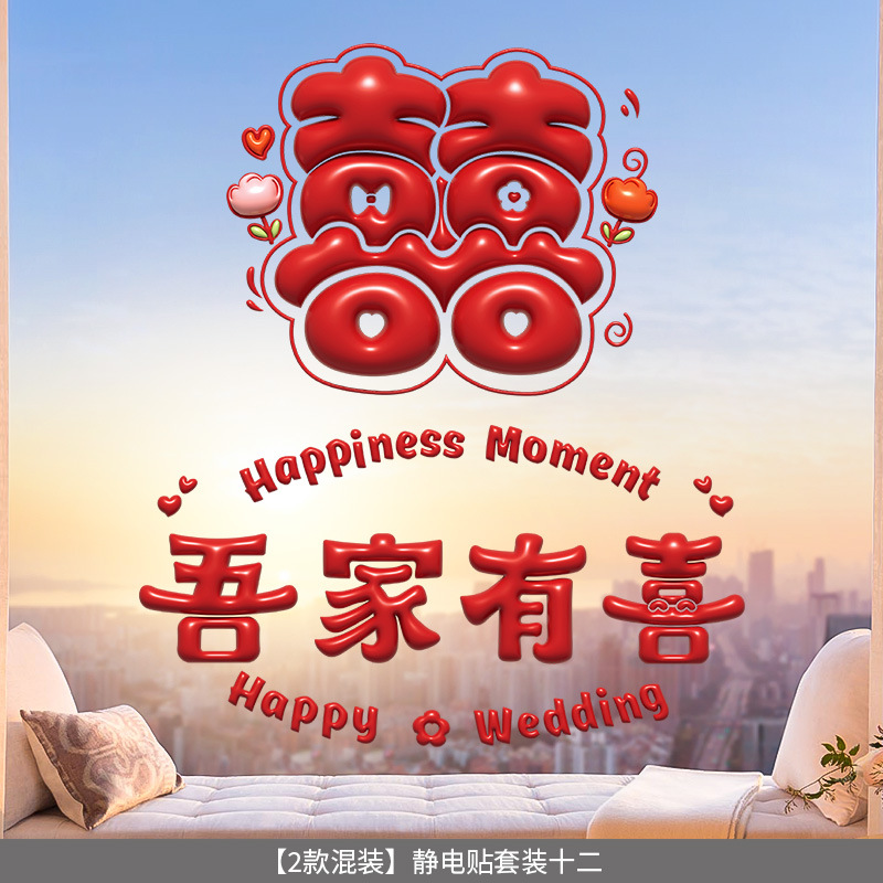 结婚静电贴喜字贴婚房布置套装婚礼窗户玻璃窗花贴纸装饰婚庆用品