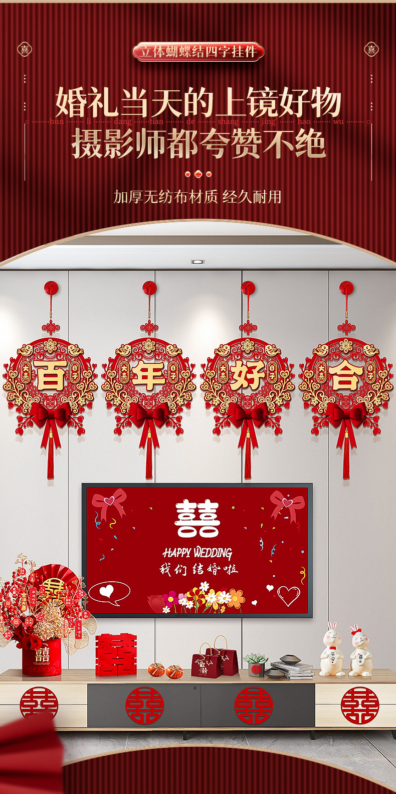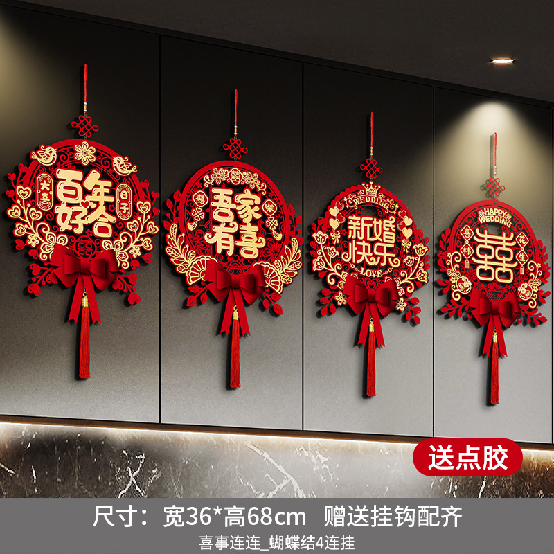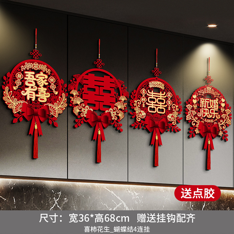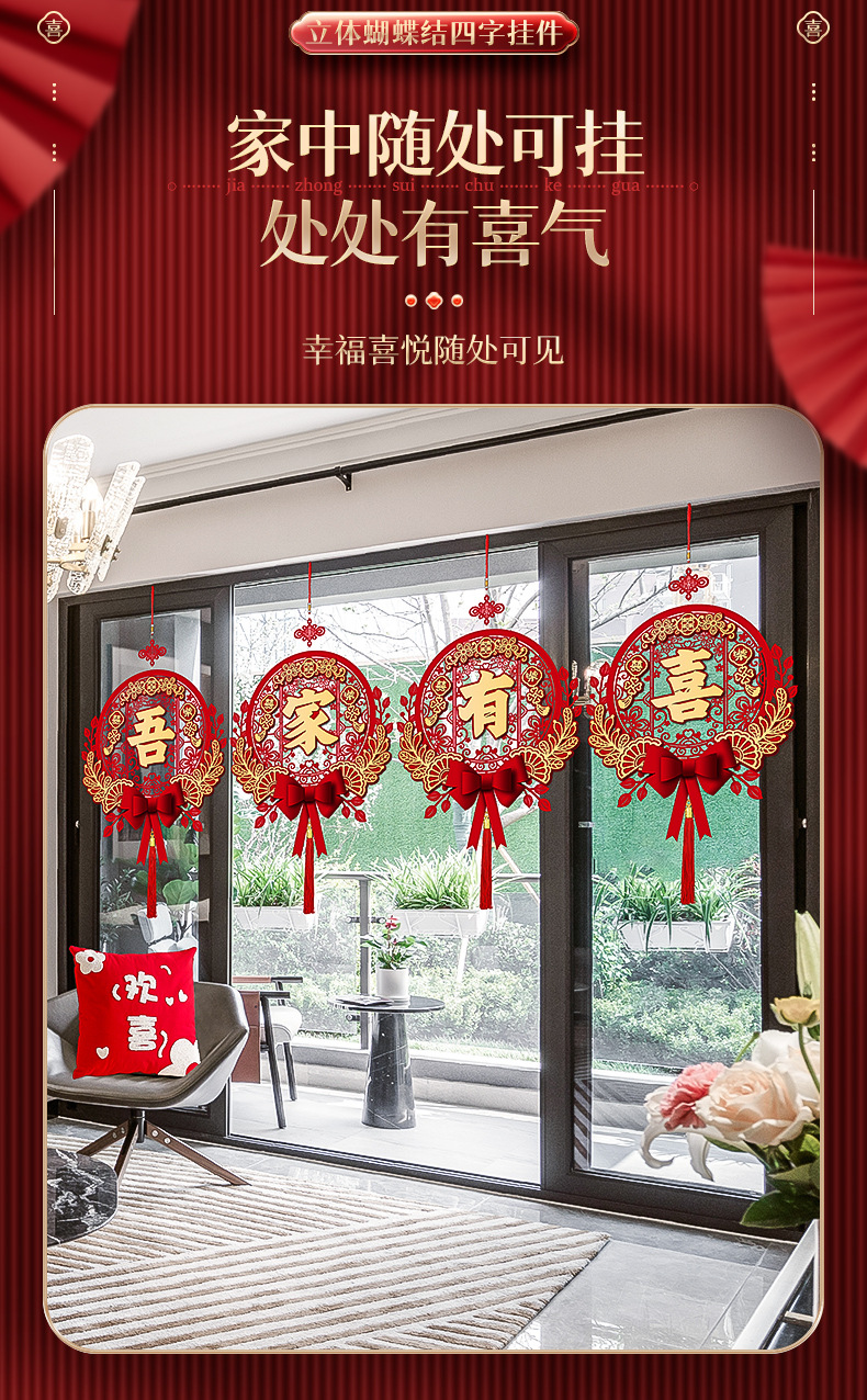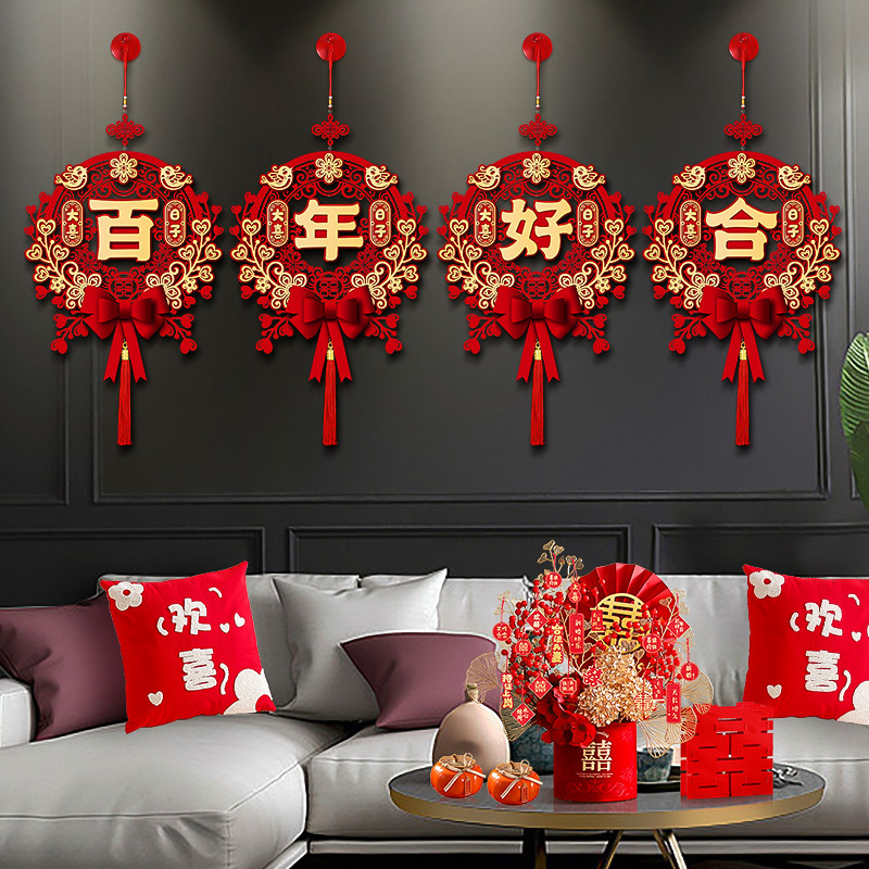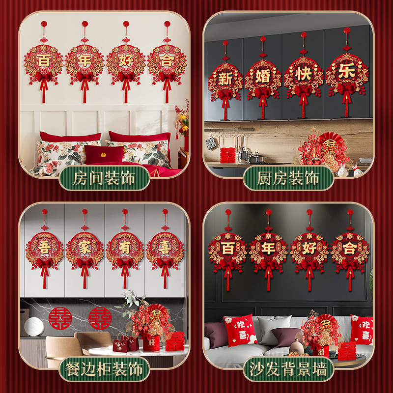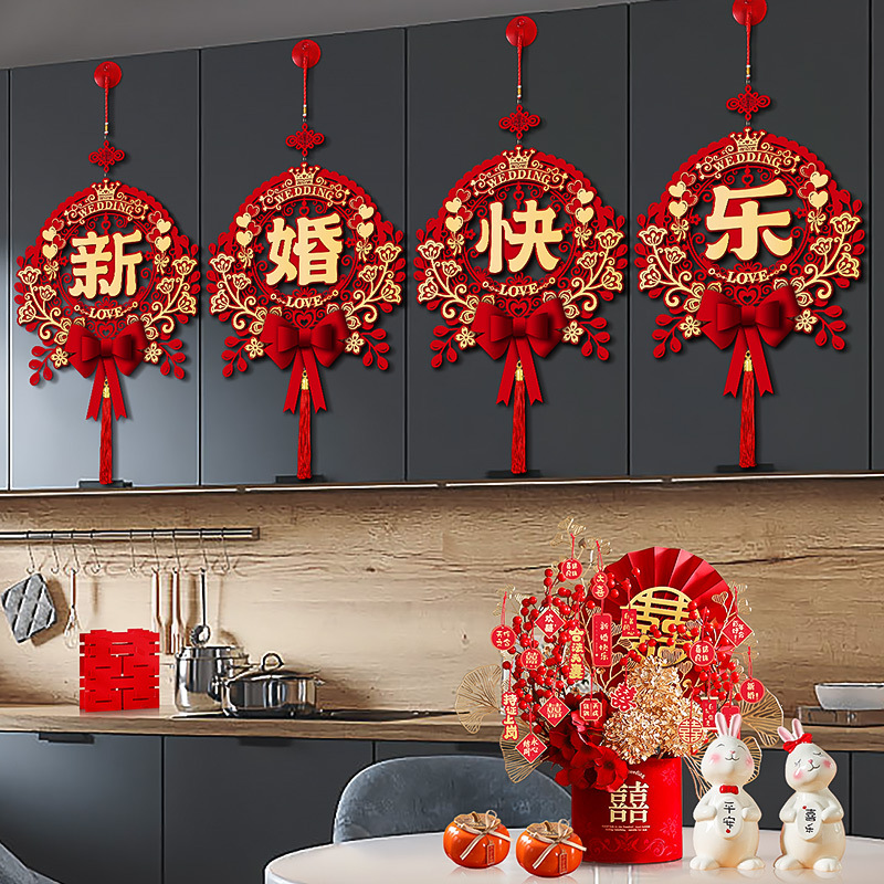 结婚喜字挂件婚房布置女方婚礼装饰男方新房客厅卧室拉花挂饰套装