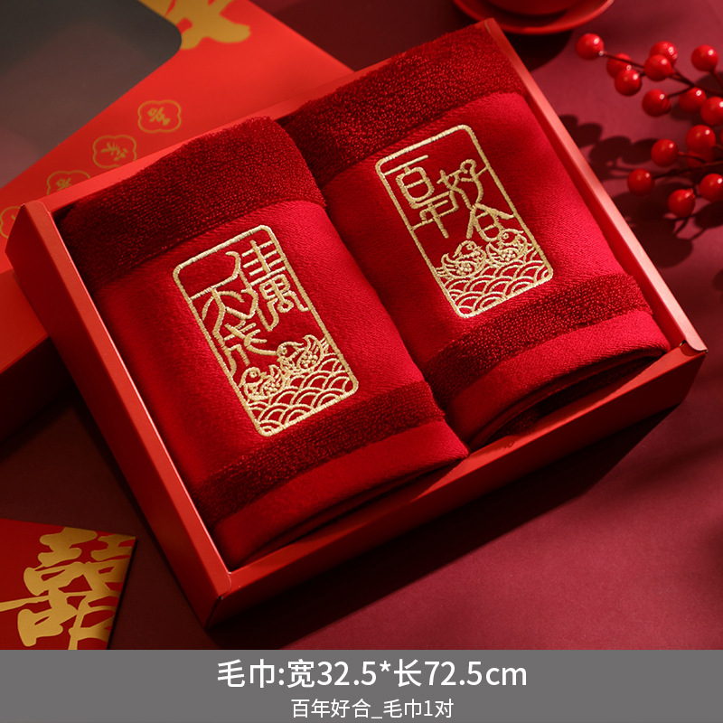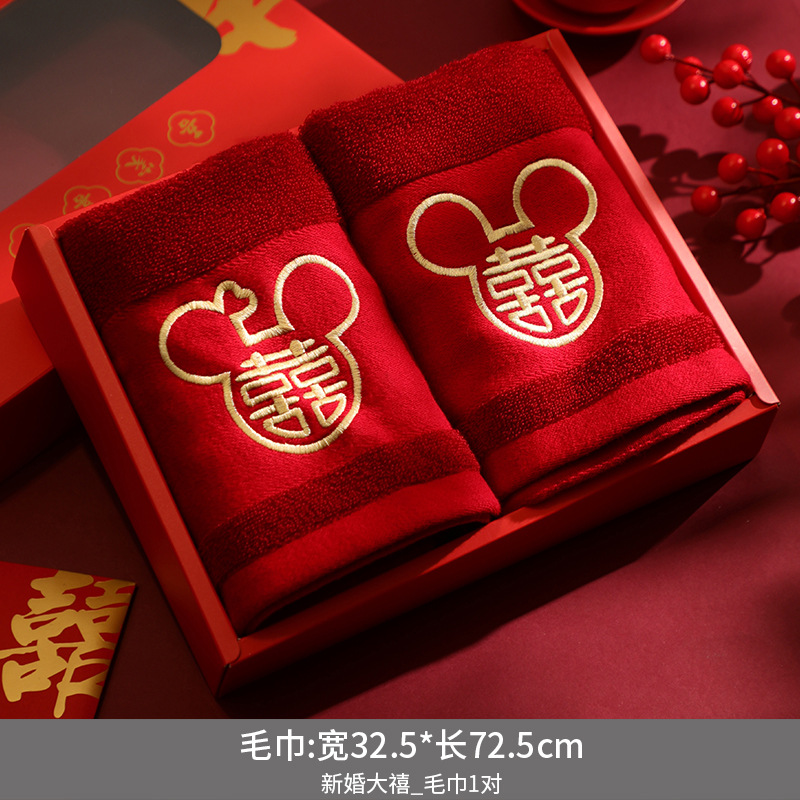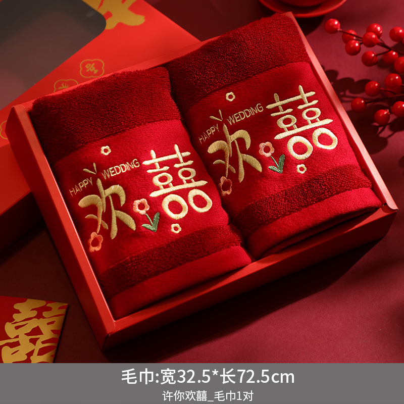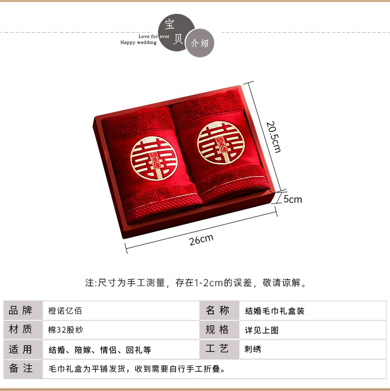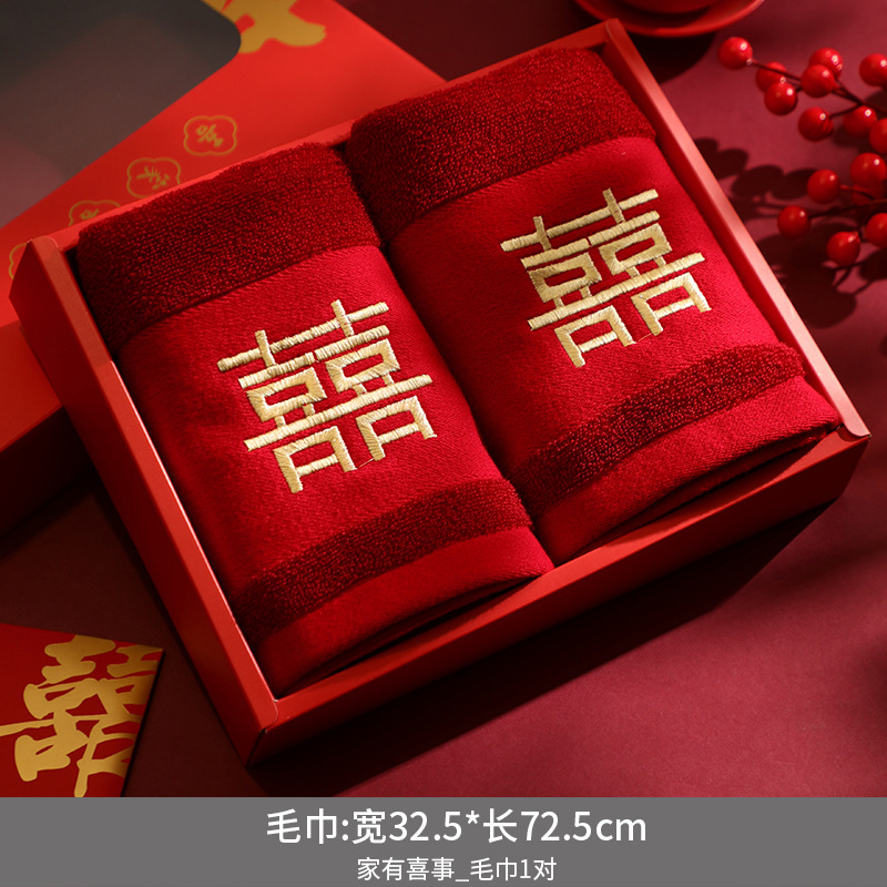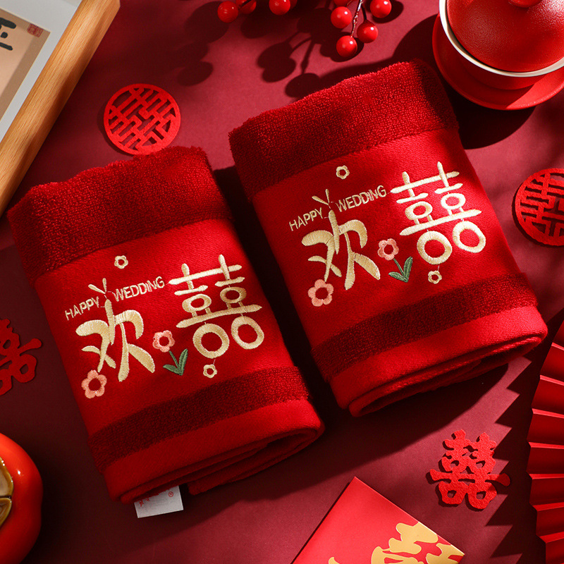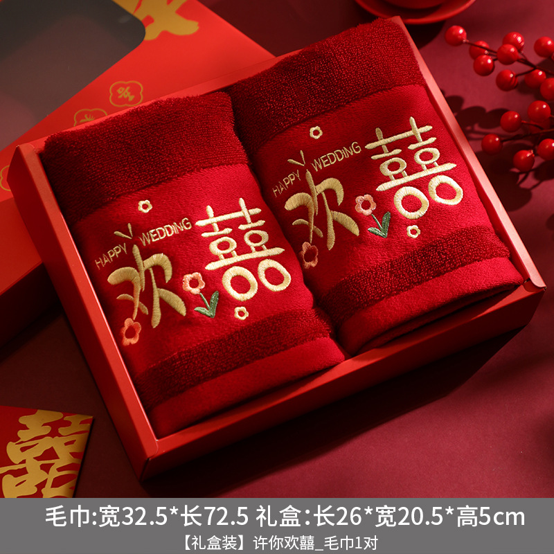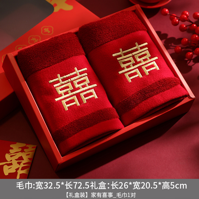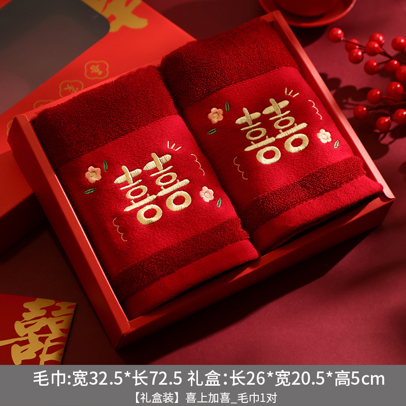 结婚红色毛巾一对婚庆喜纯棉伴手回礼新婚礼盒装婚礼陪嫁用品批发
