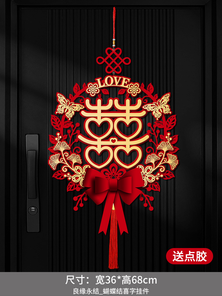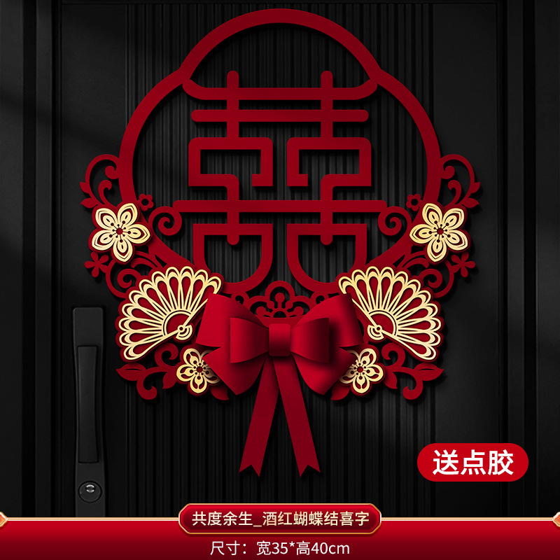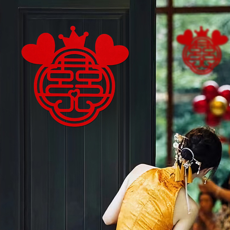 喜字贴批发结婚用品大门贴纸立体双囍字卧室门口装饰婚礼婚房布置