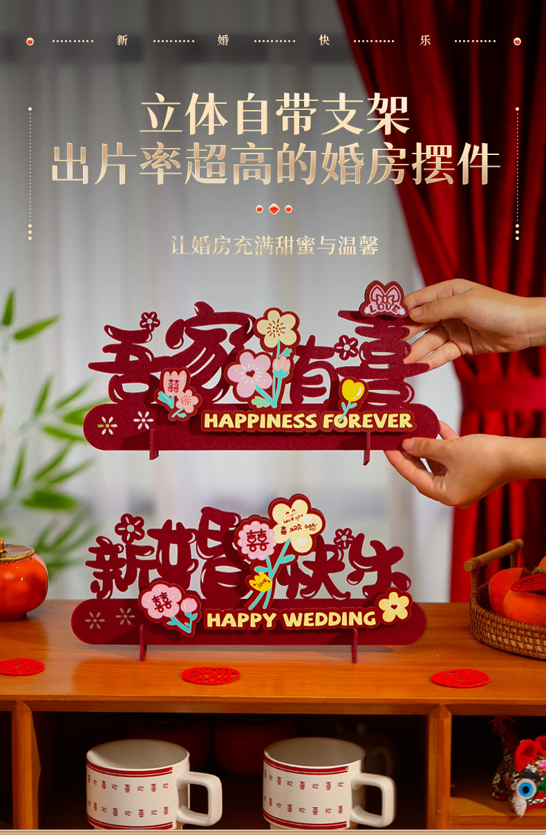 结婚喜字摆件女方新房卧室客厅订婚装饰婚房布置套装婚庆用品大全