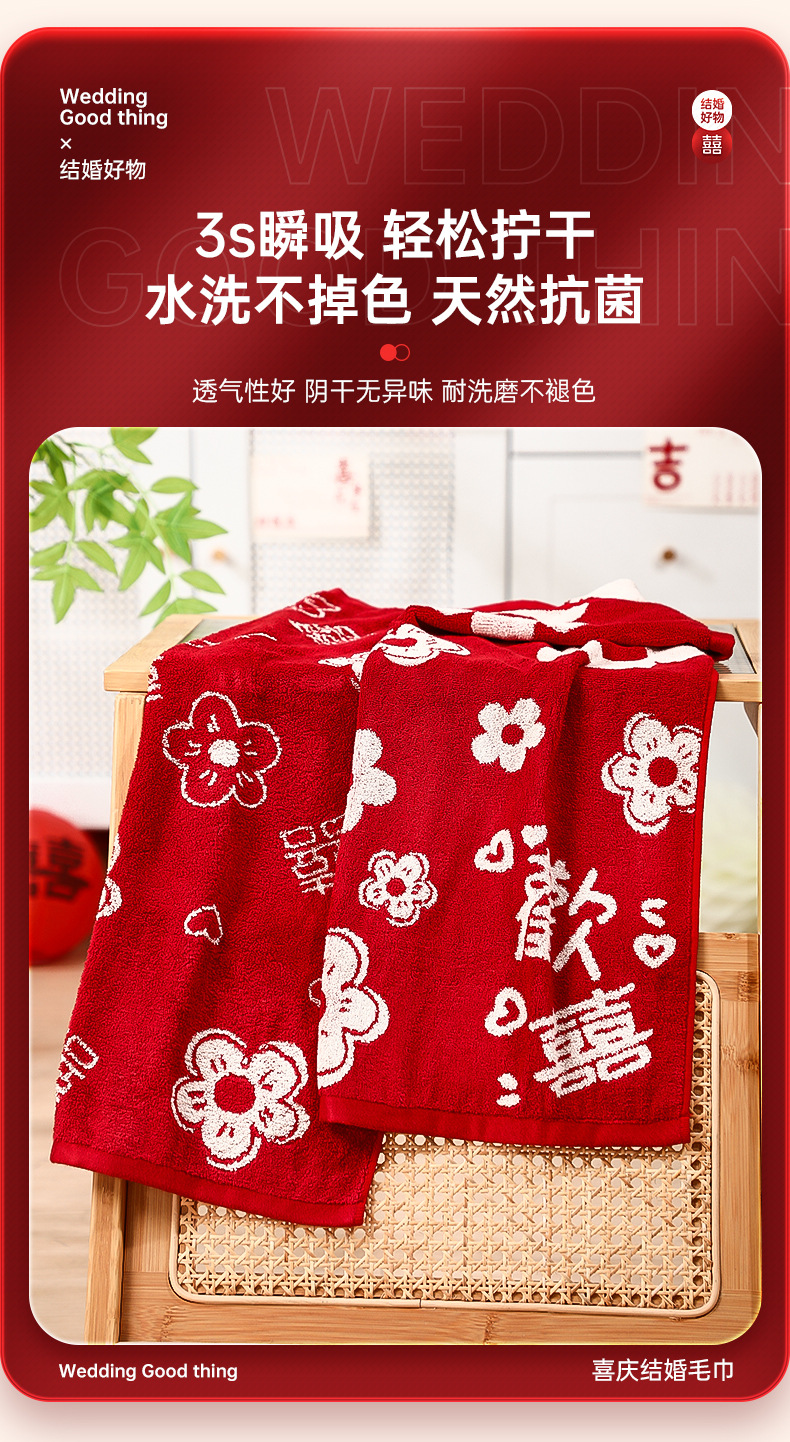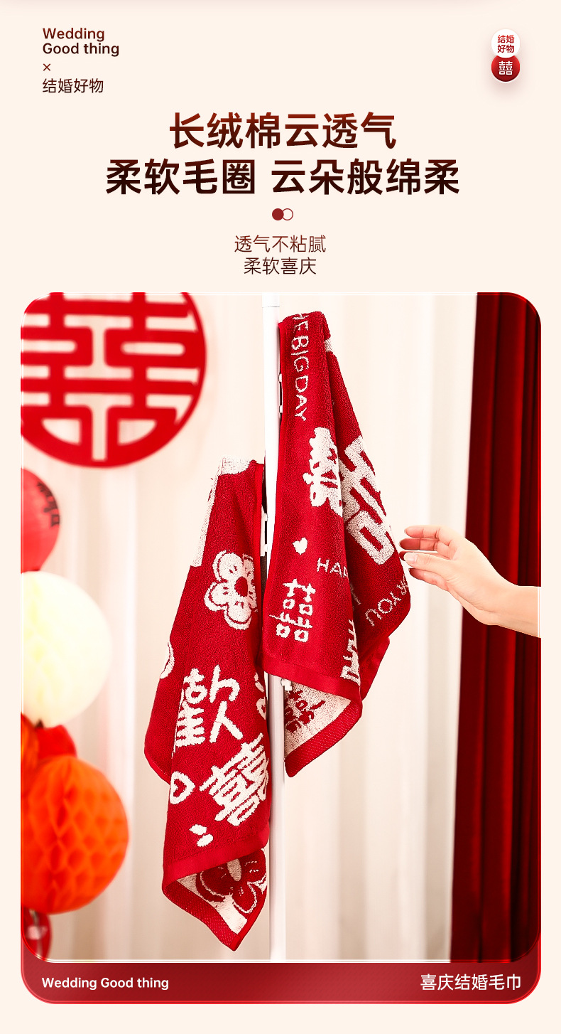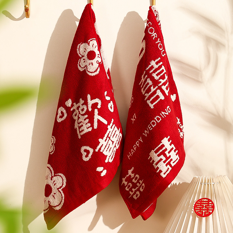 结婚红色喜毛巾婚庆纯棉一对回礼新婚礼物送新人婚礼陪嫁用品批发