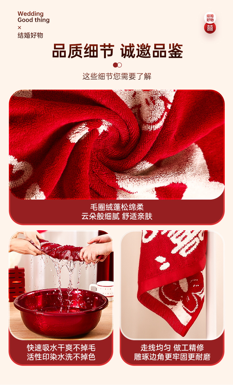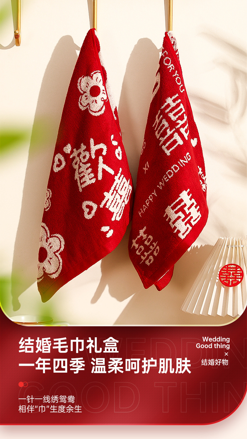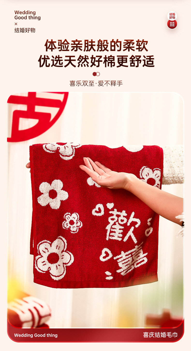 结婚红色喜毛巾婚庆纯棉一对回礼新婚礼物送新人婚礼陪嫁用品批发