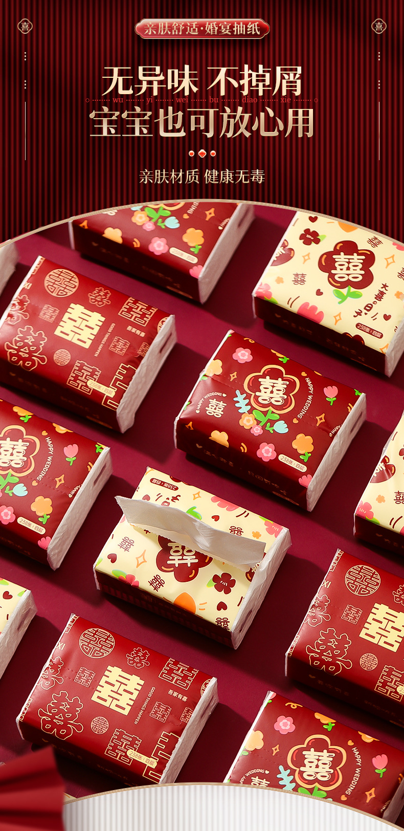 结婚订婚婚宴餐巾纸婚礼整箱抽纸酒席喜庆专用纸巾婚庆用品大全