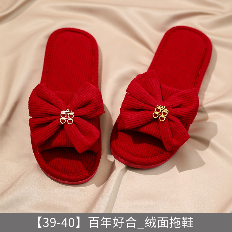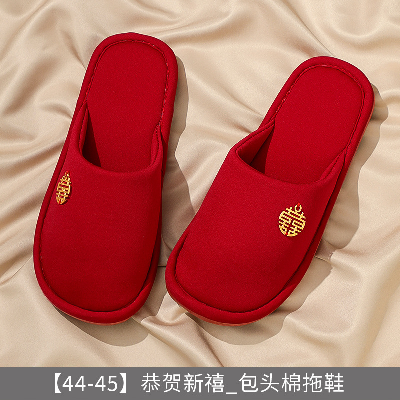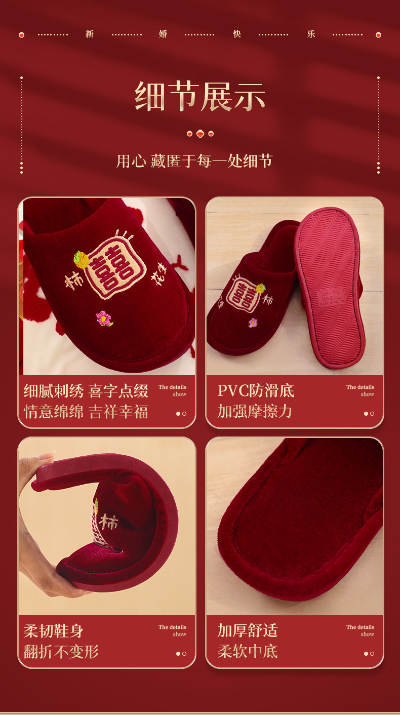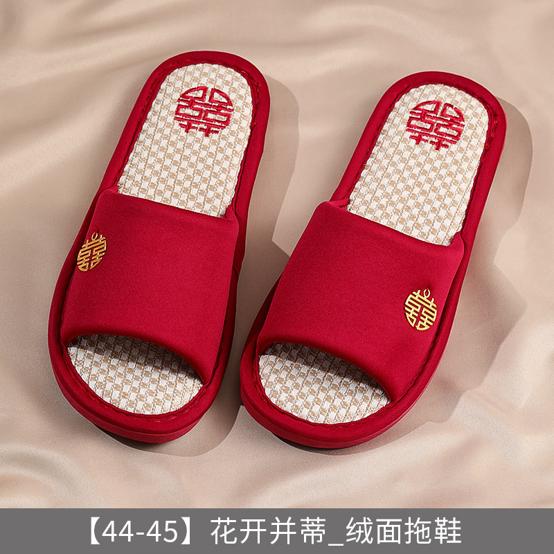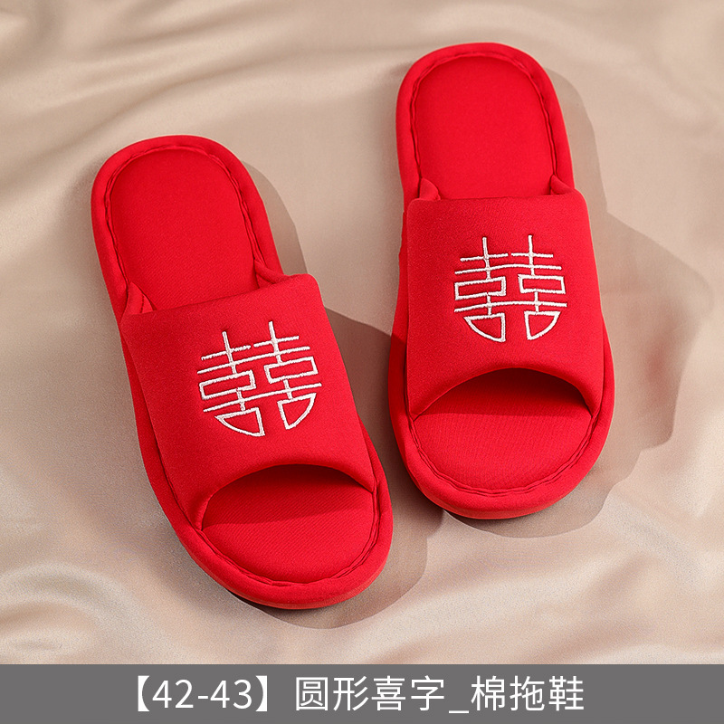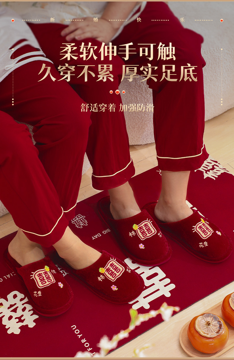 结婚拖鞋新婚女方陪嫁婚礼高级感喜庆红色一对情侣鞋婚庆用品大全