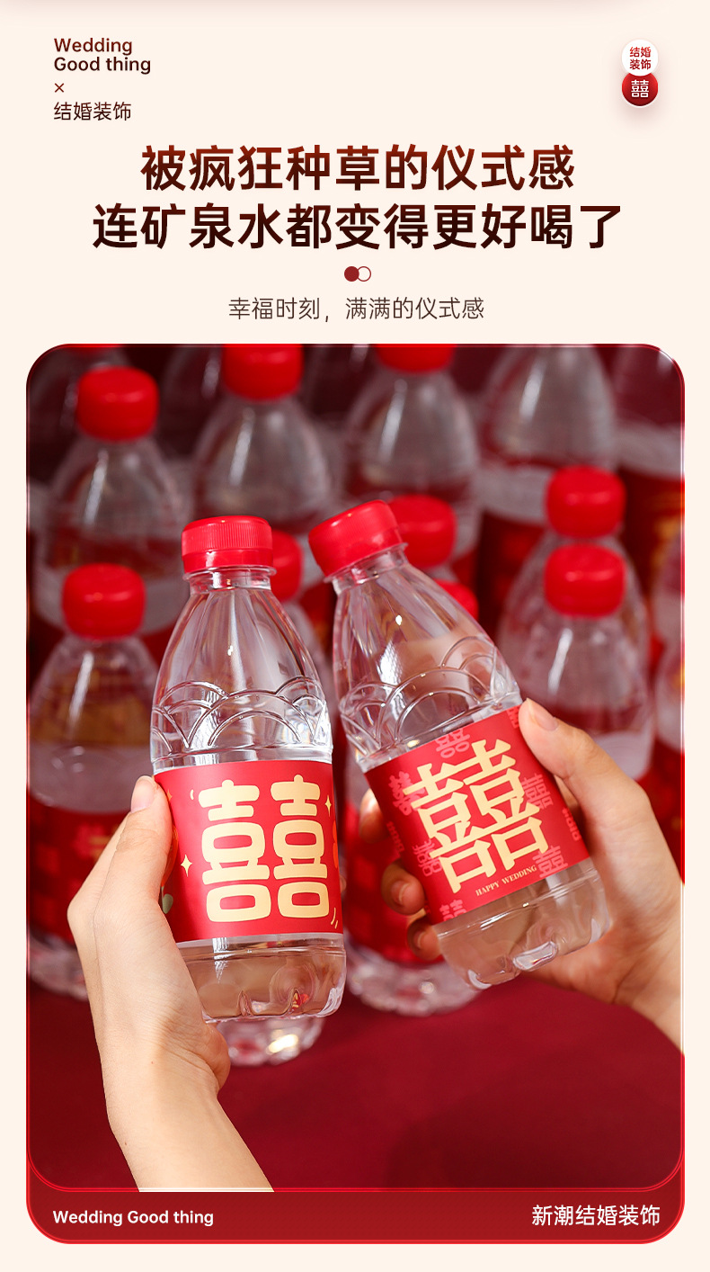 结婚矿泉水贴纸订婚囍字不干胶标签婚礼装饰喜字水瓶婚庆用品大全