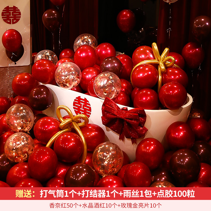 结婚气球装饰场景布置网红色卧室汽球婚房套装订婚礼婚庆用品大全