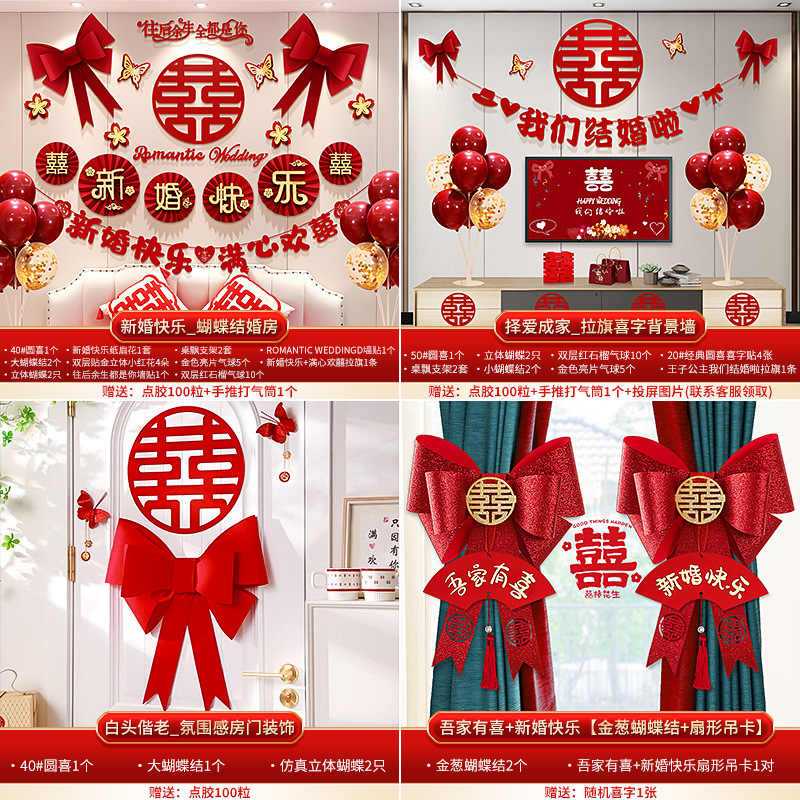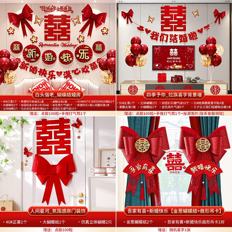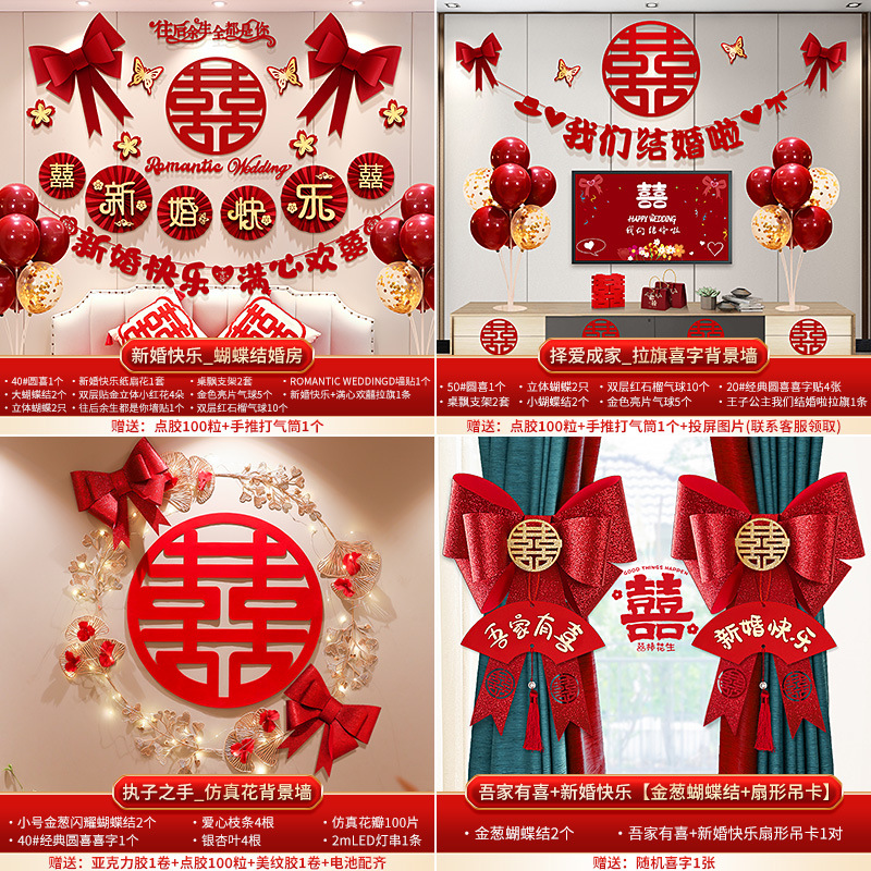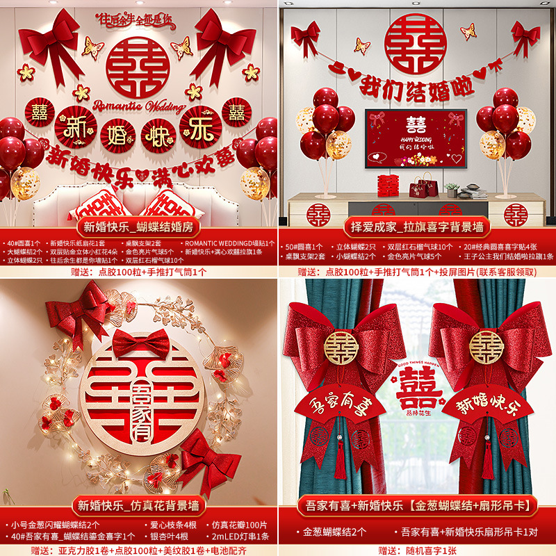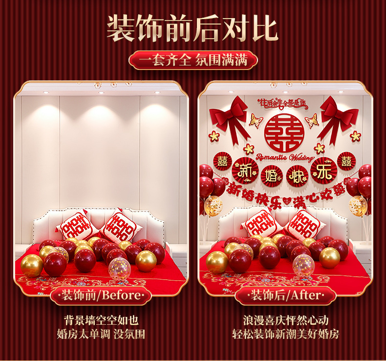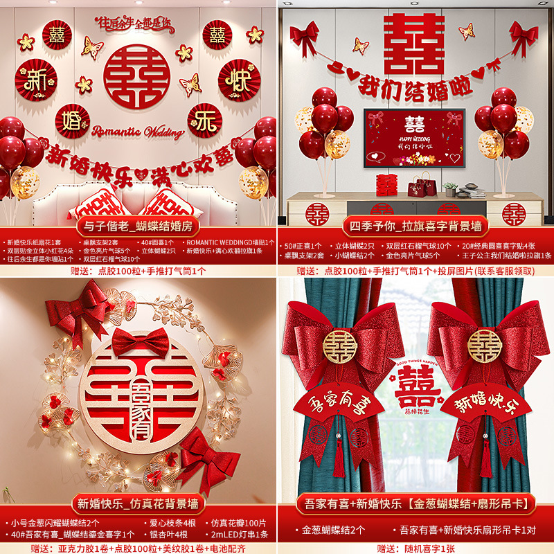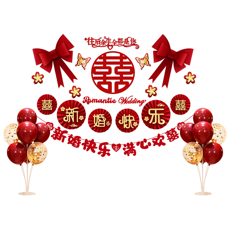婚房布置套装结婚拉花男方女方卧室房间背景婚礼装饰婚庆用品批发