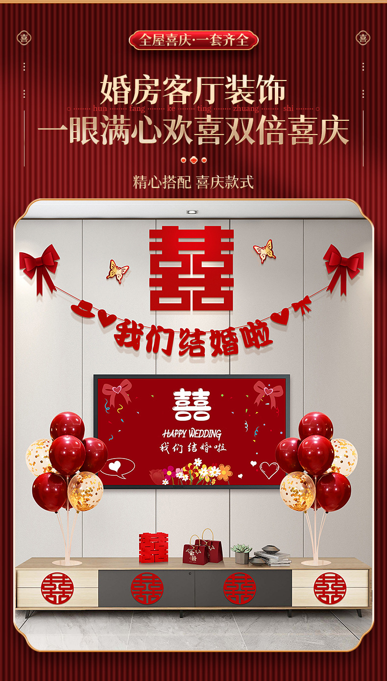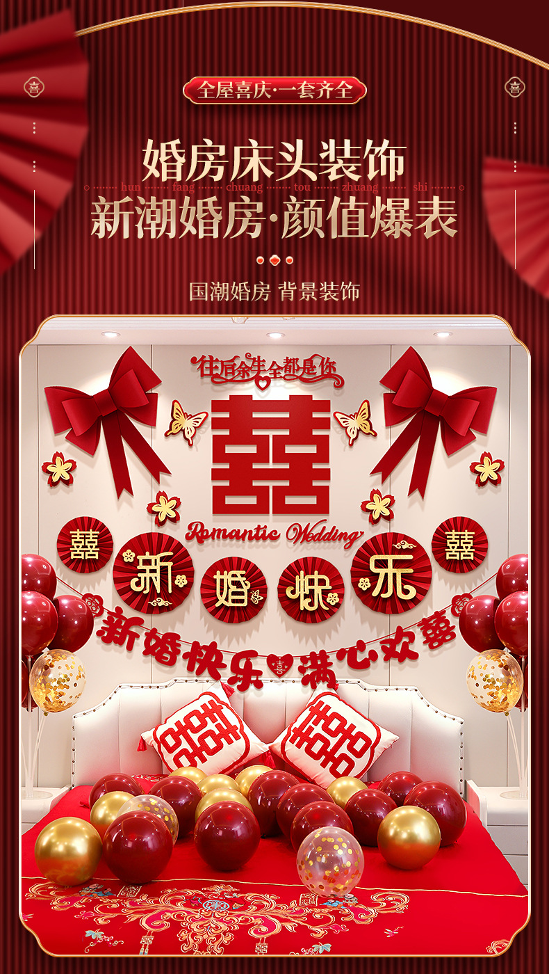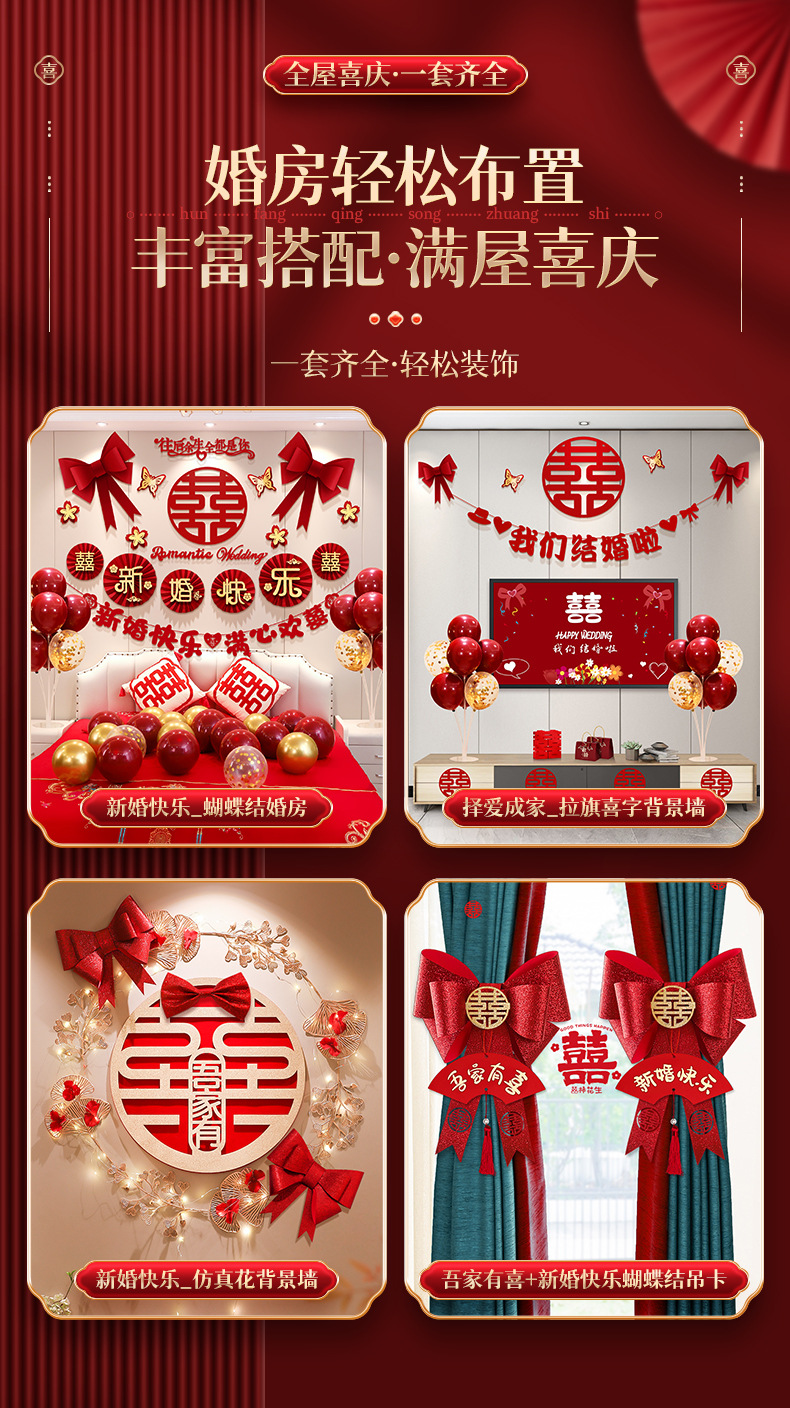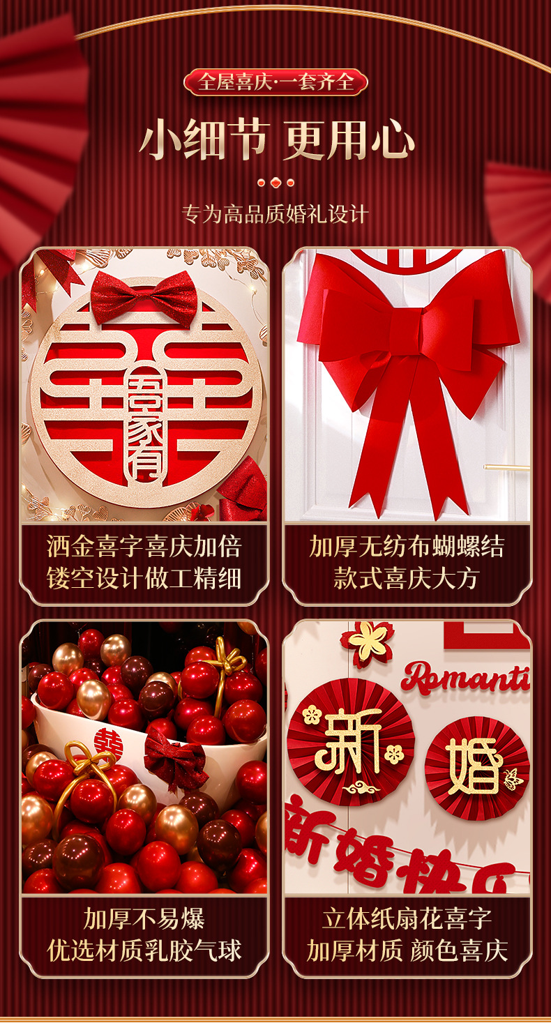 婚房布置套装结婚拉花男方女方卧室房间背景婚礼装饰婚庆用品批发