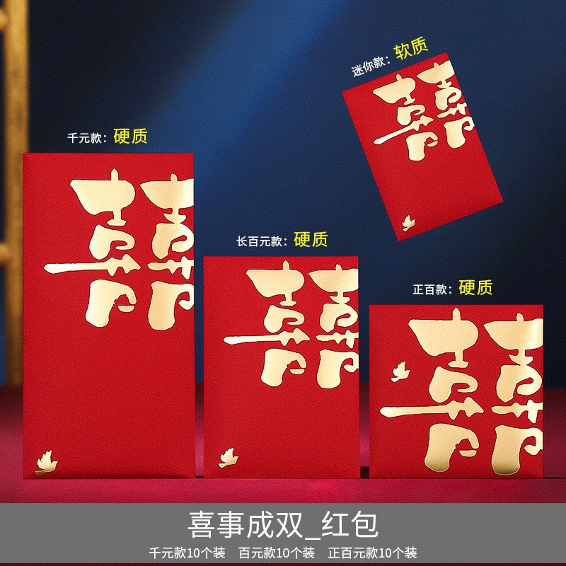 结婚喜字红包封2023新款磨砂改口接亲利是封婚礼婚庆创意大红包袋