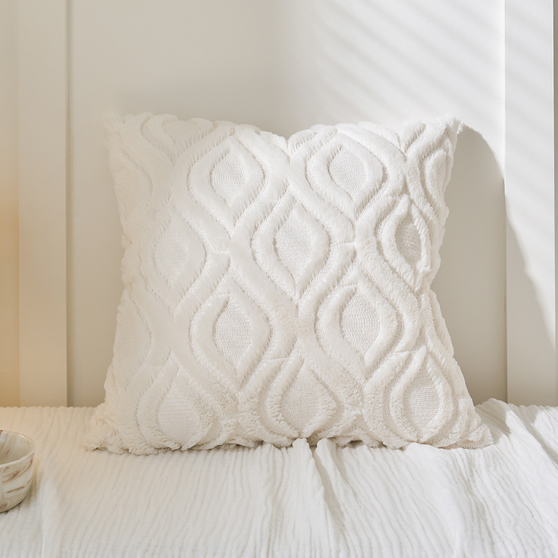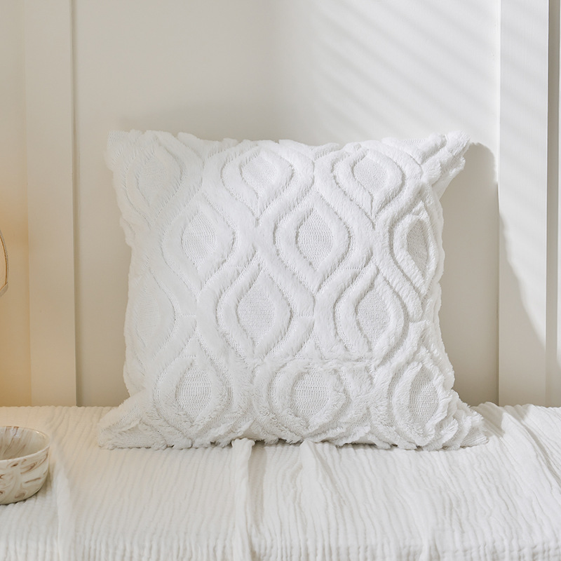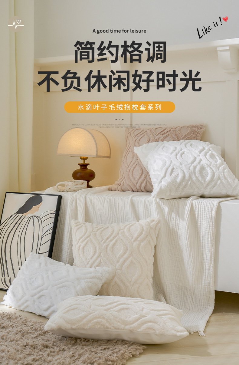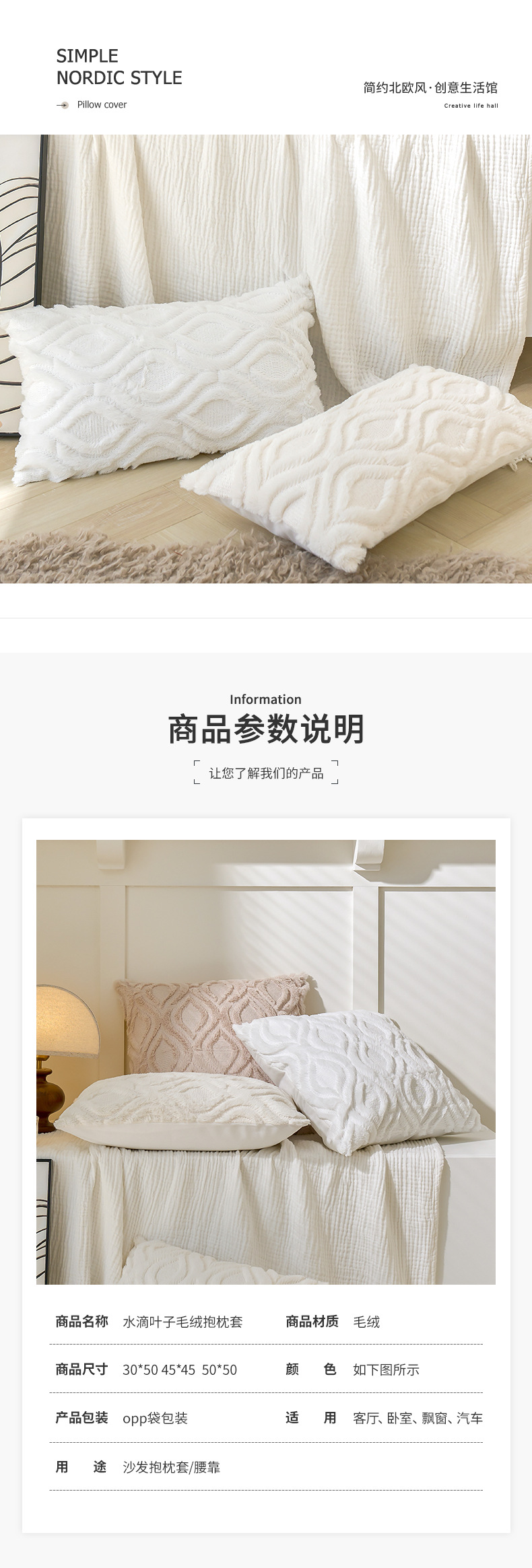 2025新款水滴叶子毛绒刺绣抱枕靠枕靠垫套一件代发简约北欧抱枕套