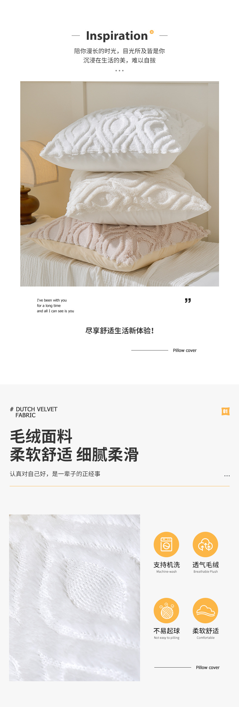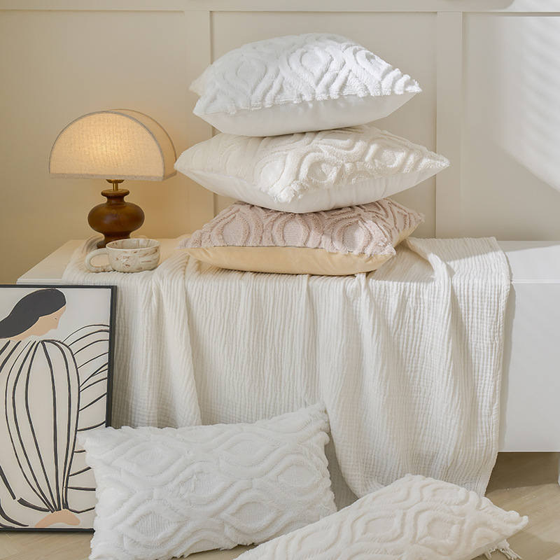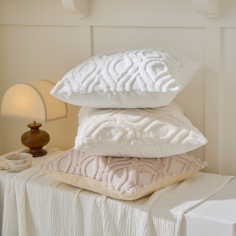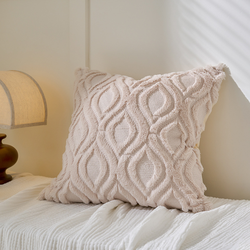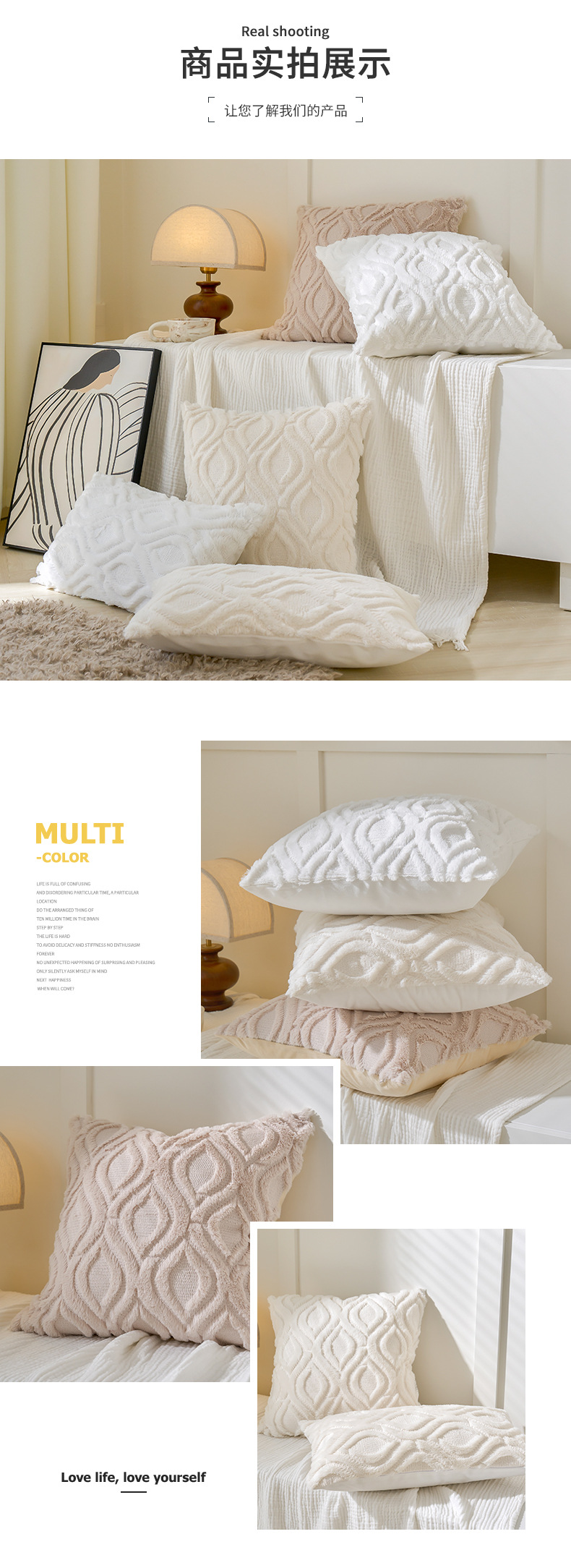 2025新款水滴叶子毛绒刺绣抱枕靠枕靠垫套一件代发简约北欧抱枕套