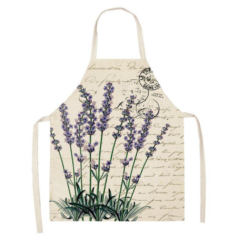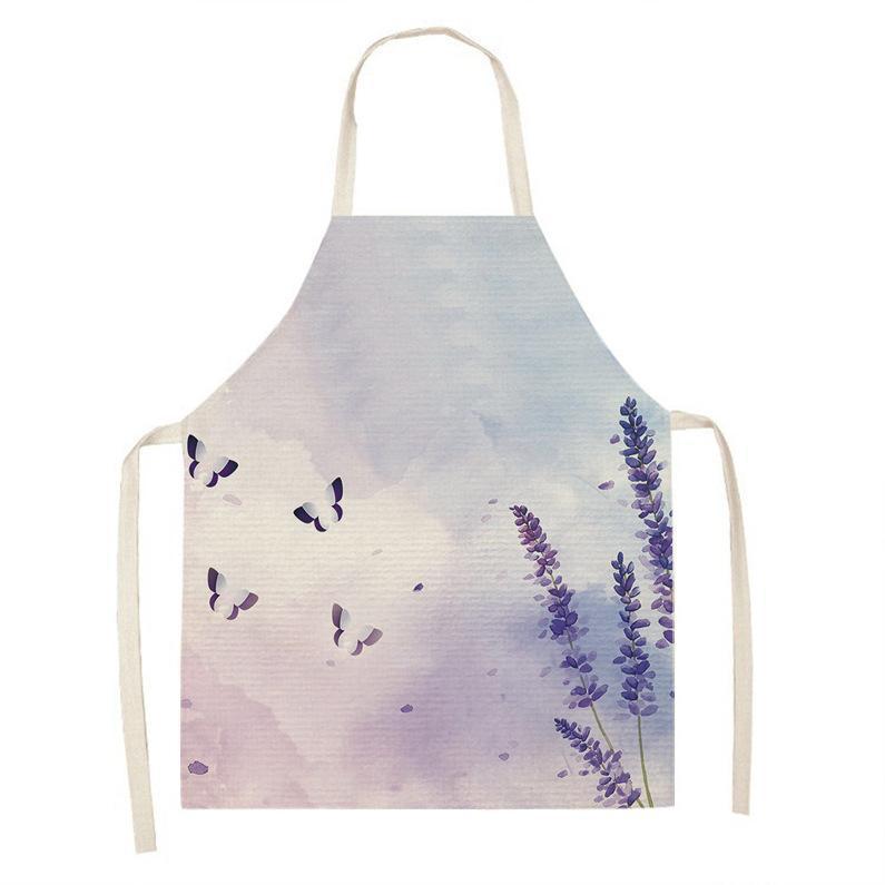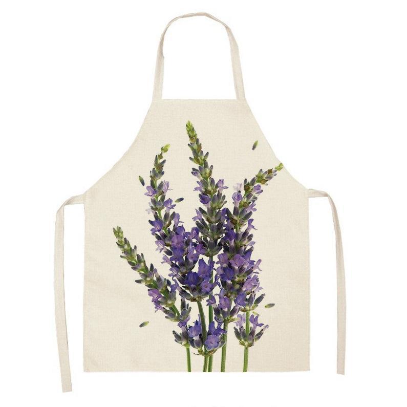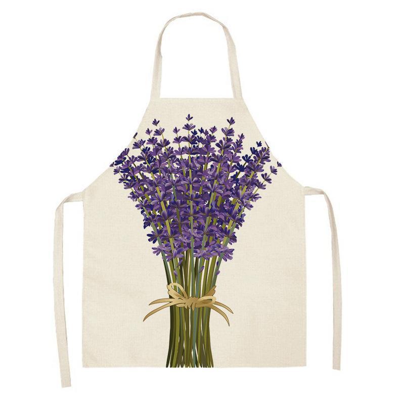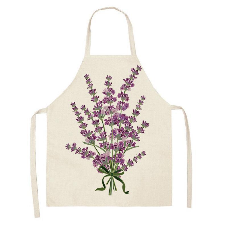 亚马逊创意紫色薰衣草花束简约清新亚麻围裙批发家用厨房防油围裙