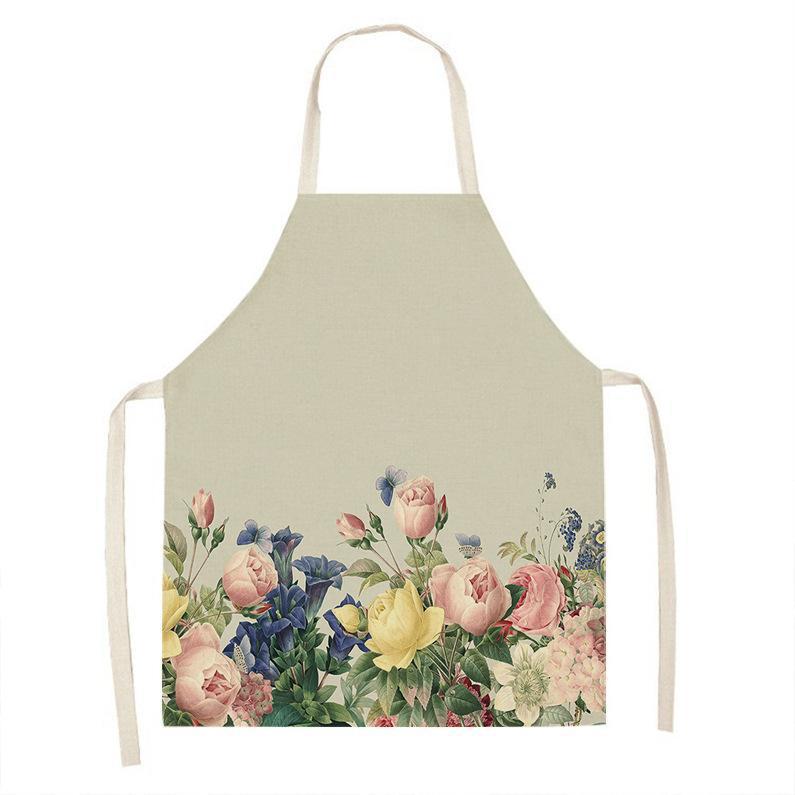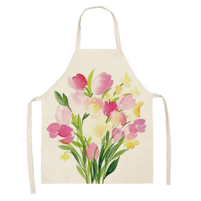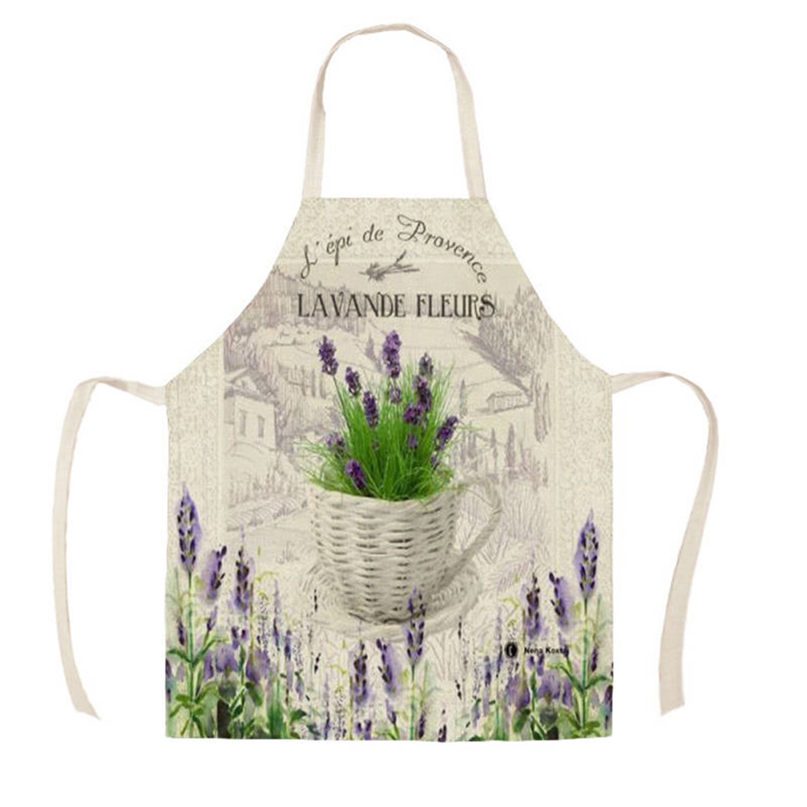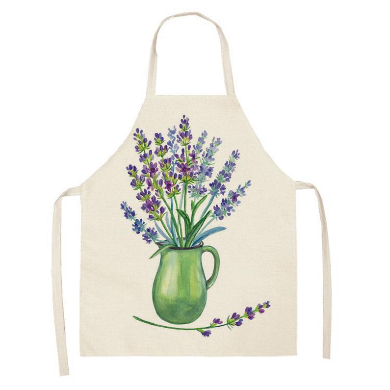 亚马逊创意紫色薰衣草花束简约清新亚麻围裙批发家用厨房防油围裙
