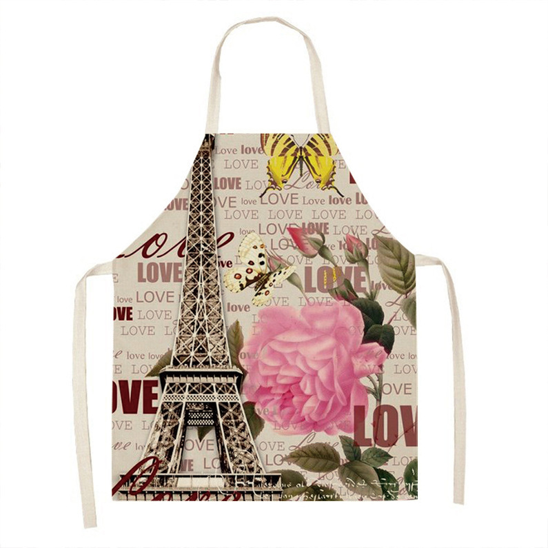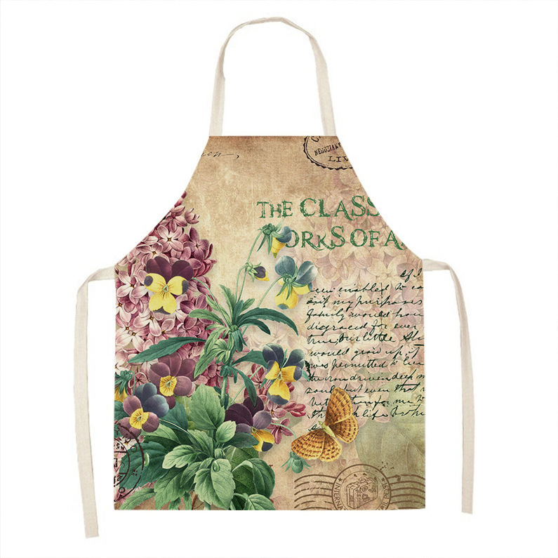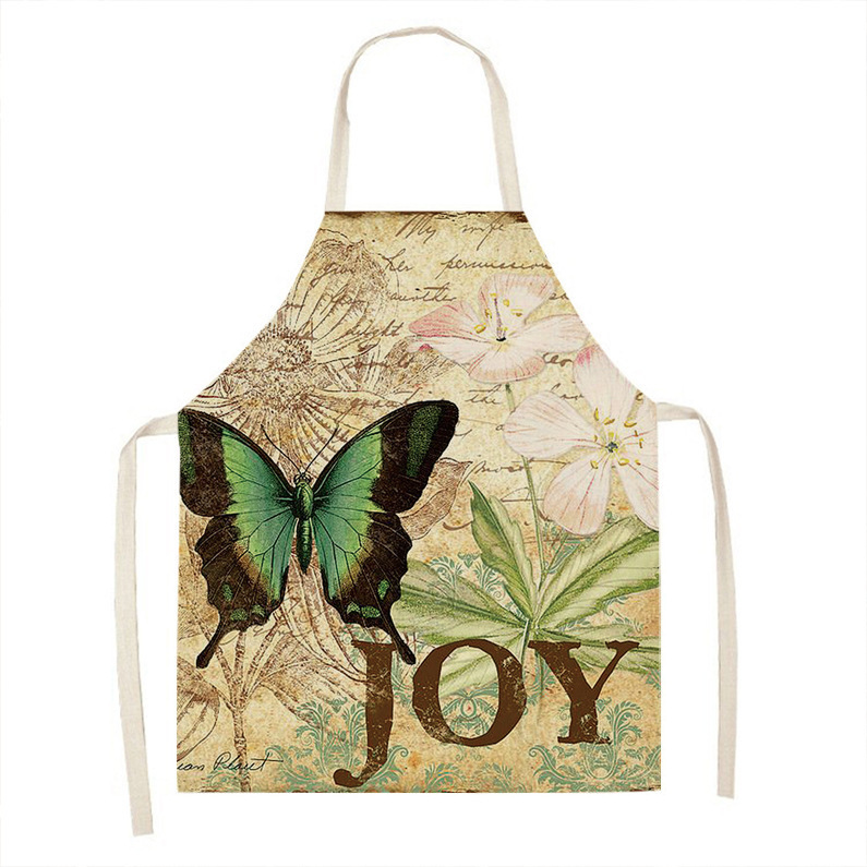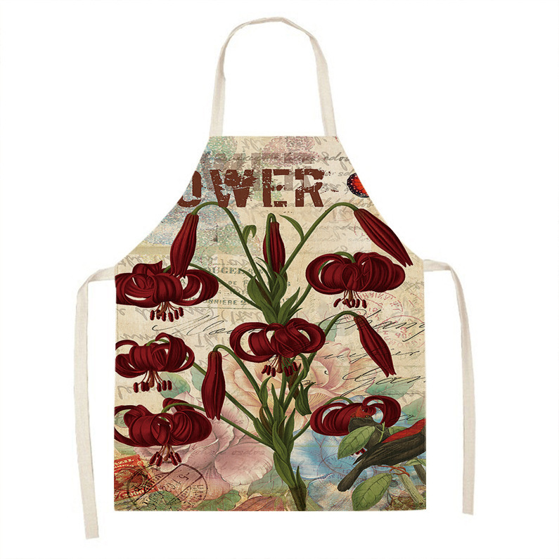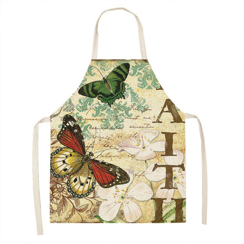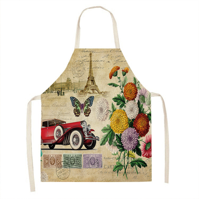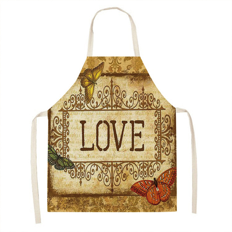 复古美式蝴蝶花束亚麻围裙跨境创意新款布艺围裙Love亲子围裙批发