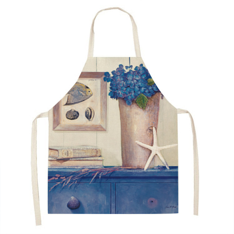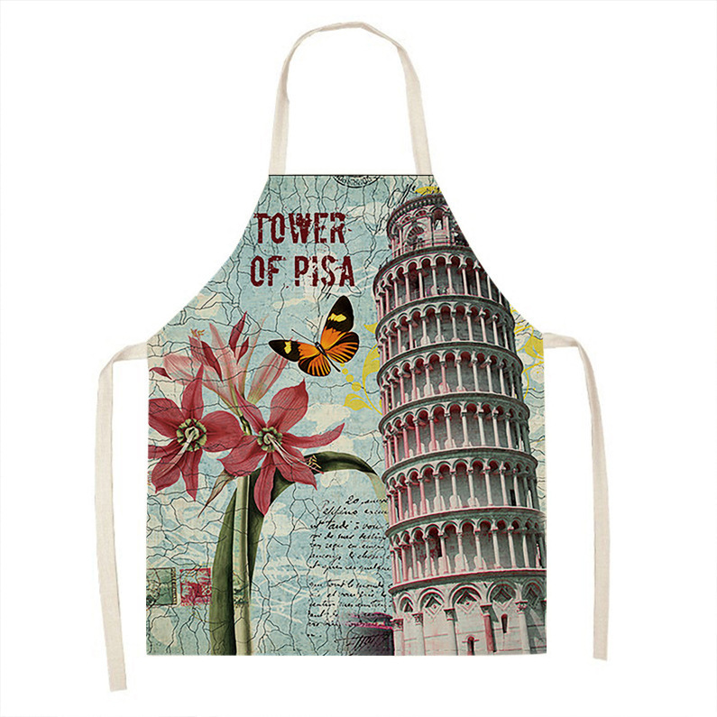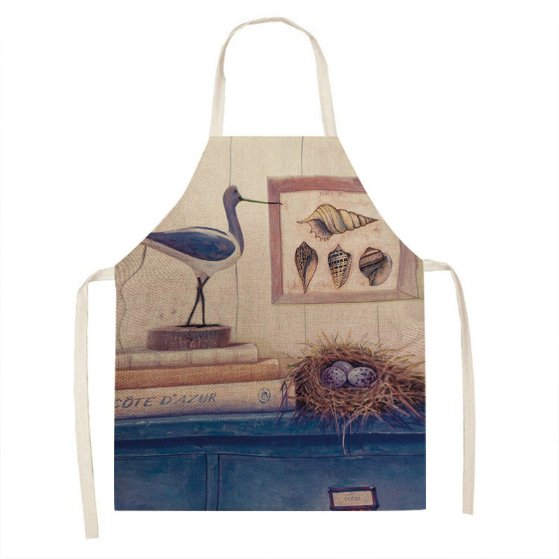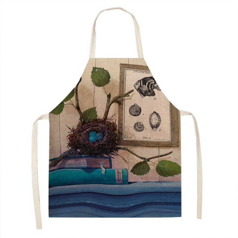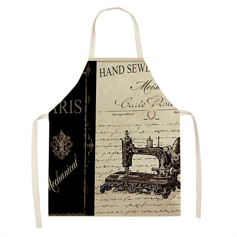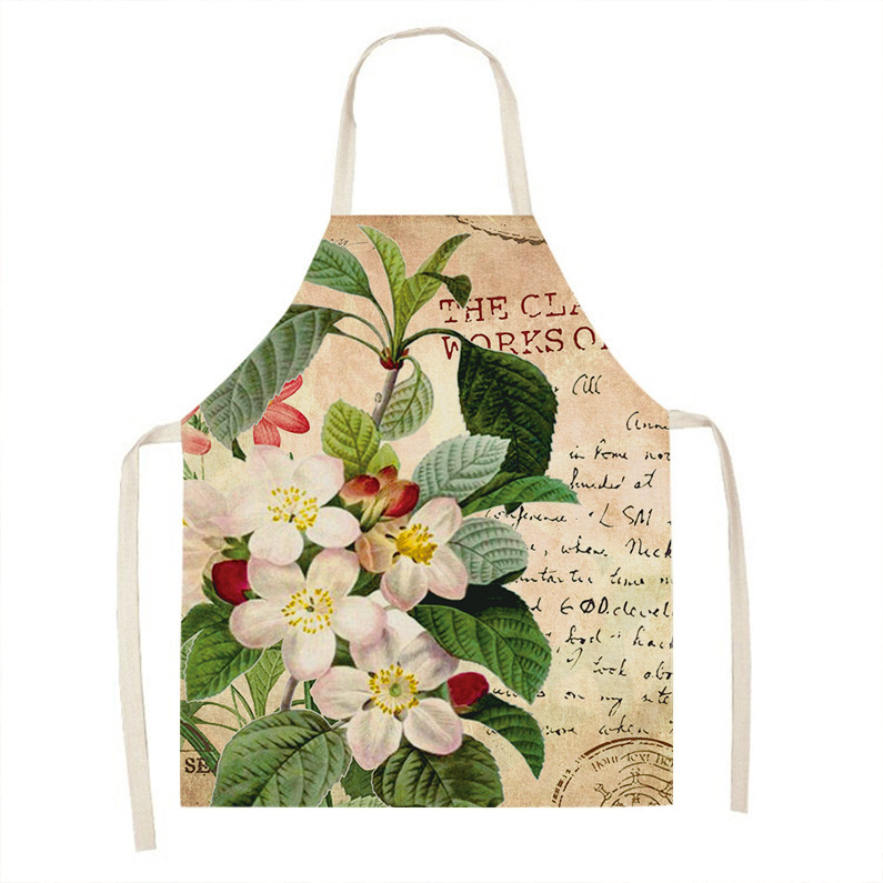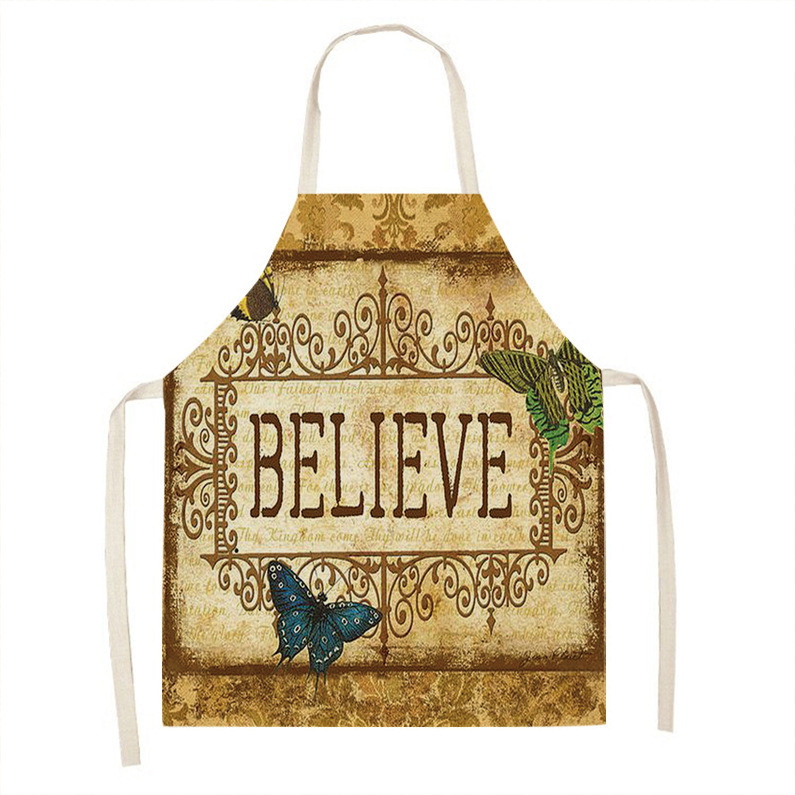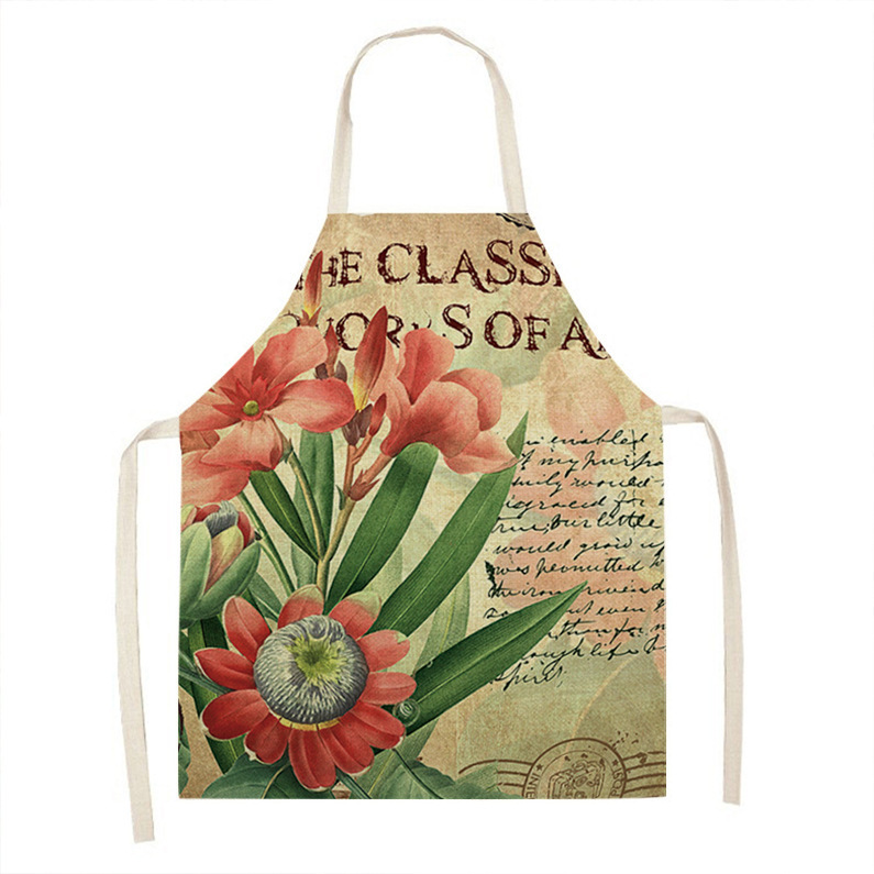 复古美式蝴蝶花束亚麻围裙跨境创意新款布艺围裙Love亲子围裙批发