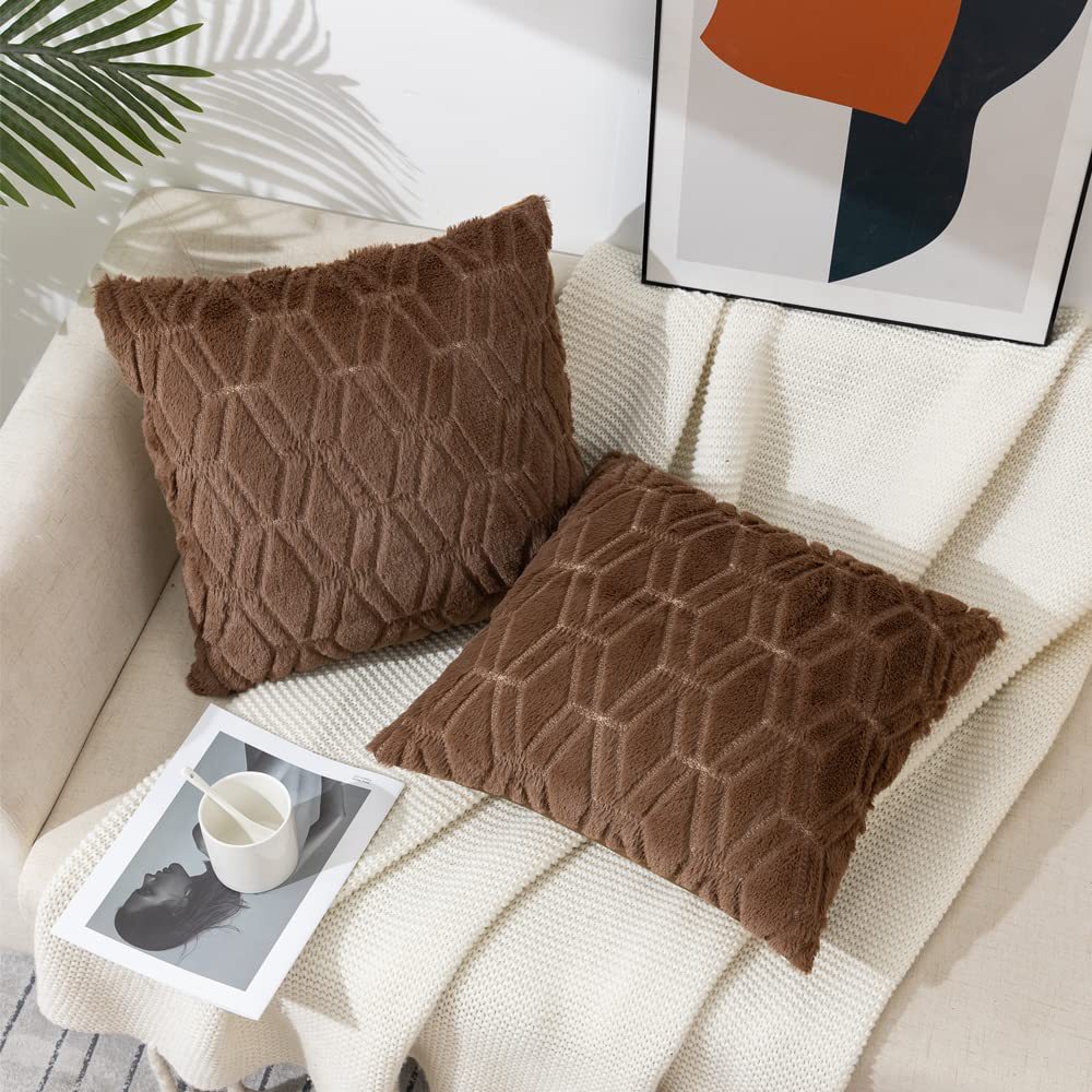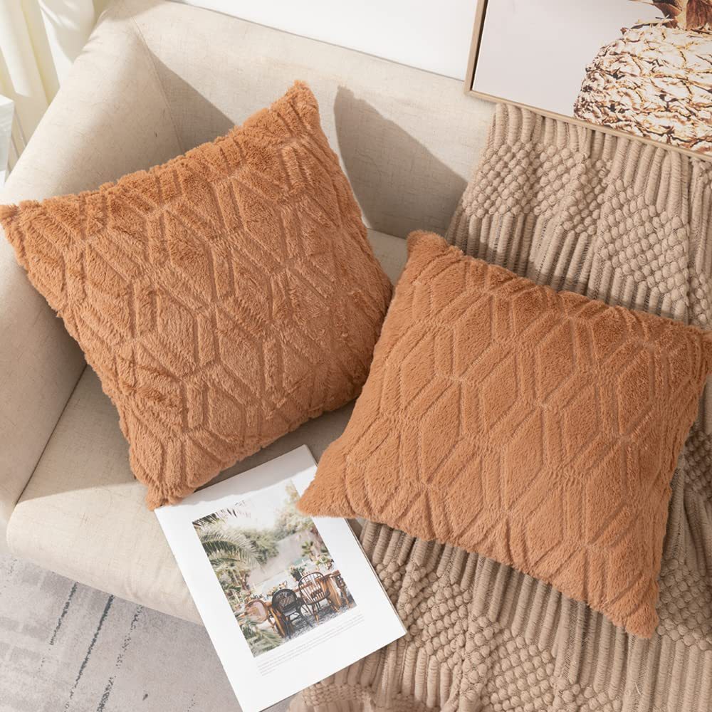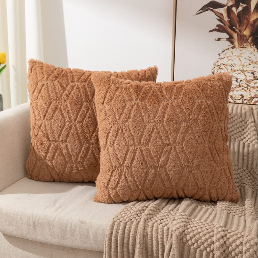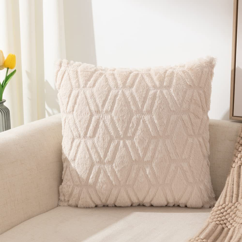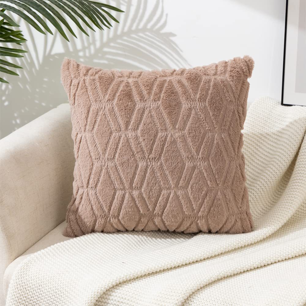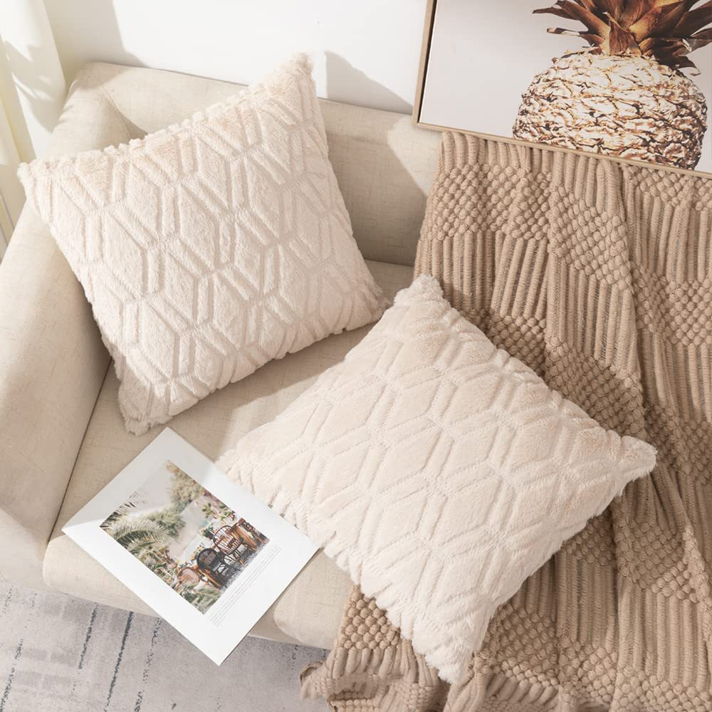 2025年新款北欧纯色绗缝毛绒抱枕套沙发办公室汽车靠垫跨境亚马逊