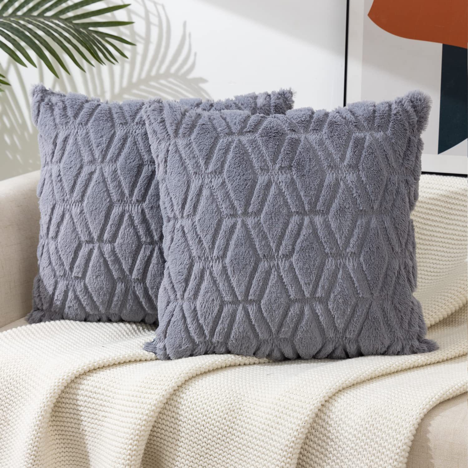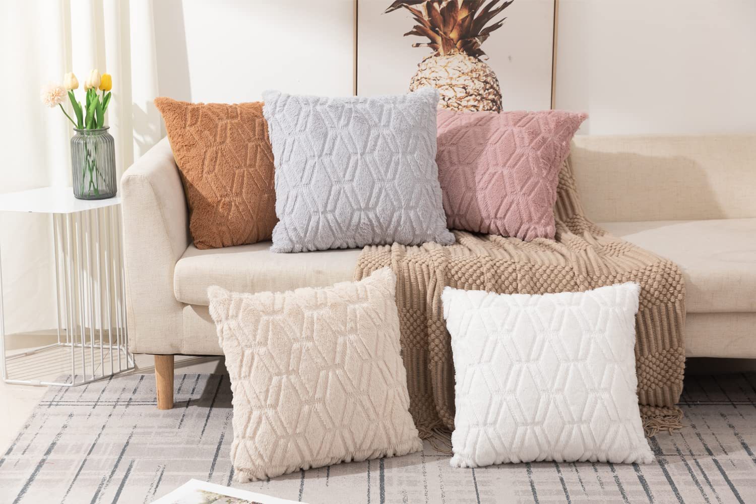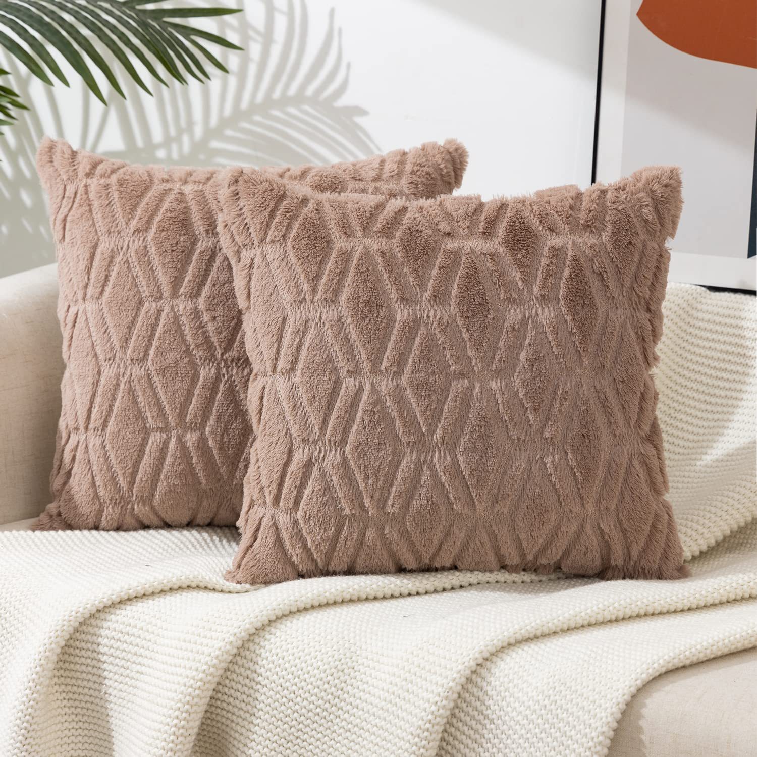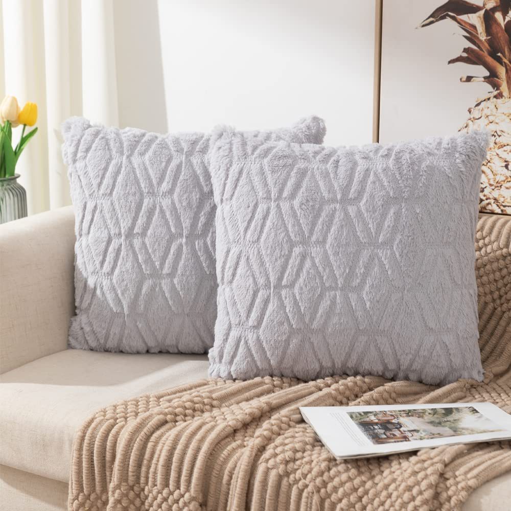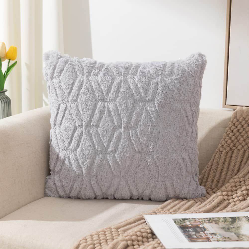 2025年新款北欧纯色绗缝毛绒抱枕套沙发办公室汽车靠垫跨境亚马逊