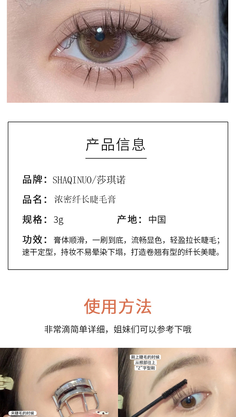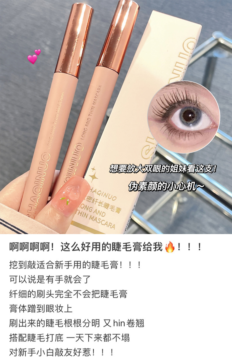 莎琪诺纤长睫毛膏 自然卷翘浓密不易晕染持久彩妆化妆品眼睫毛膏