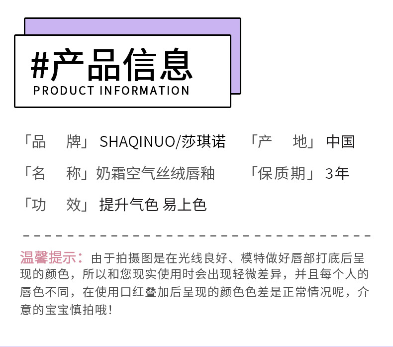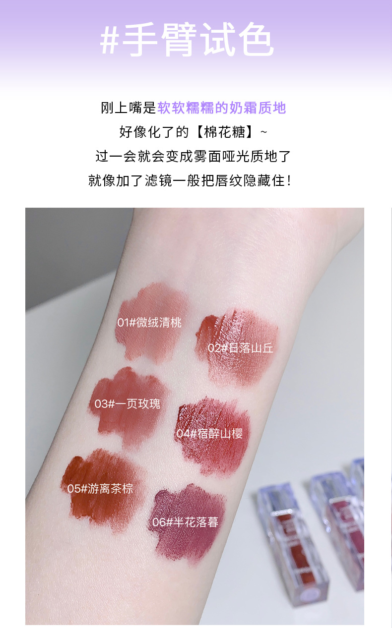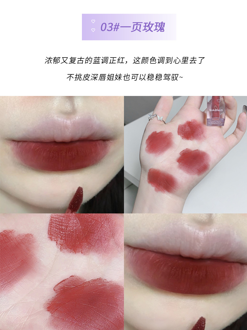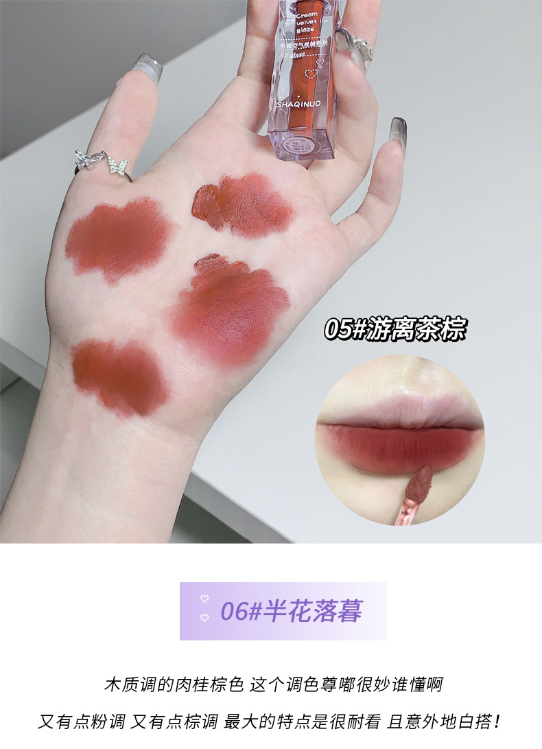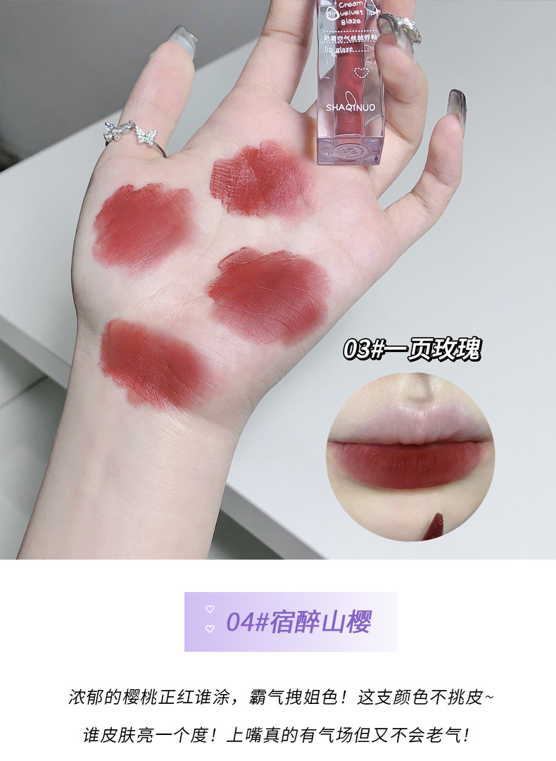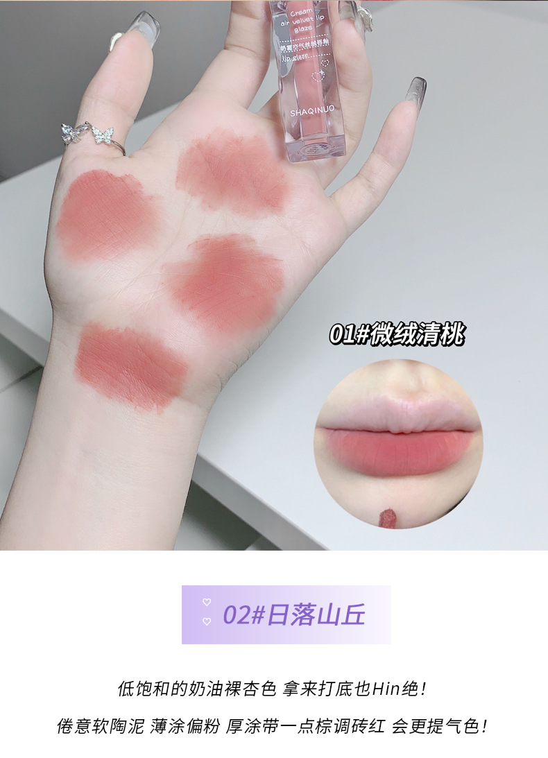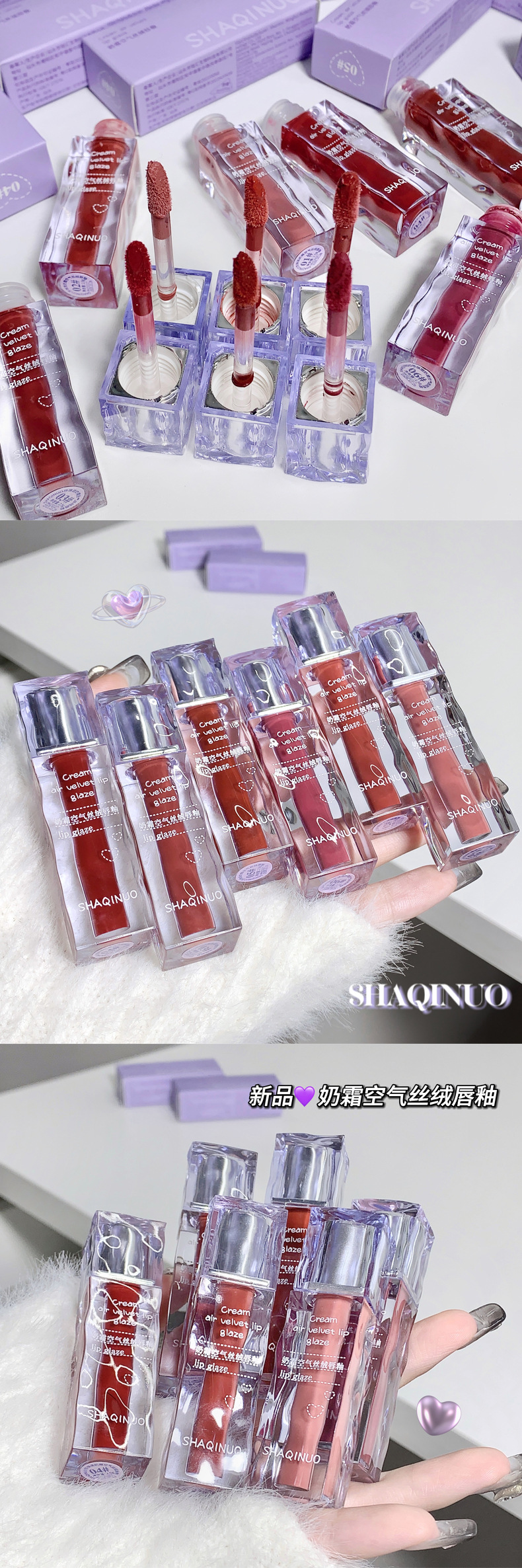 莎琪诺奶霜空气丝绒唇釉 哑光唇泥雾面显白显气色口红唇彩