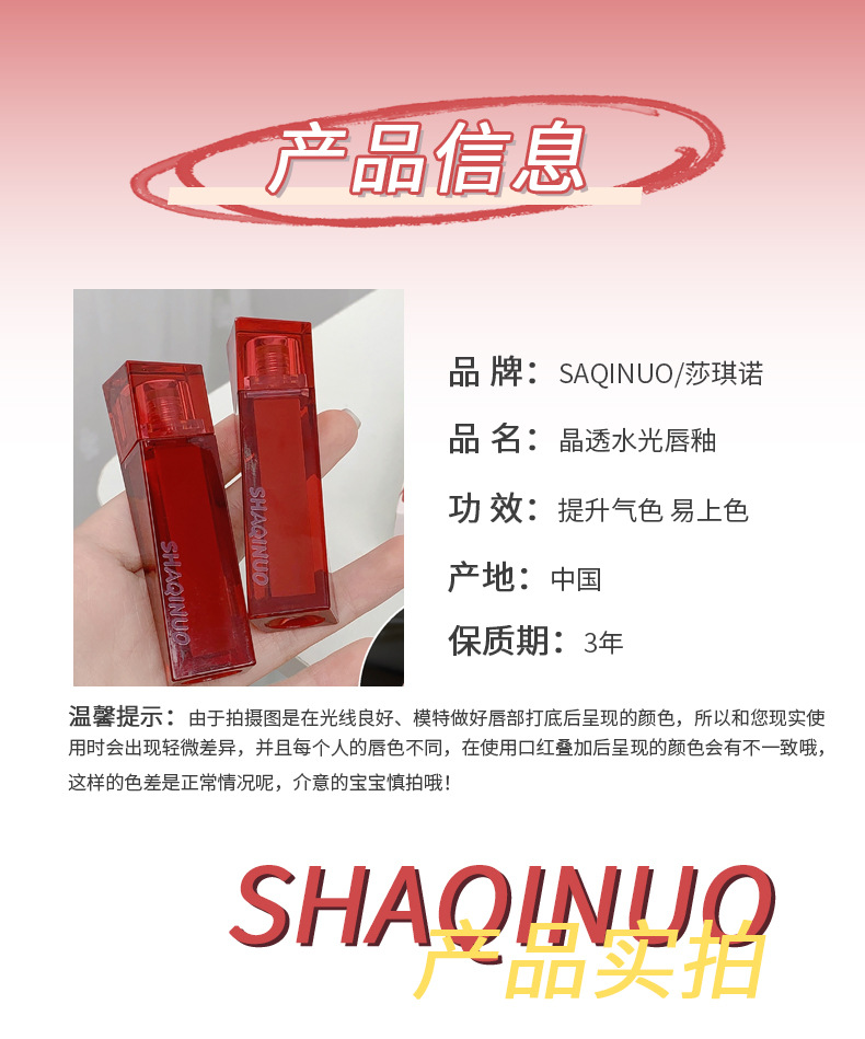 莎琪诺琉彩水光镜面唇釉 显色伪素颜显白透明嘟嘟唇玻璃唇彩