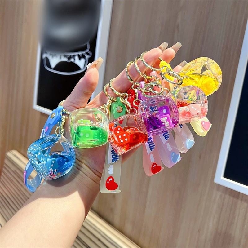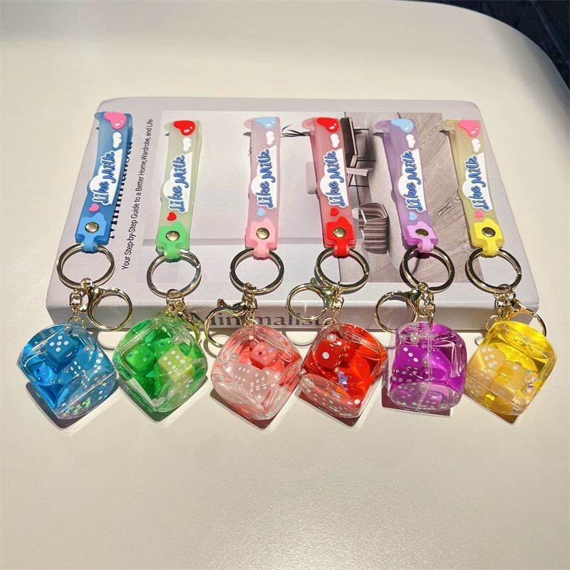 亚克力入油筛子麻将流沙瓶钥匙扣多面数字小筛子漂浮液体流沙瓶
