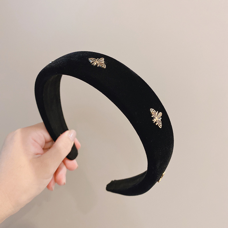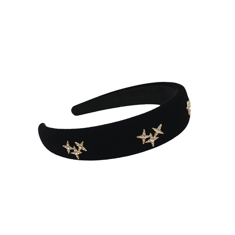 复古黑丝绒水钻星星海绵发箍高颅顶时髦设计感头箍ins高颜值发箍