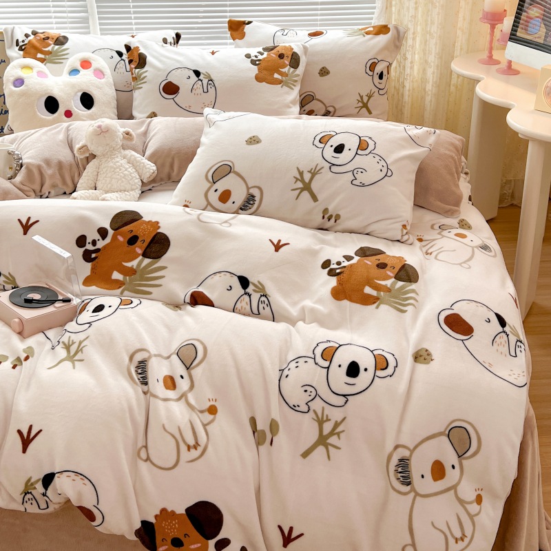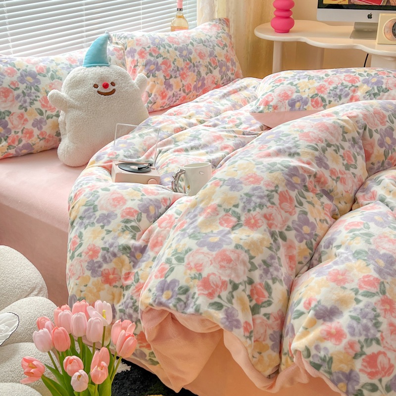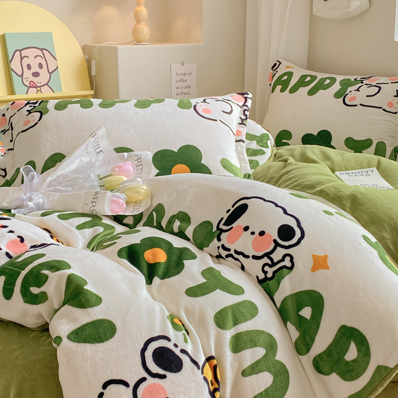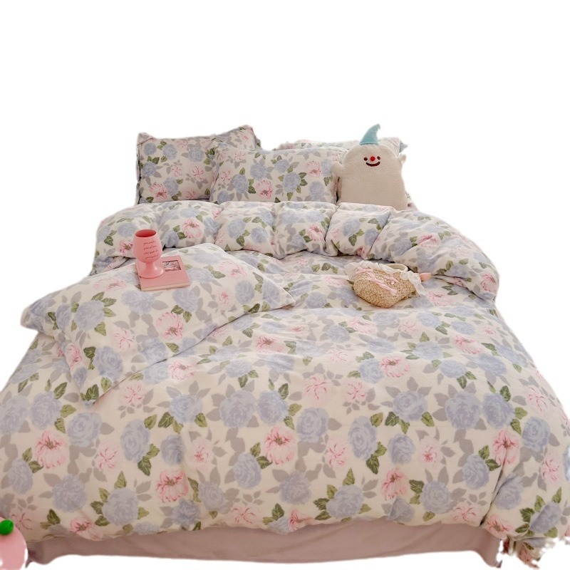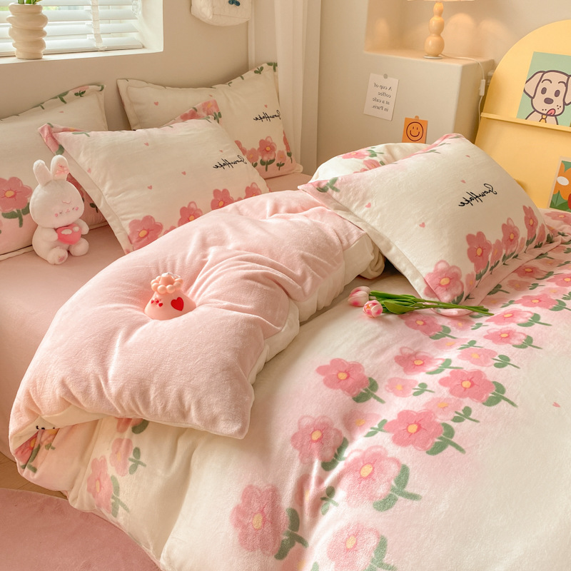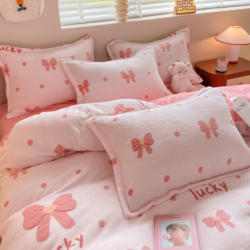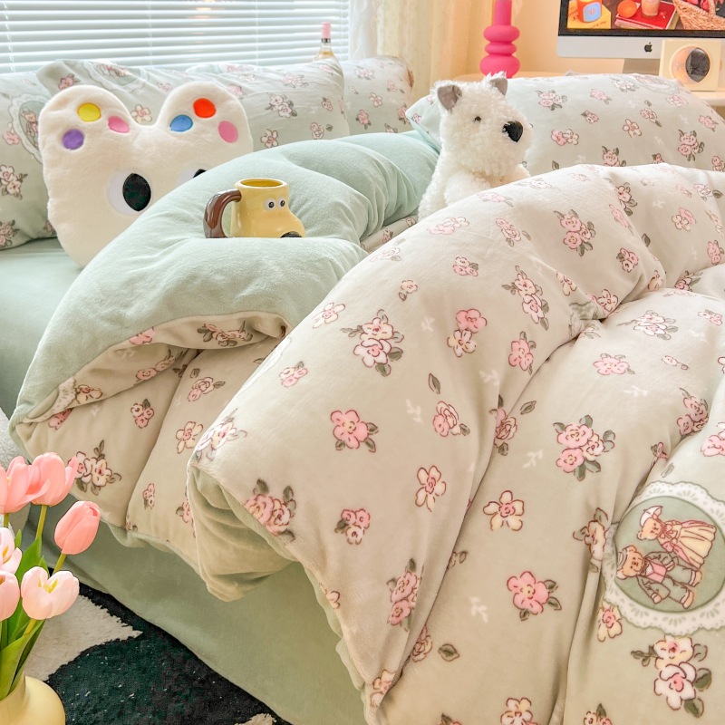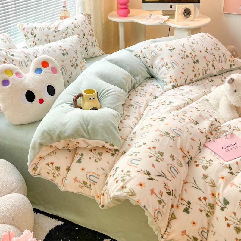 小清新牛奶绒四件套法兰绒宿舍三件套加厚款水晶绒珊瑚绒床上用品