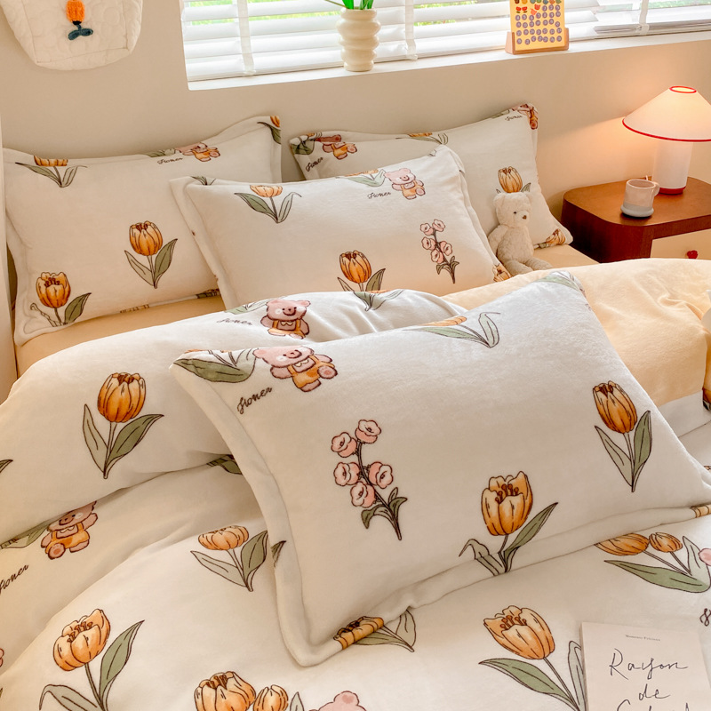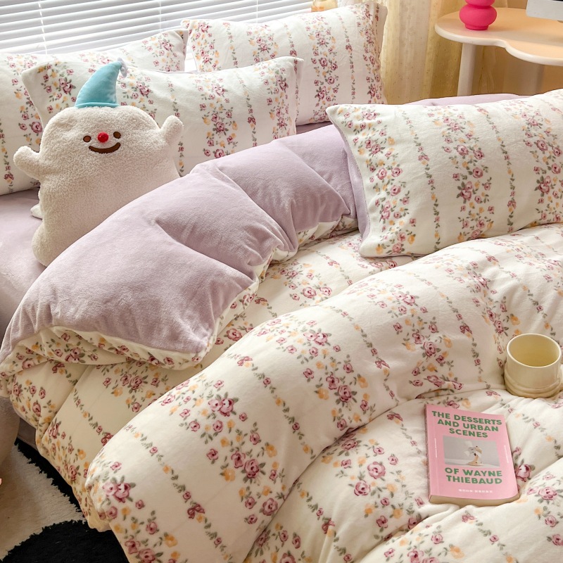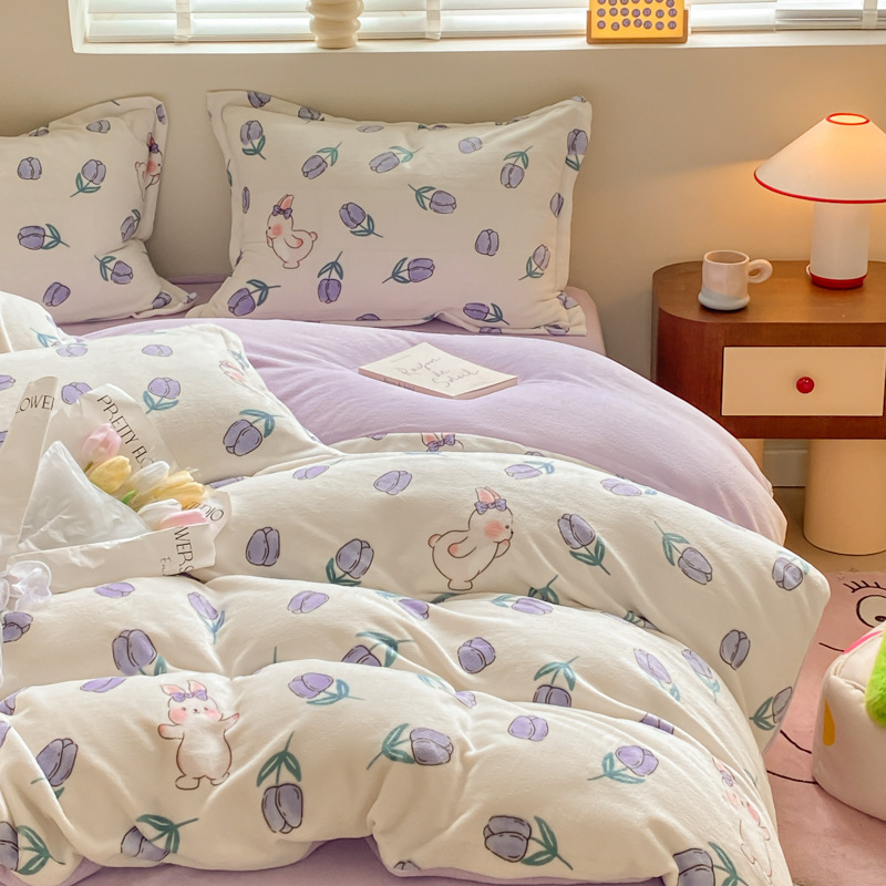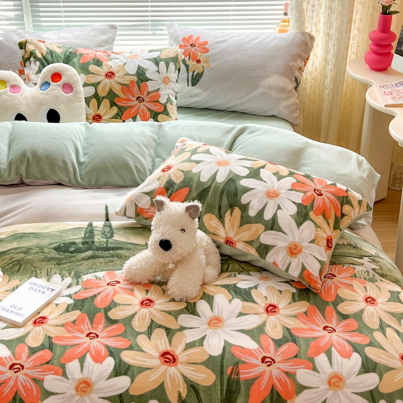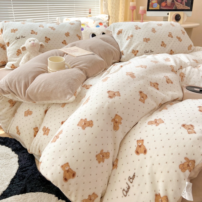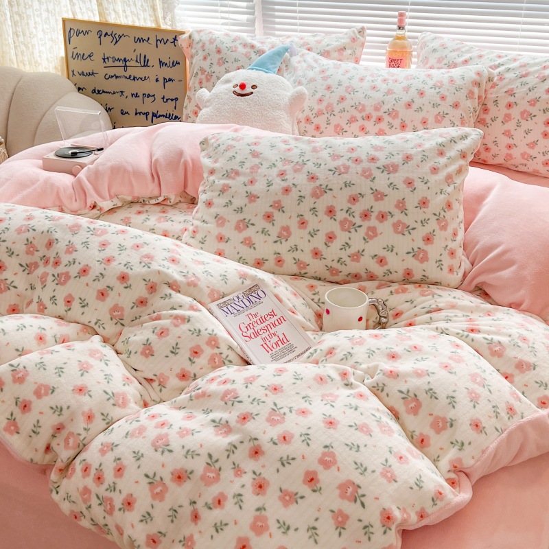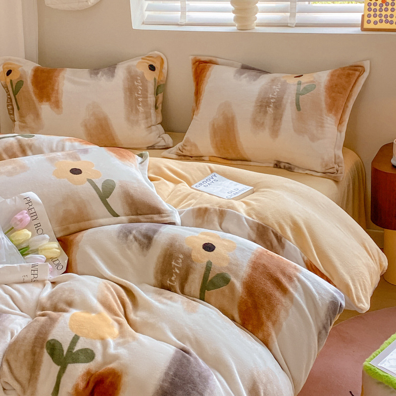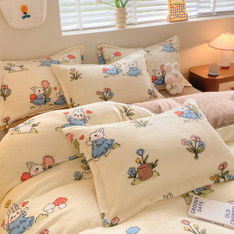 小清新牛奶绒四件套法兰绒宿舍三件套加厚款水晶绒珊瑚绒床上用品