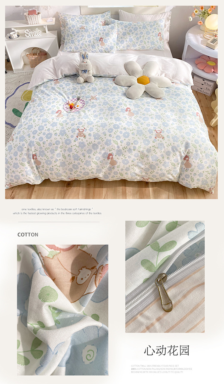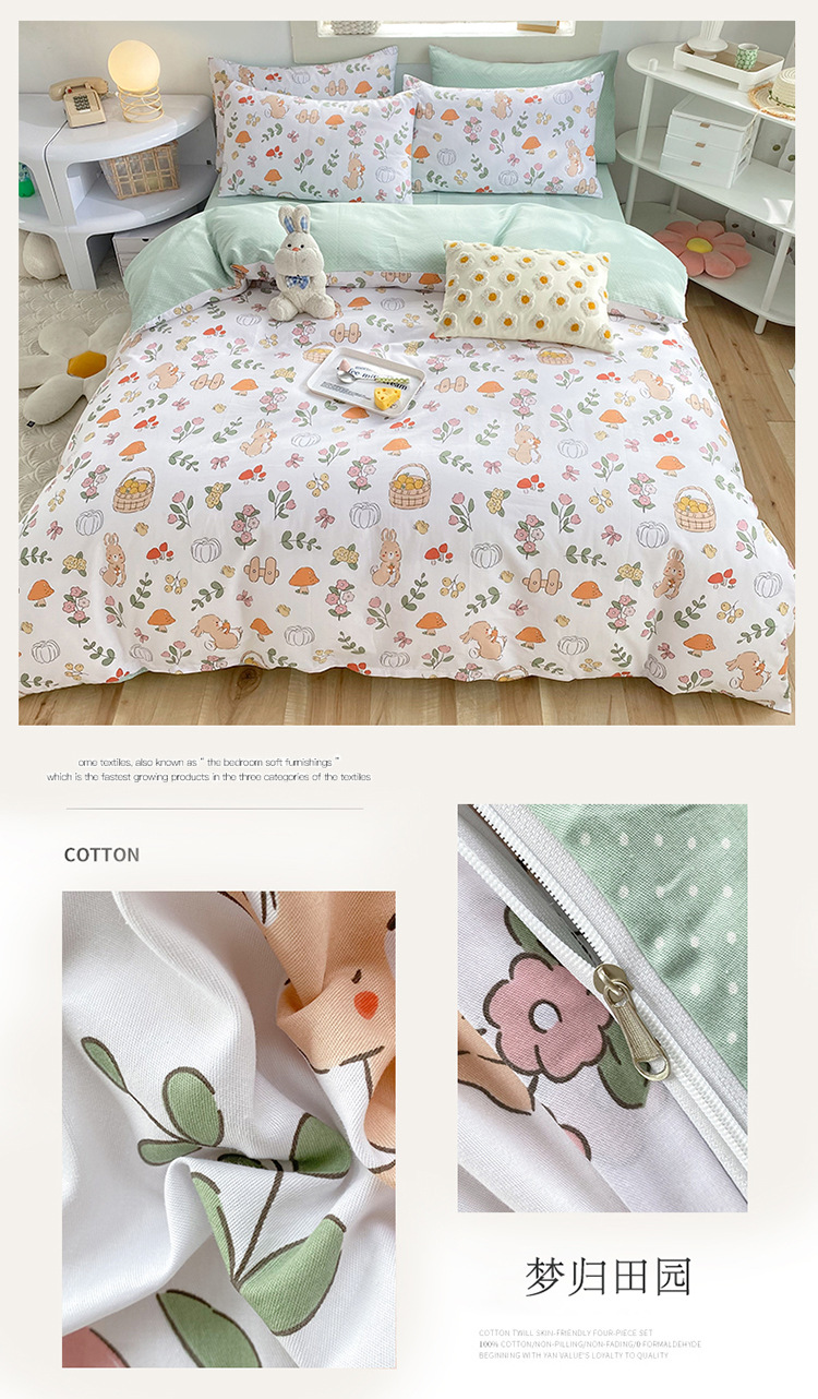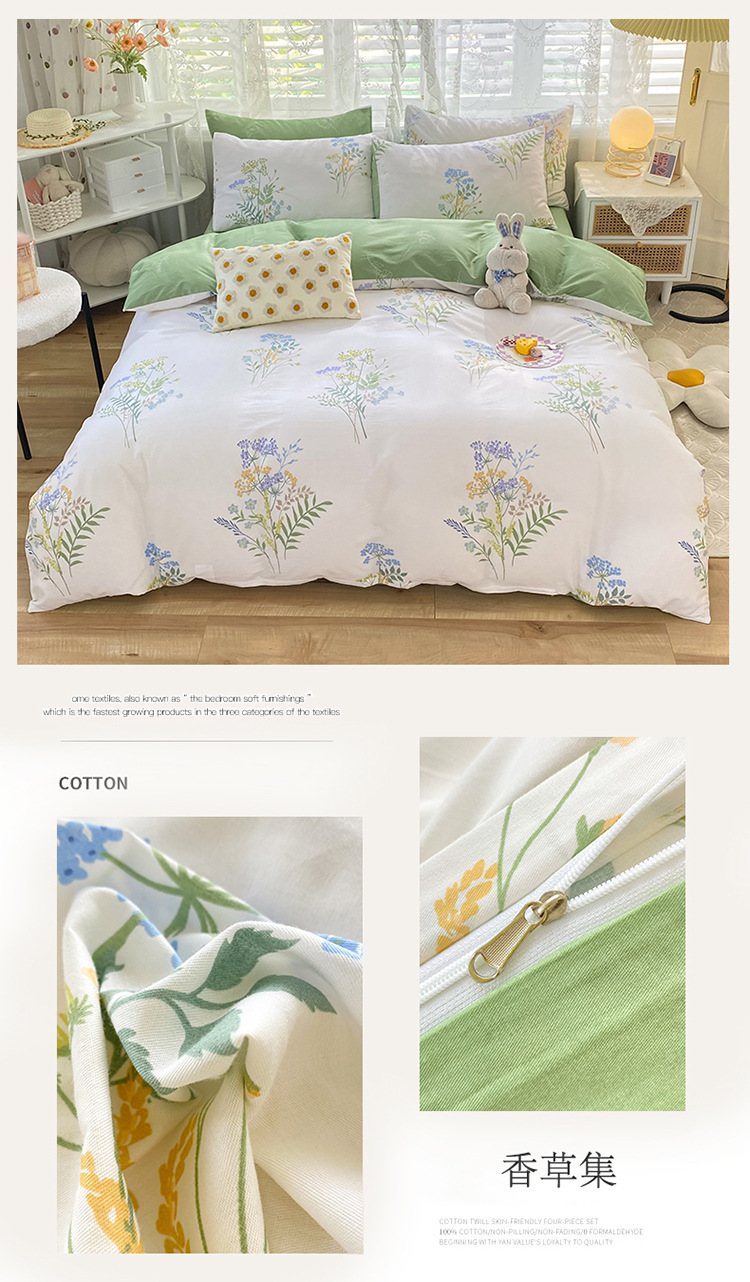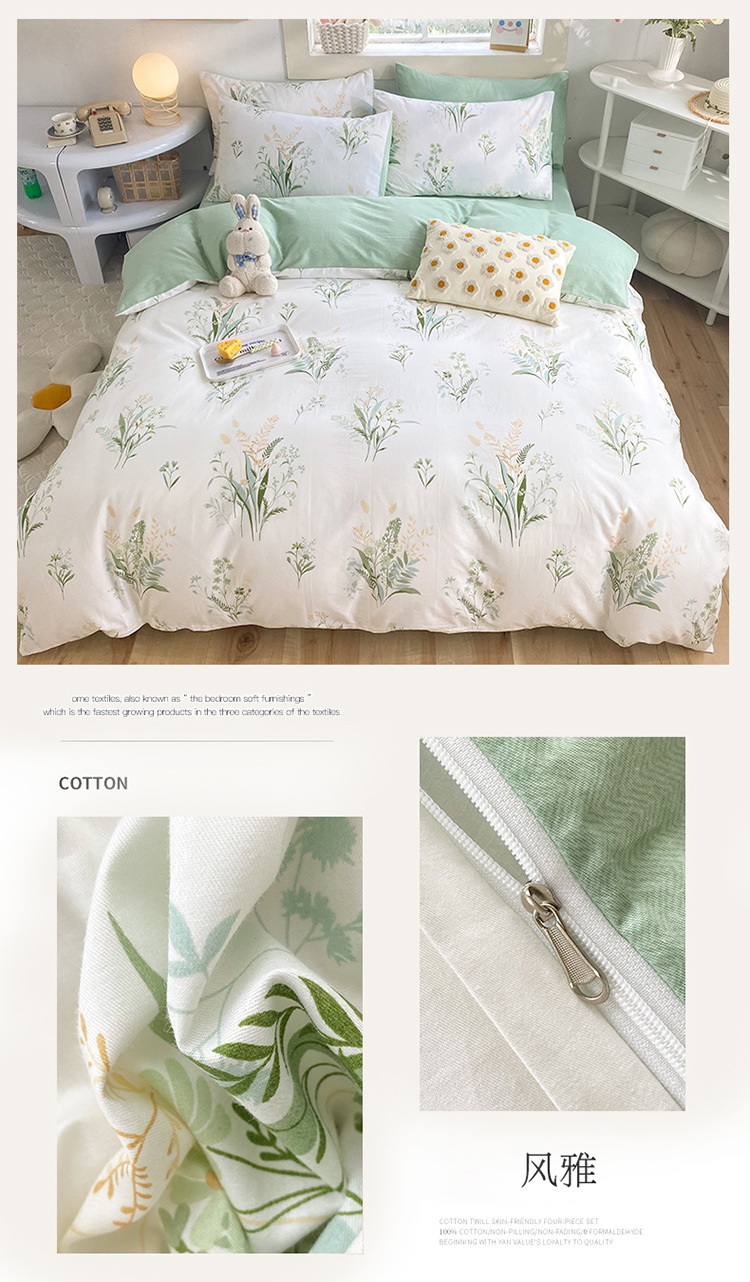 厂家直销纯棉四件套全棉三件套小碎花田园风被套单件学生宿舍被单